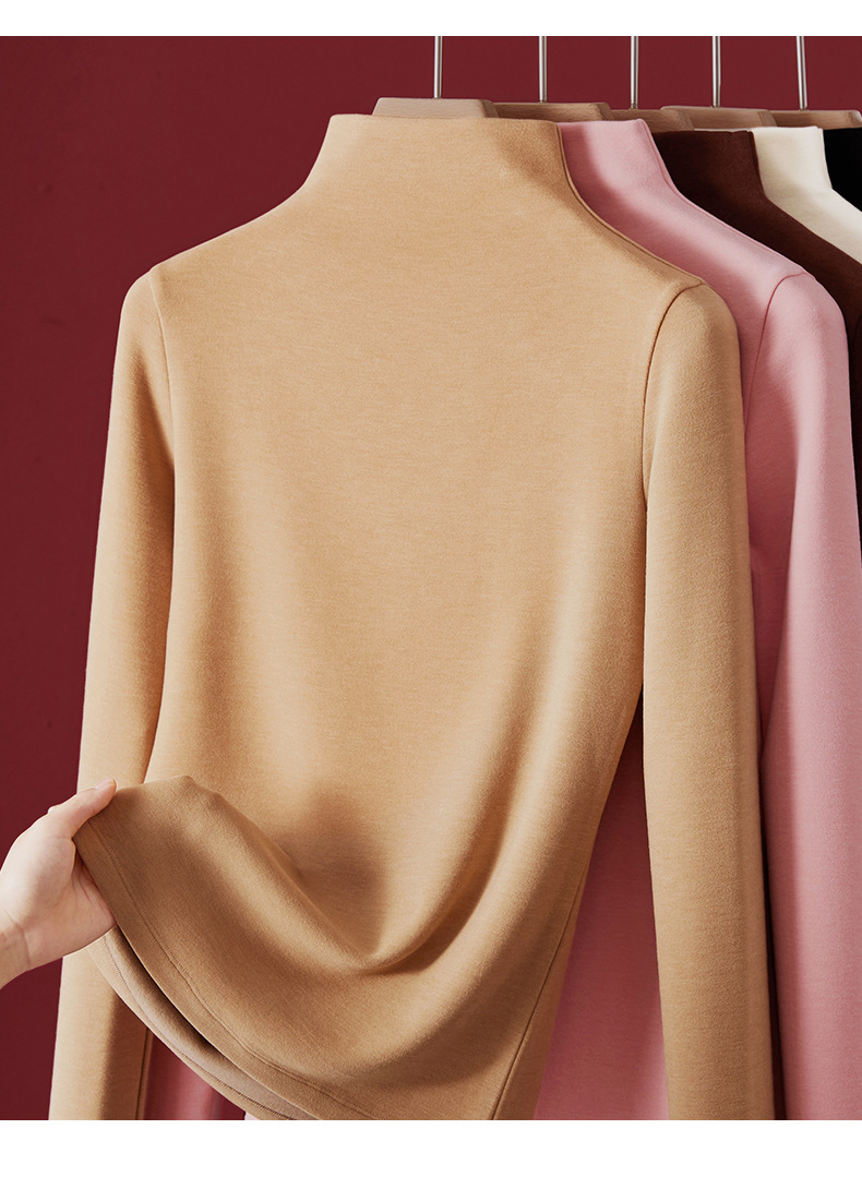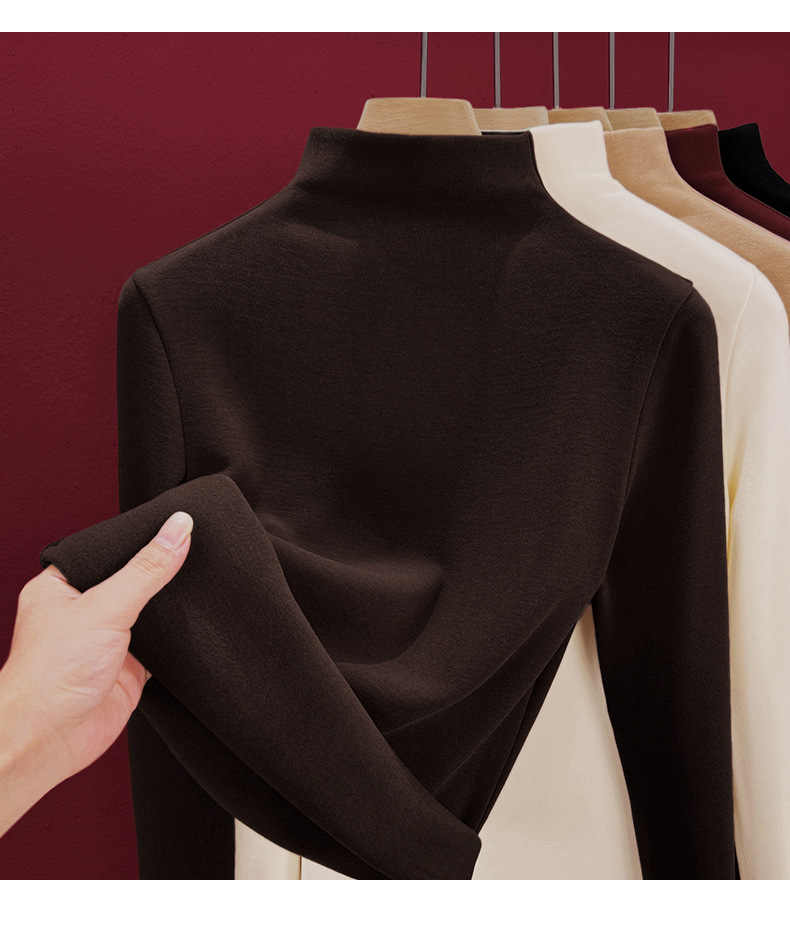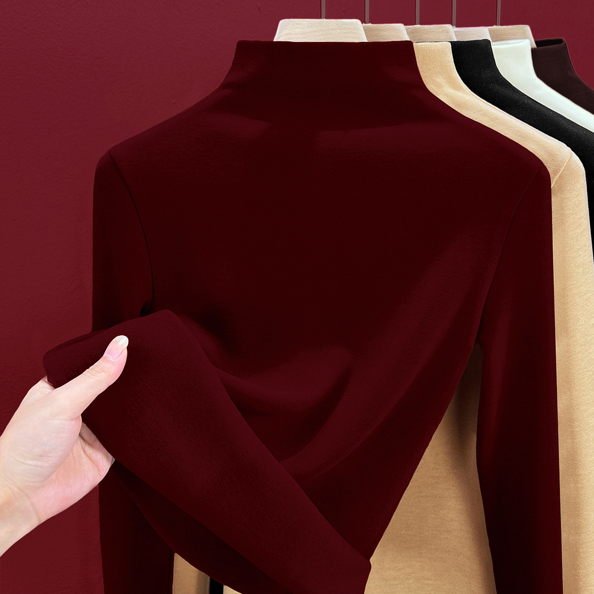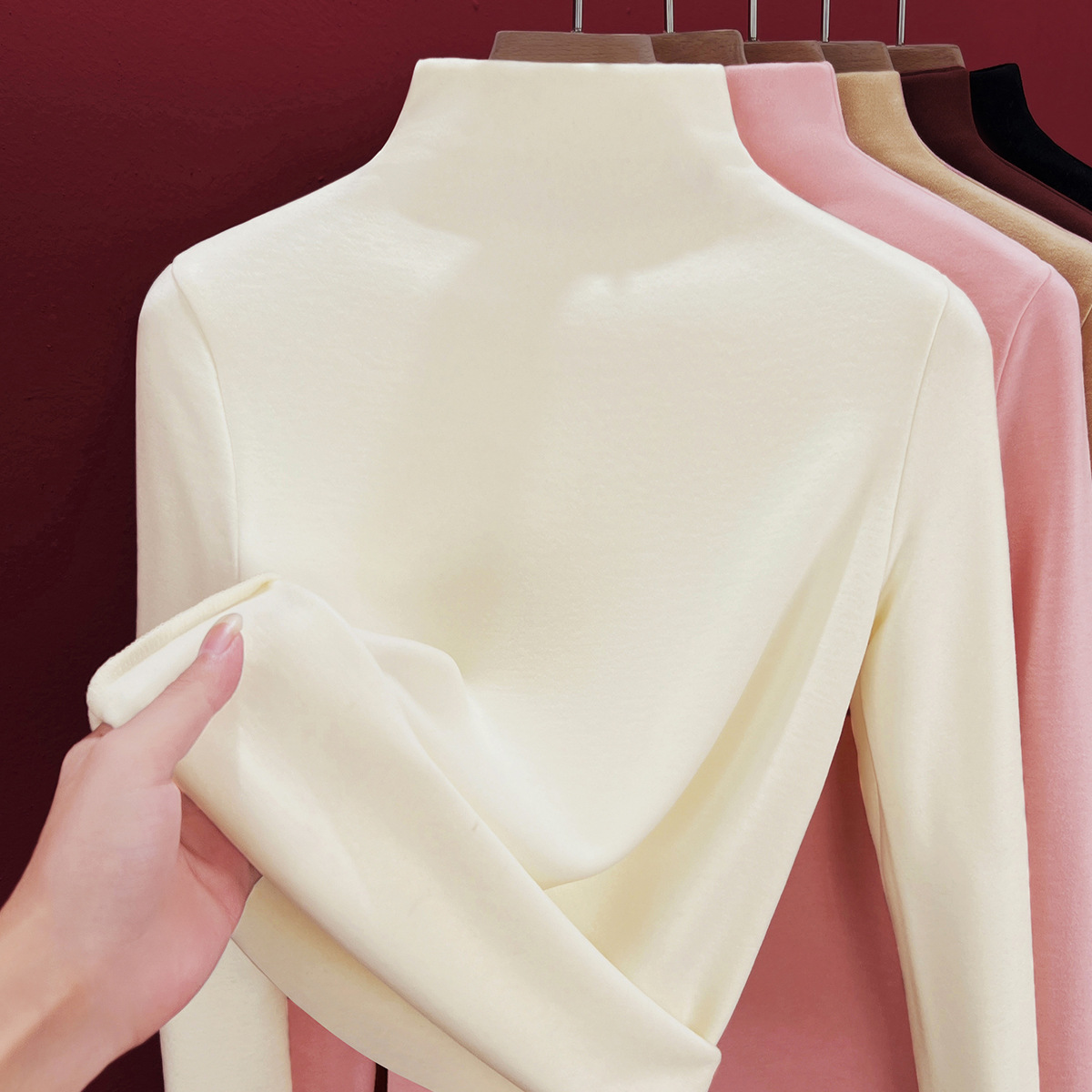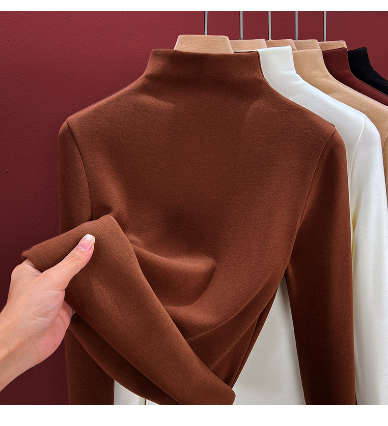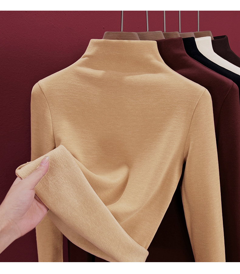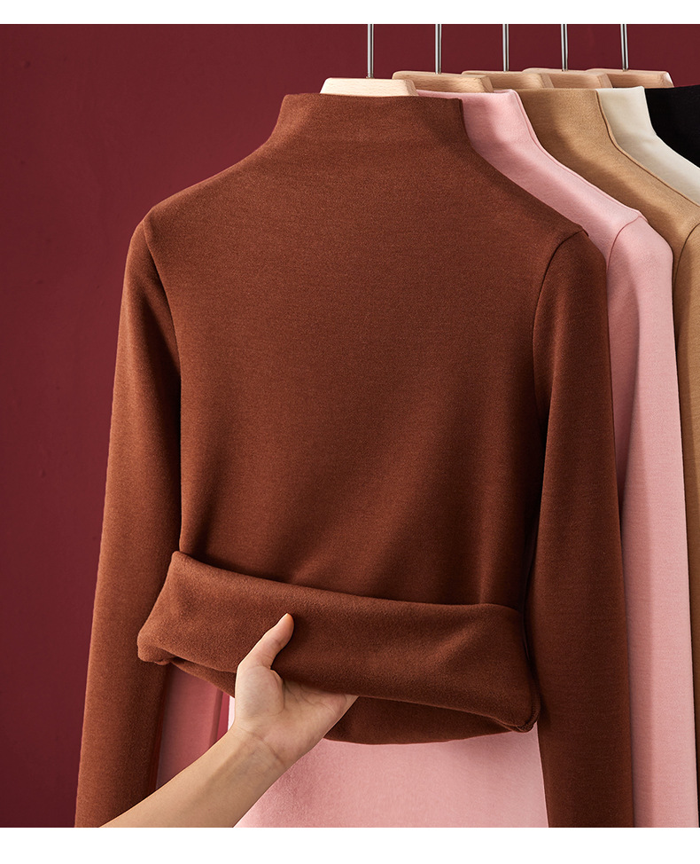 Шёлковая теплая флисовая термоодежда для женщин, внутренний слой — топ с дополнительным флисом и утолщенным воротником-стойкой, осенняя шерстяная базовая рубашка для зимы.