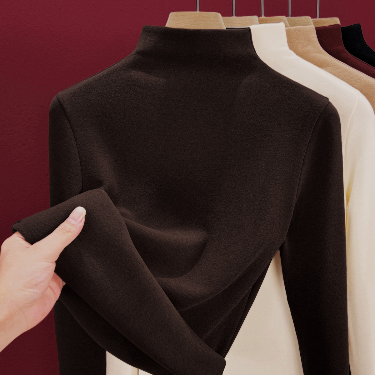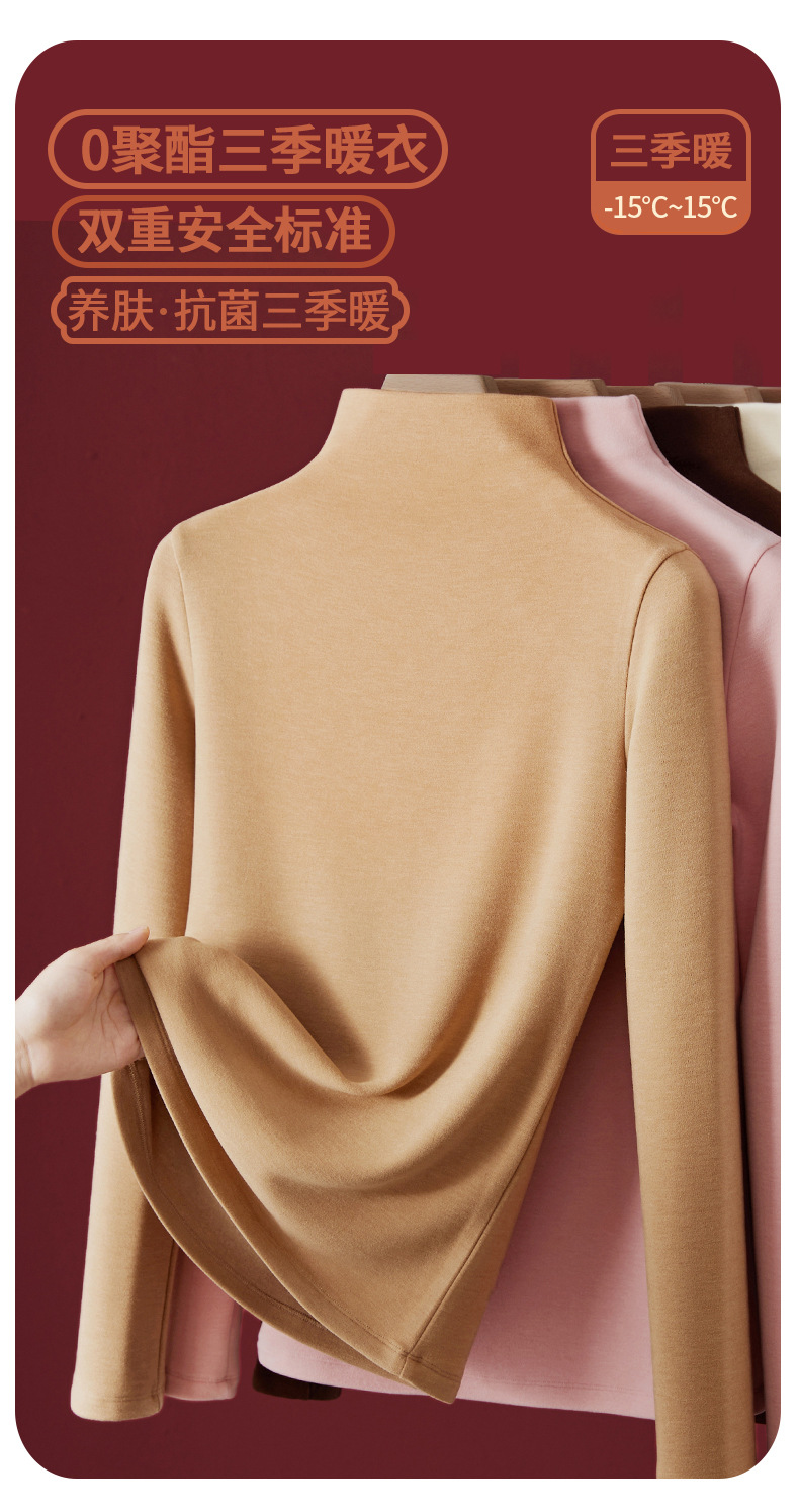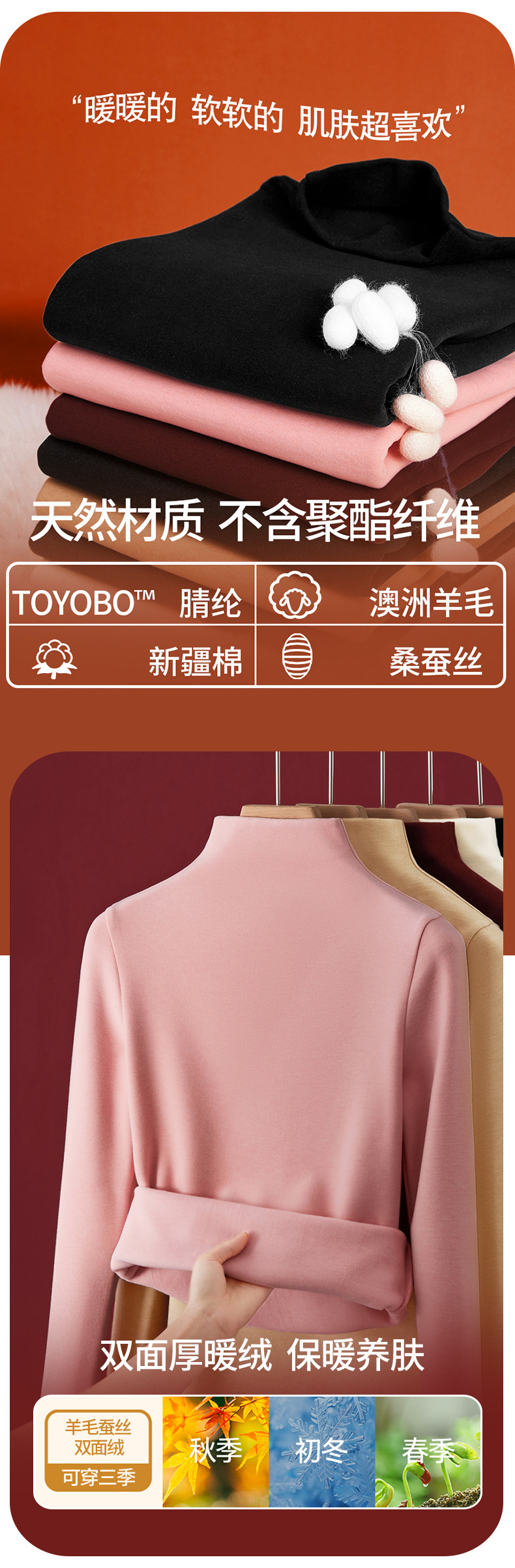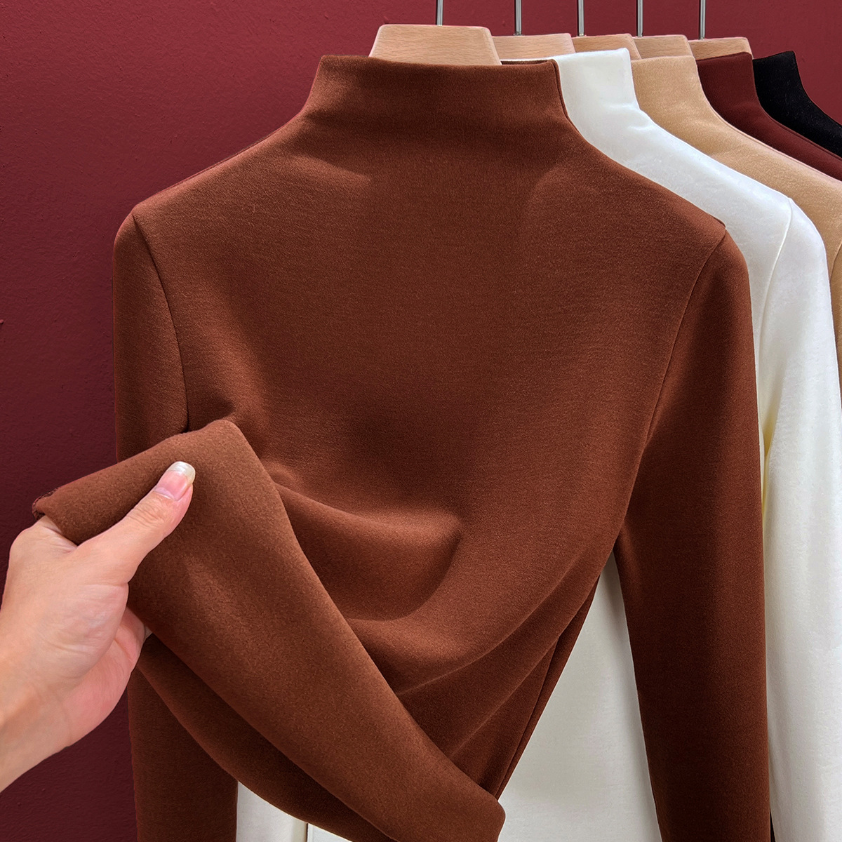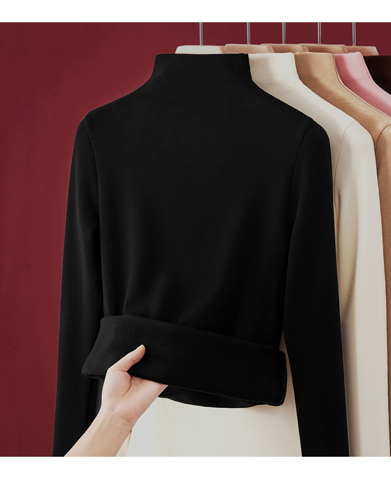 Шёлковая теплая флисовая термоодежда для женщин, внутренний слой — топ с дополнительным флисом и утолщенным воротником-стойкой, осенняя шерстяная базовая рубашка для зимы.