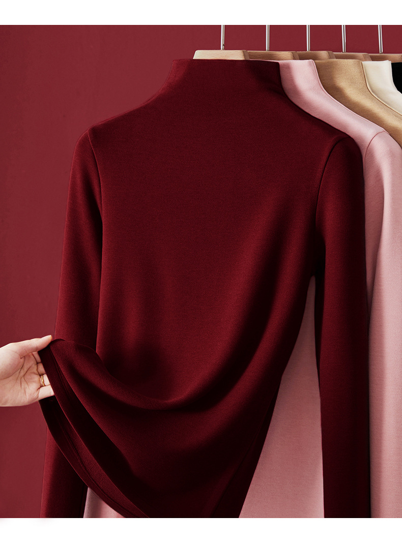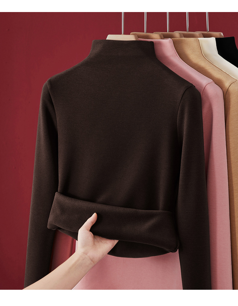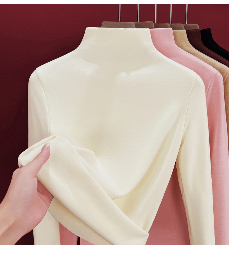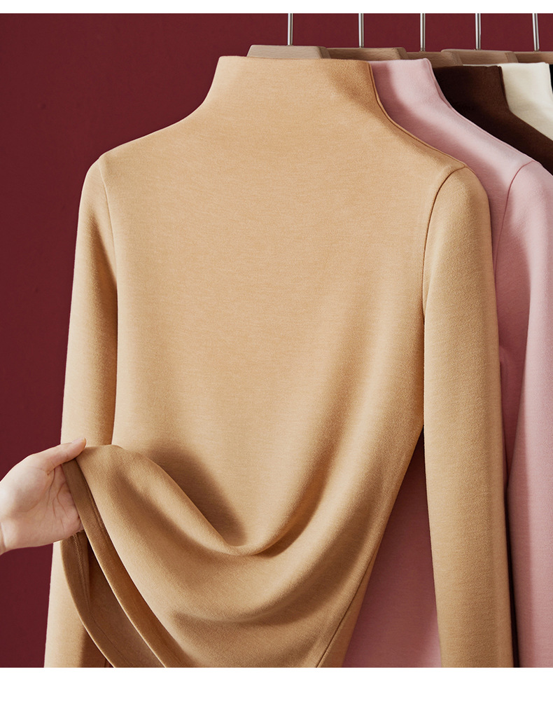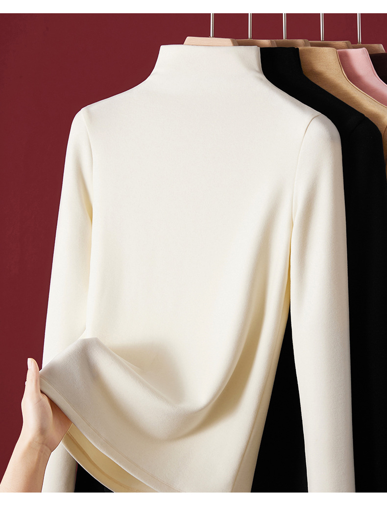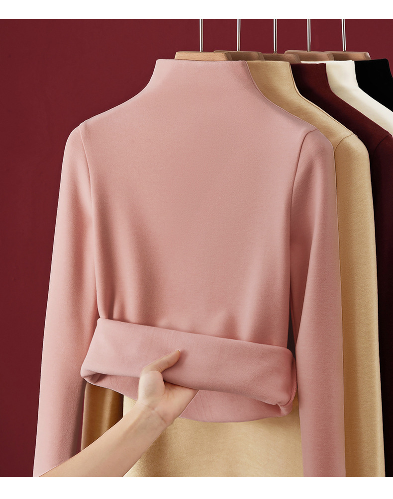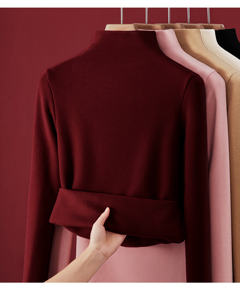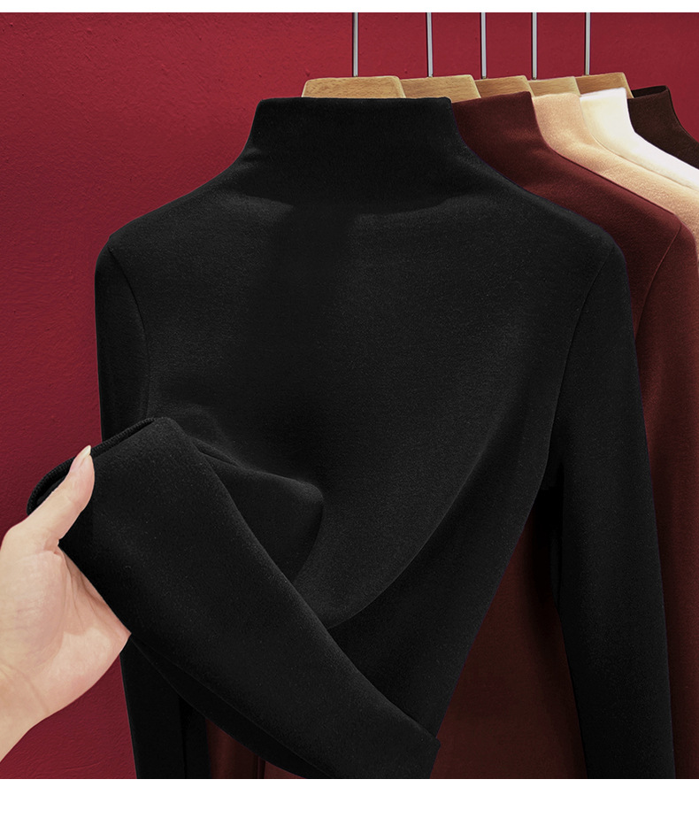 Шёлковая теплая флисовая термоодежда для женщин, внутренний слой — топ с дополнительным флисом и утолщенным воротником-стойкой, осенняя шерстяная базовая рубашка для зимы.