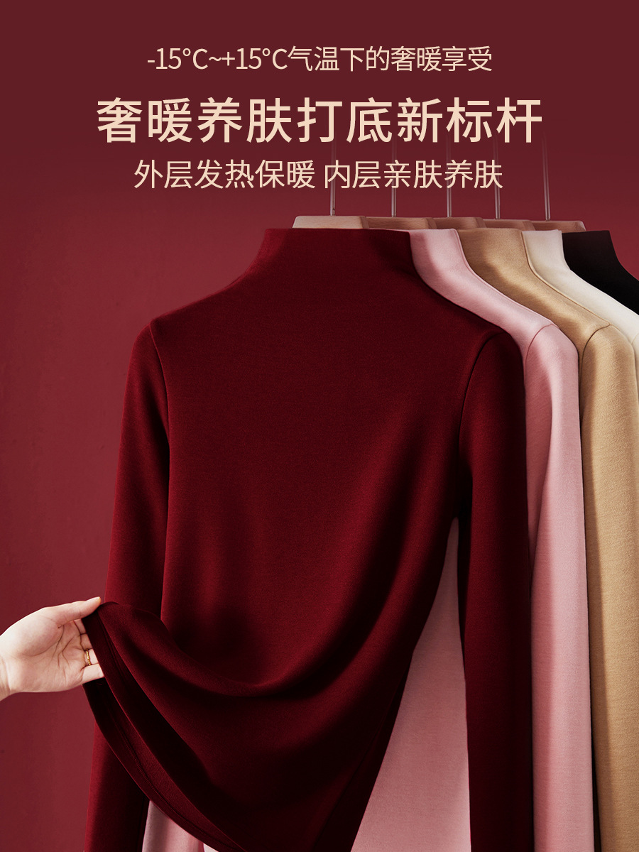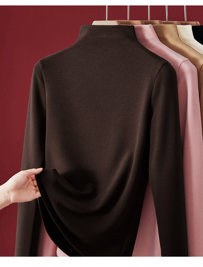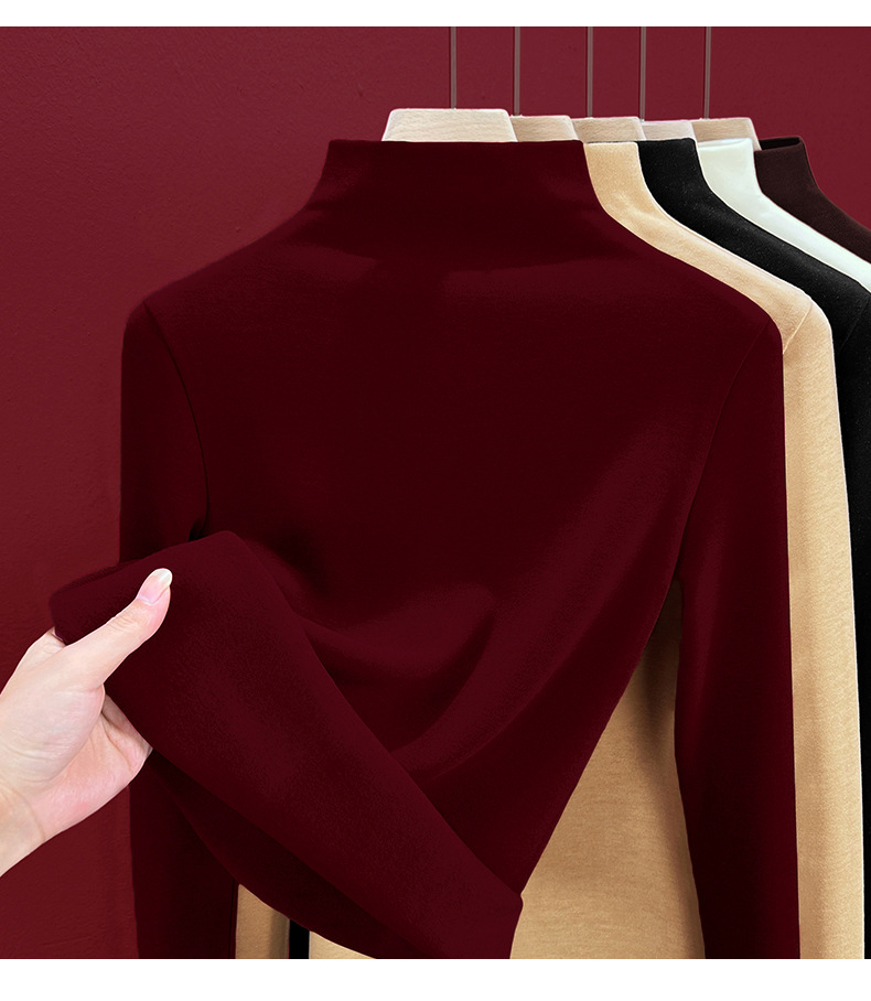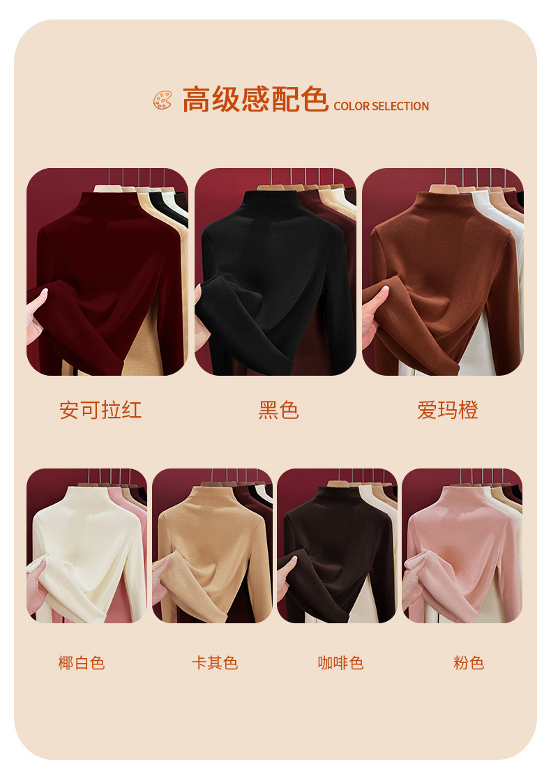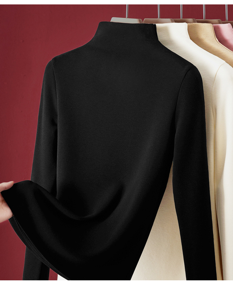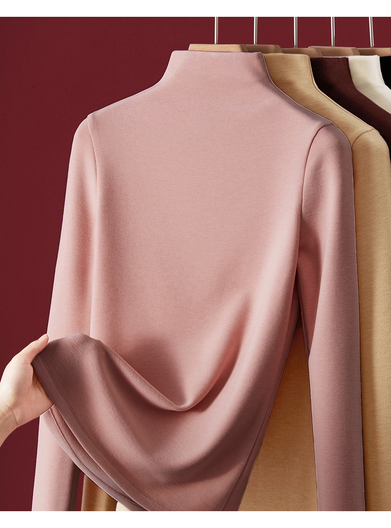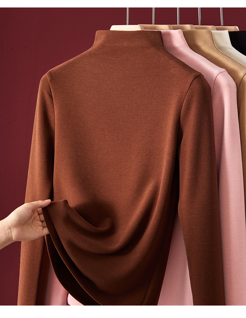 Шёлковая теплая флисовая термоодежда для женщин, внутренний слой — топ с дополнительным флисом и утолщенным воротником-стойкой, осенняя шерстяная базовая рубашка для зимы.