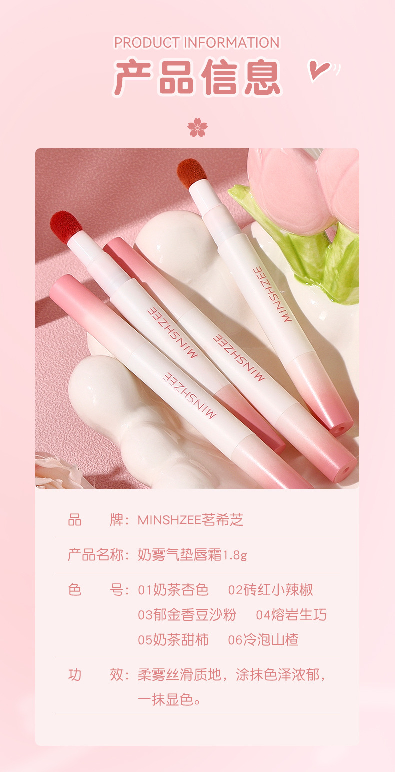 MINSHZEE Xizhi Воздушная глазурь для губ матовый крем для губ крем для губ женский цвет белый осенью и зимой