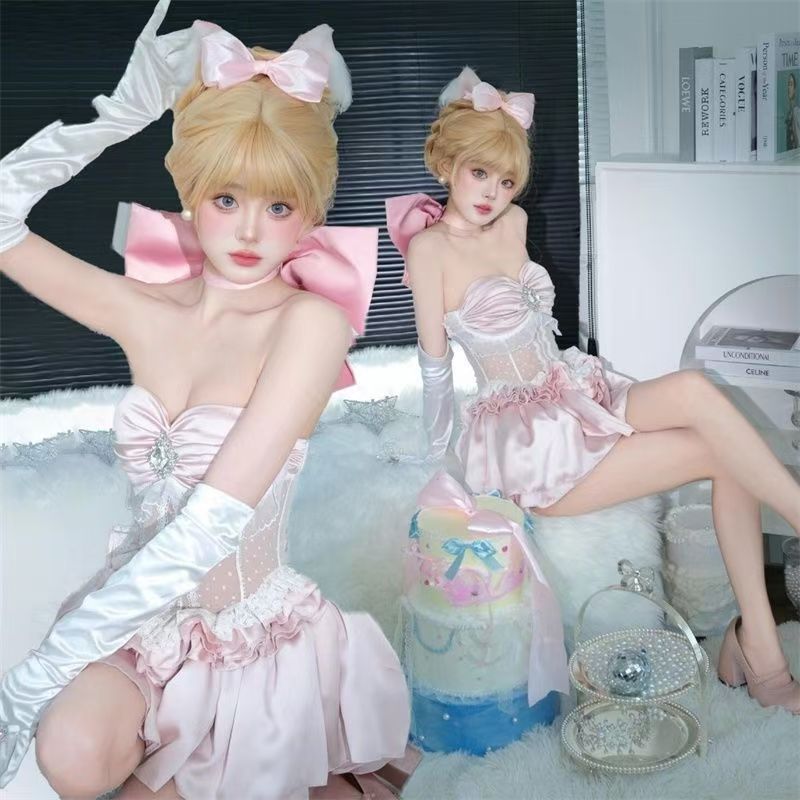 Том кошка перчатки белый атлас двойной лук короткий свадебный тур платье день рождения невеста руки рукава фото