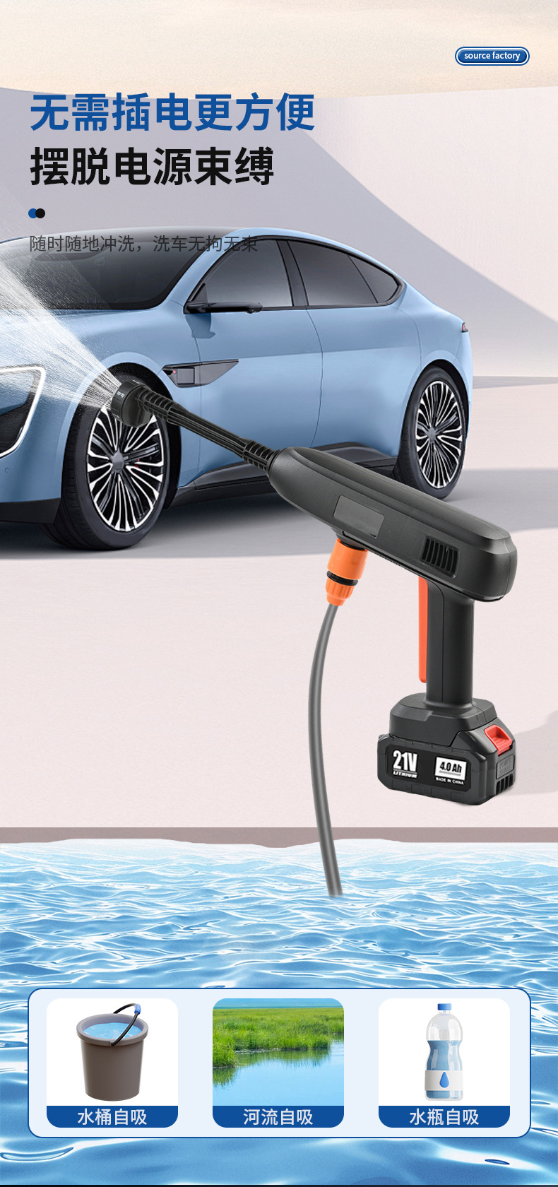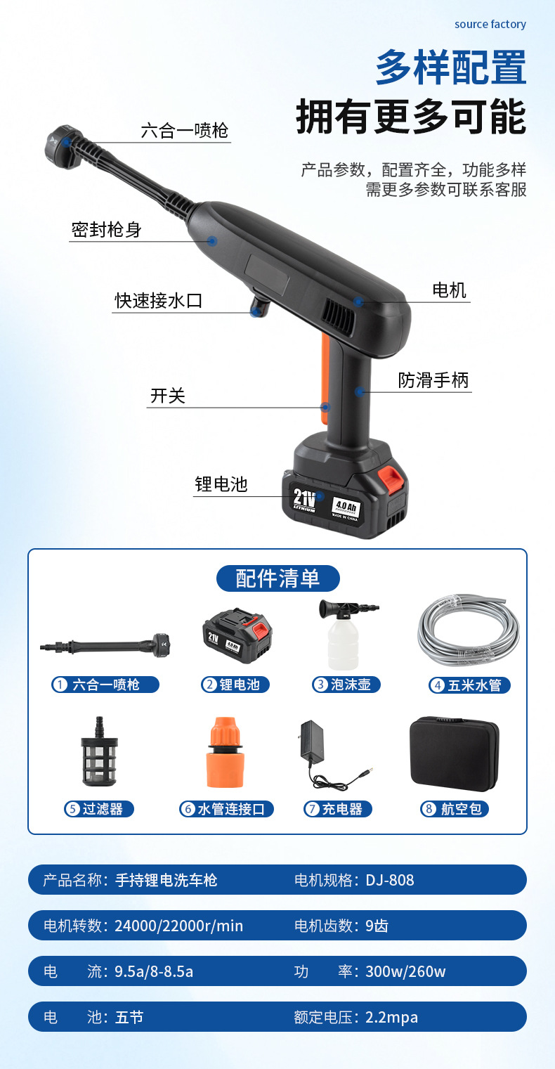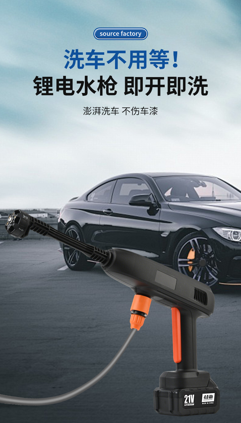 Трансграничная моющая машина для литиевых аккумуляторных автомобилей, беспроводная водяная пушка высокого давления, бытовой электрический инструмент для мойки автомобилей, ручной перезаряжаемый пистолет для мойки автомобилей оптом