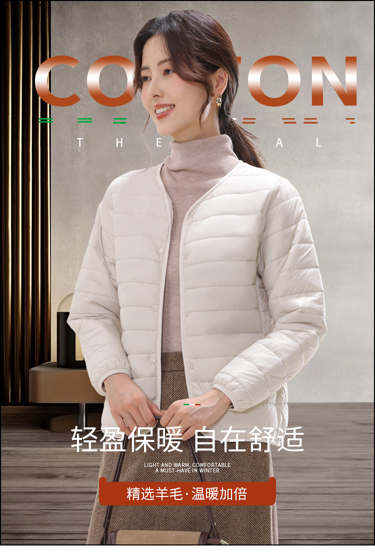 Новое женское осенне-зимнее нижнее белье без воротника с кашемировым пальто, легкое пуховое хлопковое пальто, женский короткий стиль 62116.