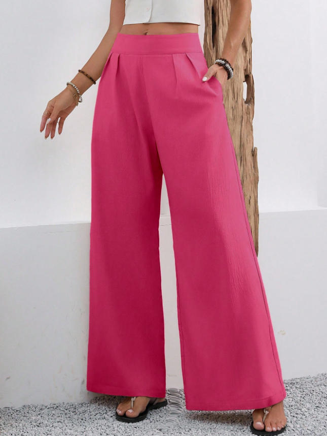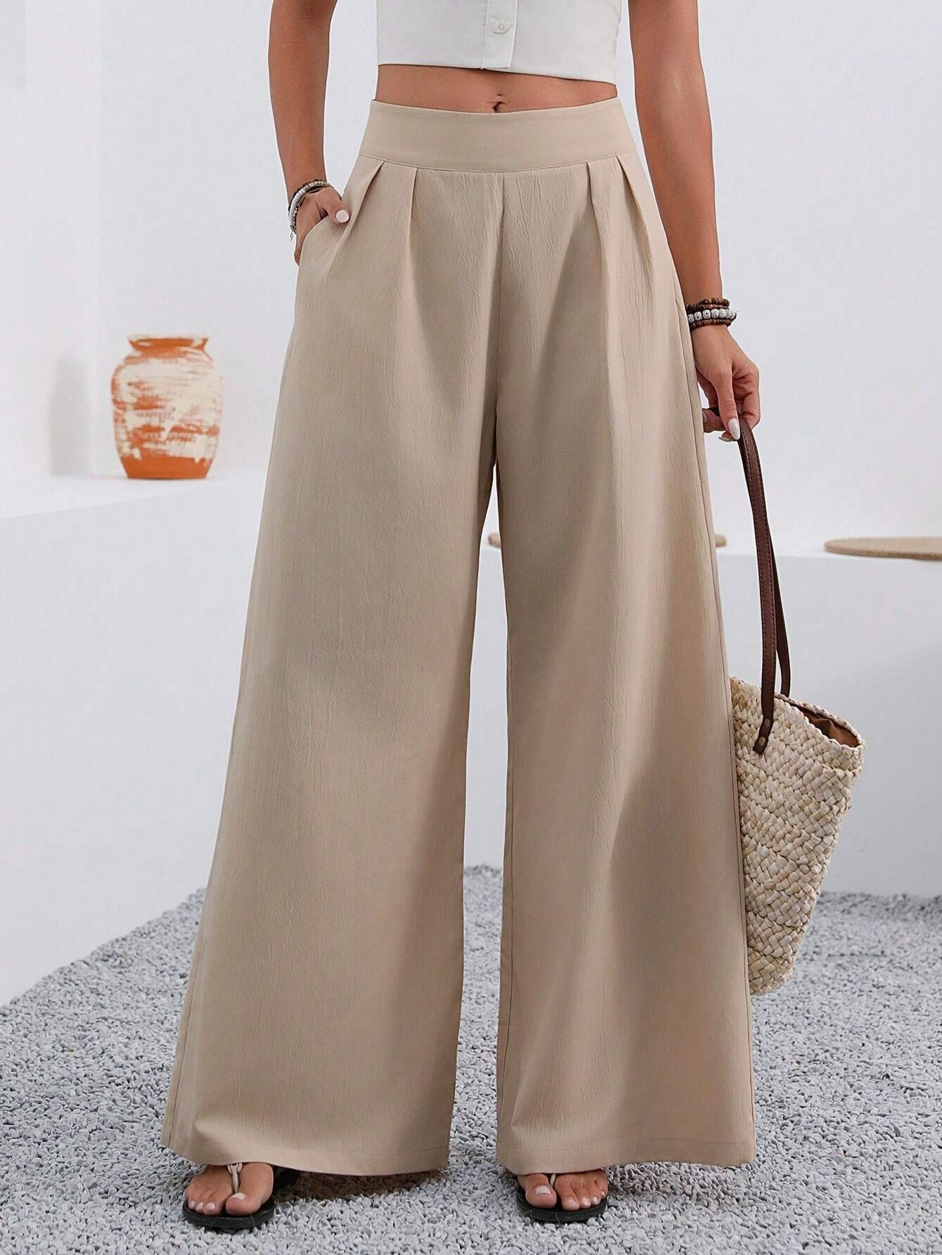 2025 Европейские и американские трансграничные осенние женские модные универсальные широкие брюки с карманами и высокой талией для поездок на работу.