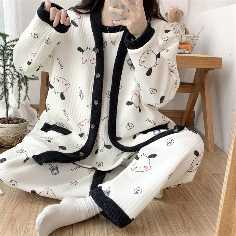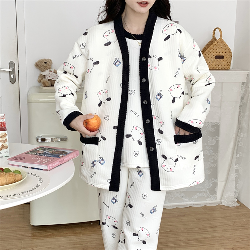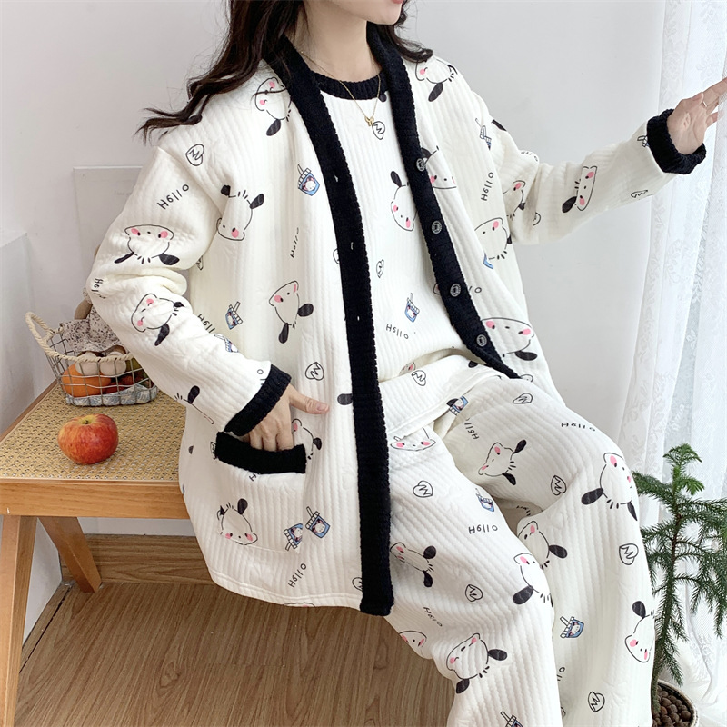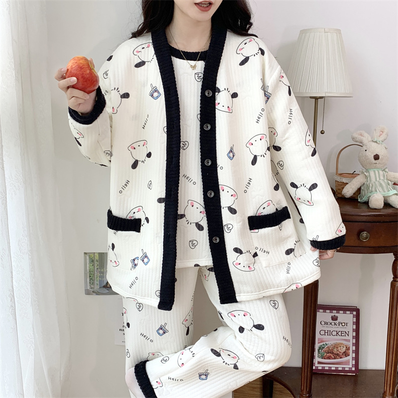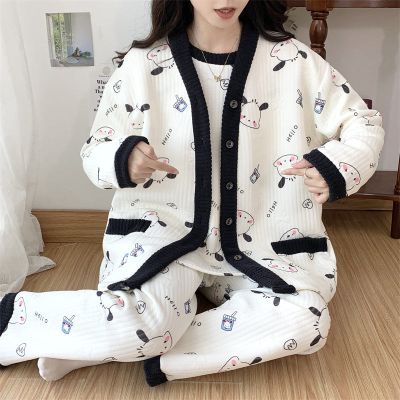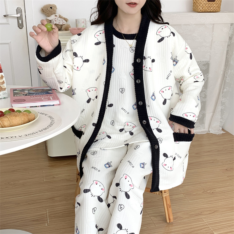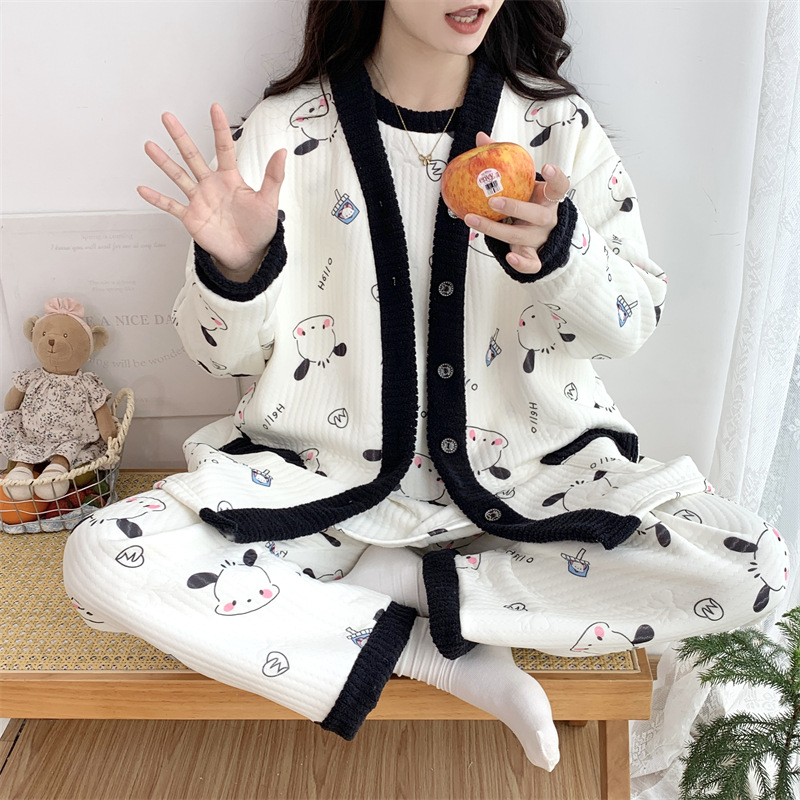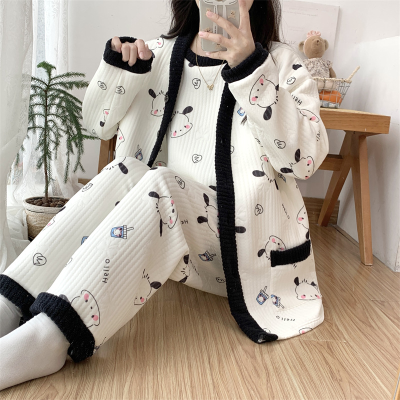 Пижамы для беременных, утолщенная одежда для кормления после родов, одежда для беременных из воздухопроницаемого хлопка большого размера 150kg для отпуска после родов, новый комплект домашней одежды из трех предметов