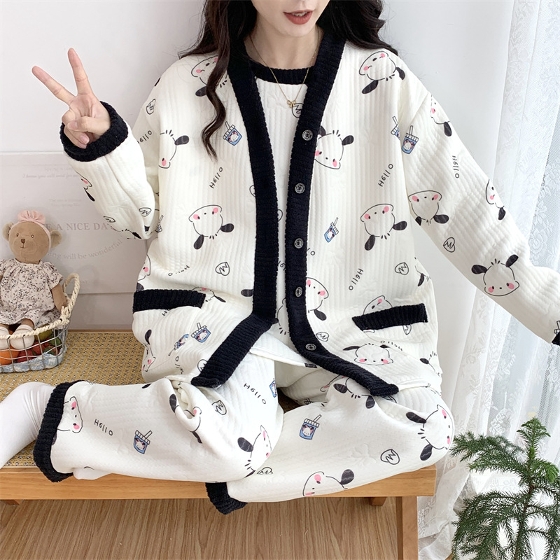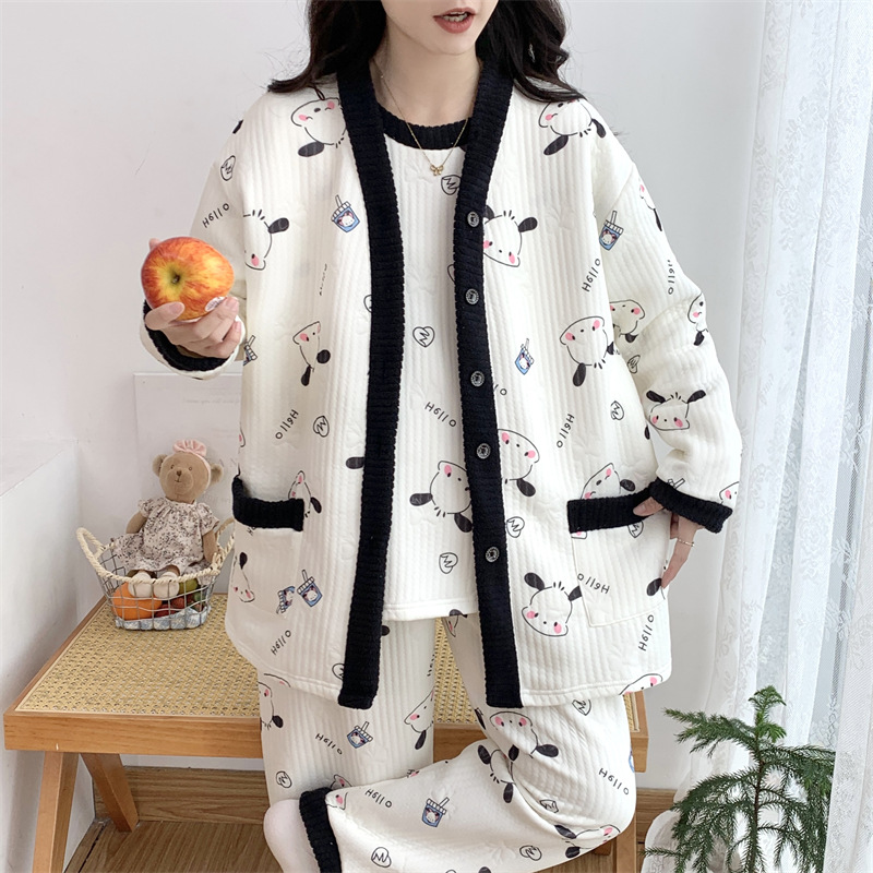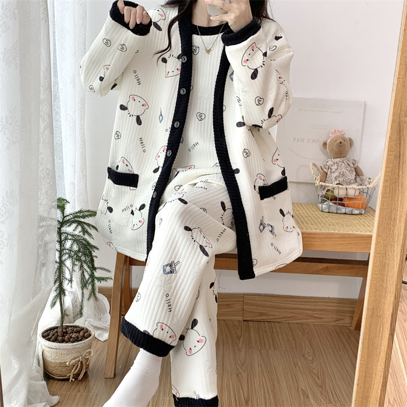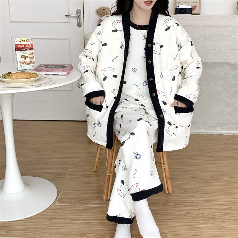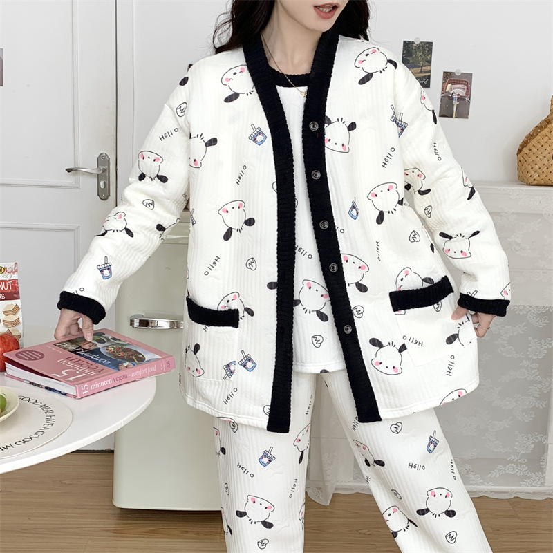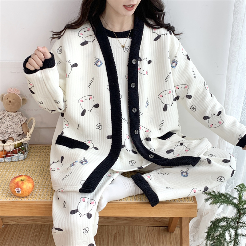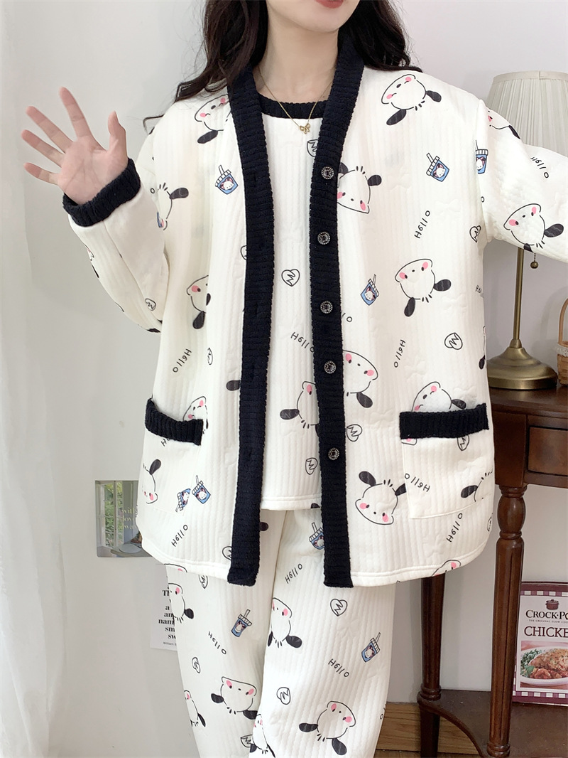 Пижамы для беременных, утолщенная одежда для кормления после родов, одежда для беременных из воздухопроницаемого хлопка большого размера 150kg для отпуска после родов, новый комплект домашней одежды из трех предметов