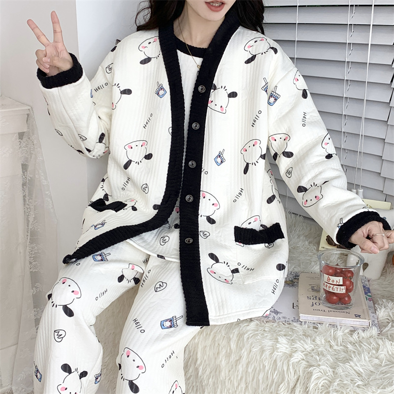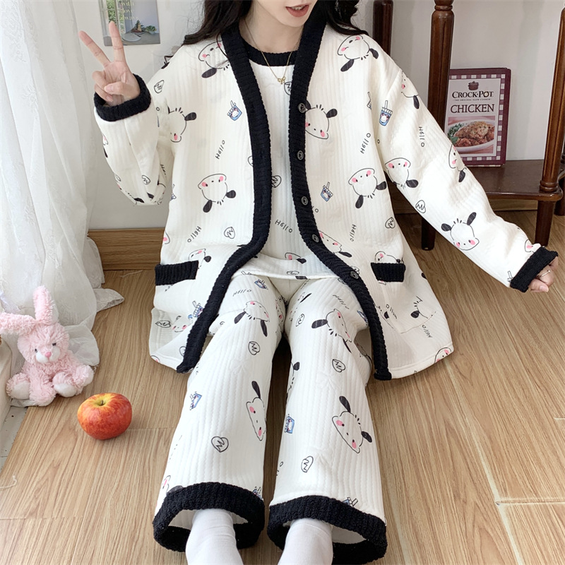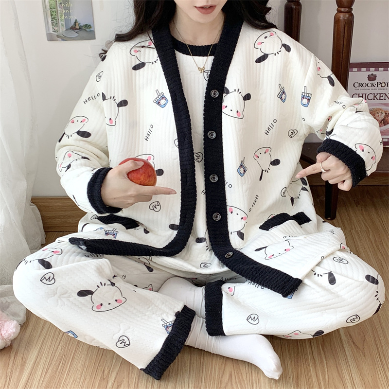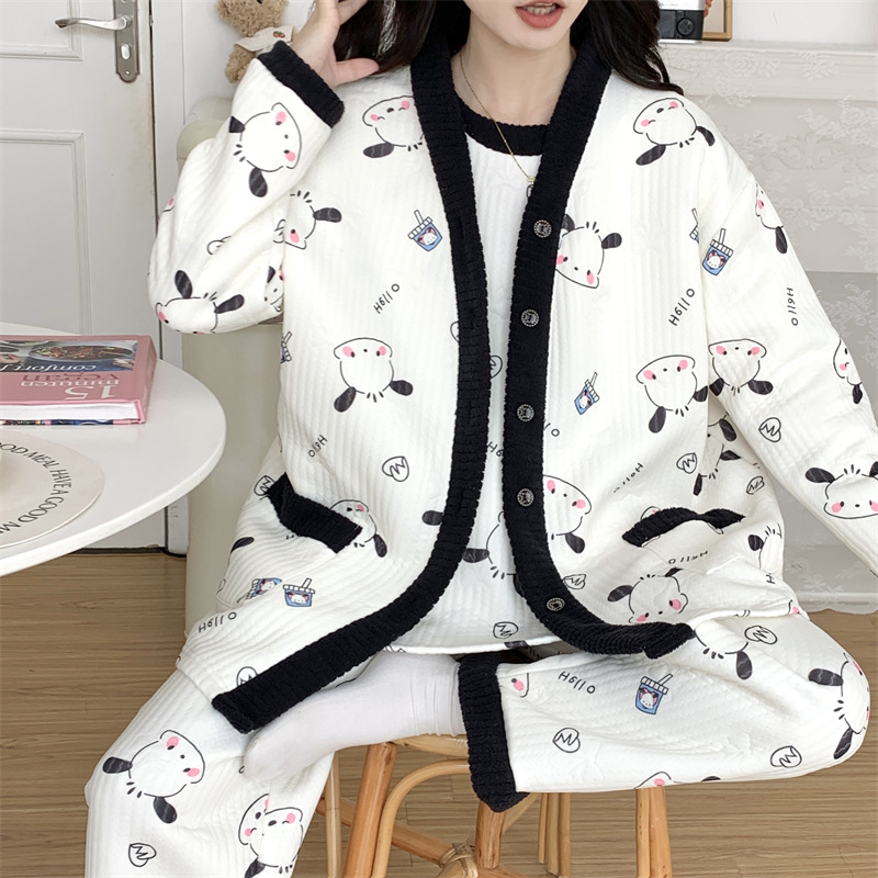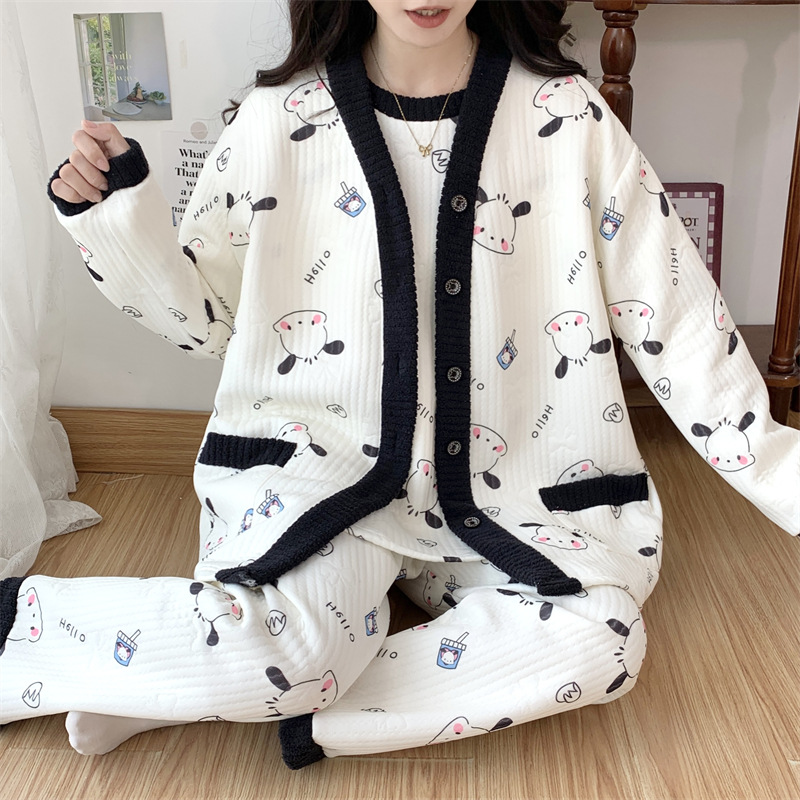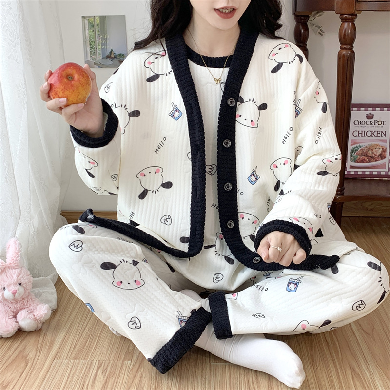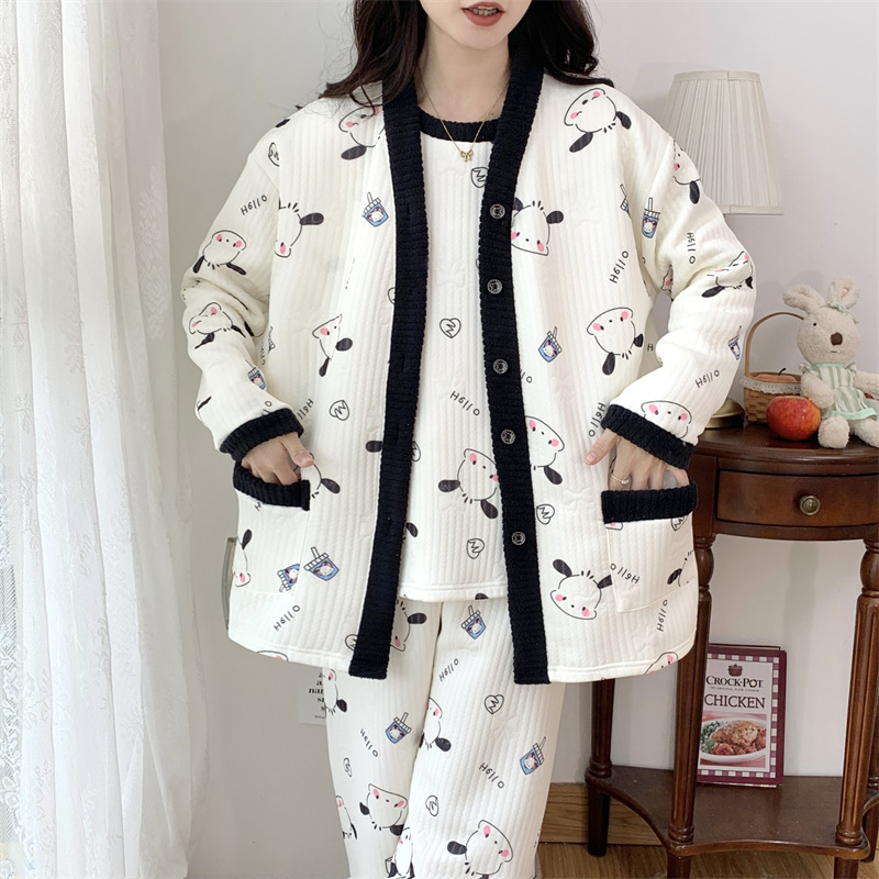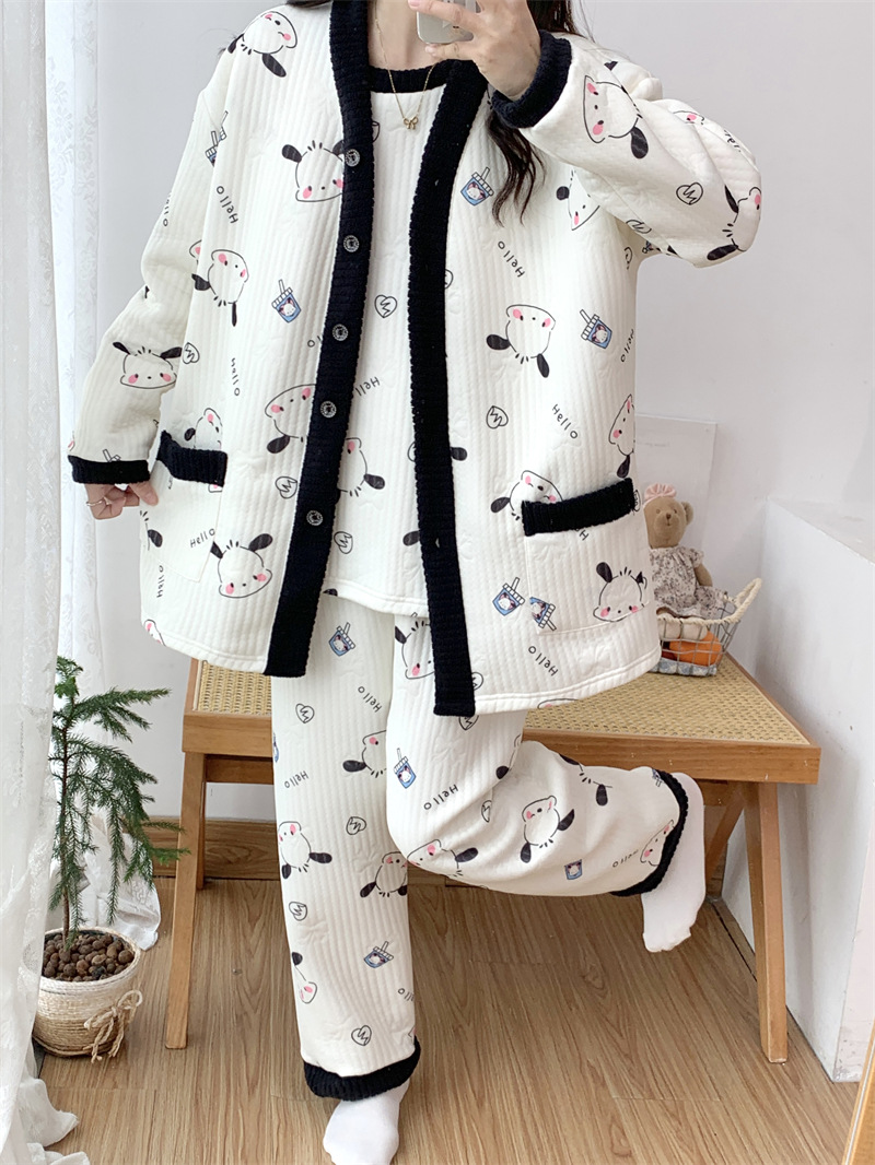 Пижамы для беременных, утолщенная одежда для кормления после родов, одежда для беременных из воздухопроницаемого хлопка большого размера 150kg для отпуска после родов, новый комплект домашней одежды из трех предметов