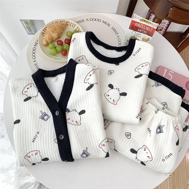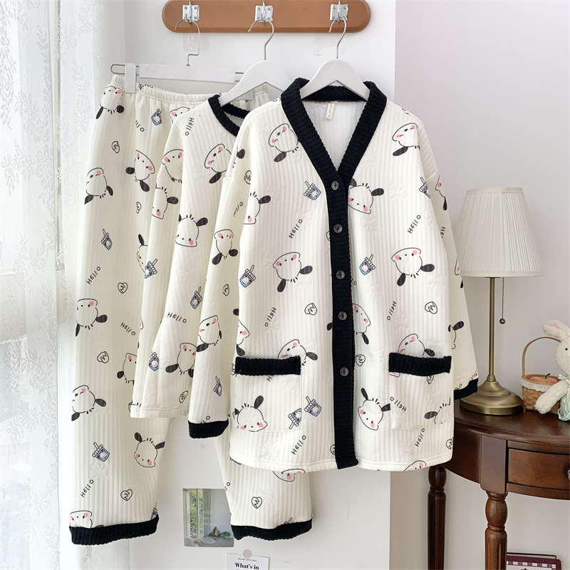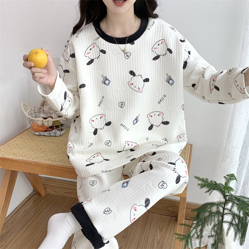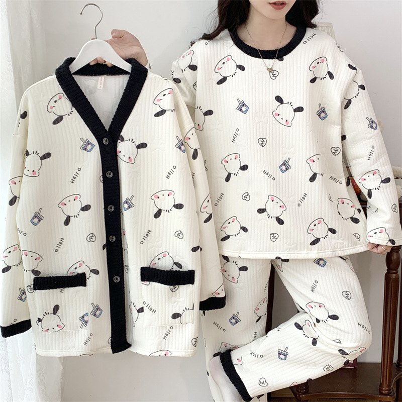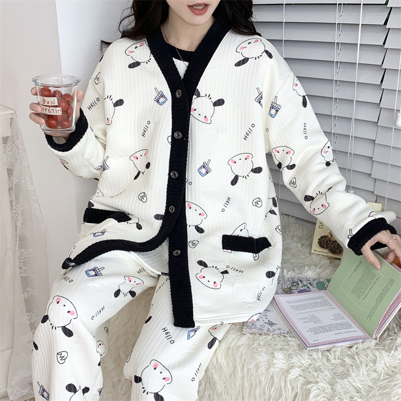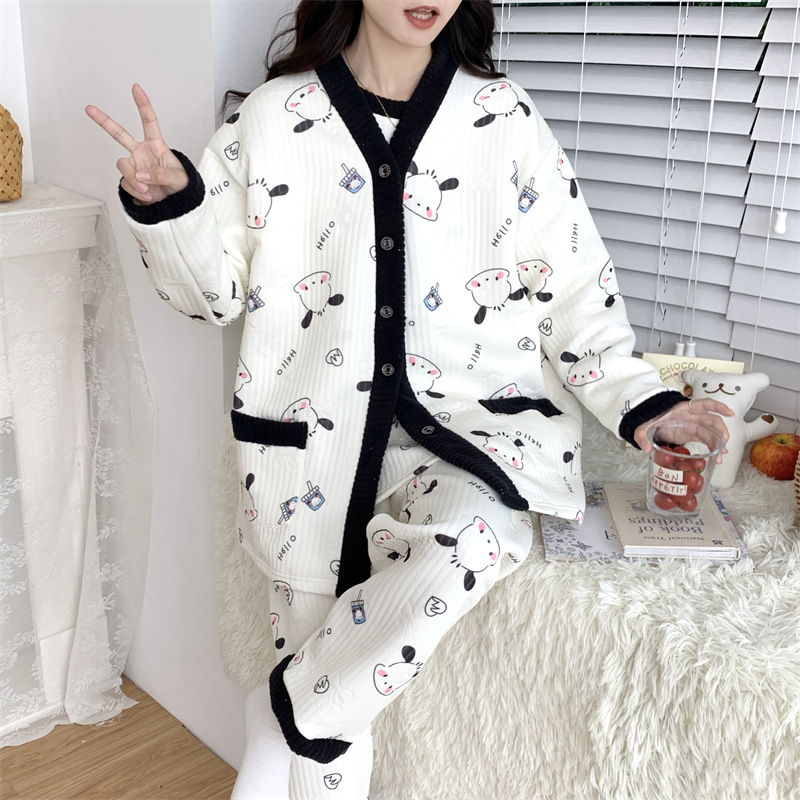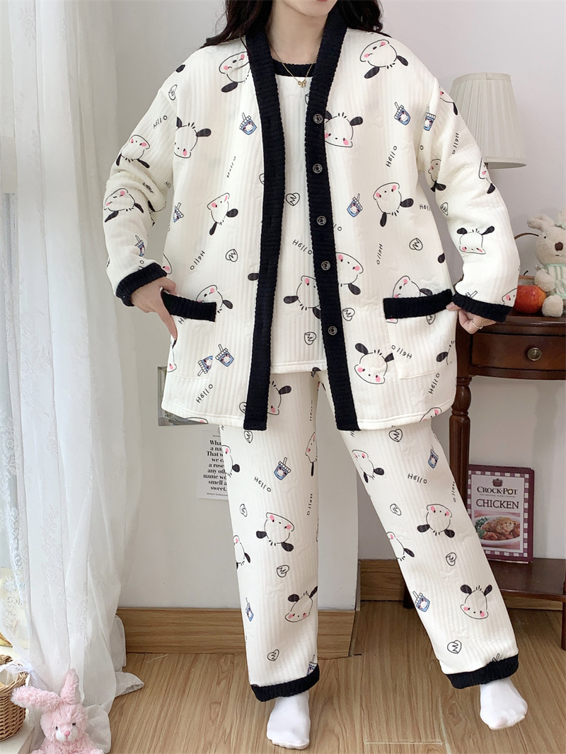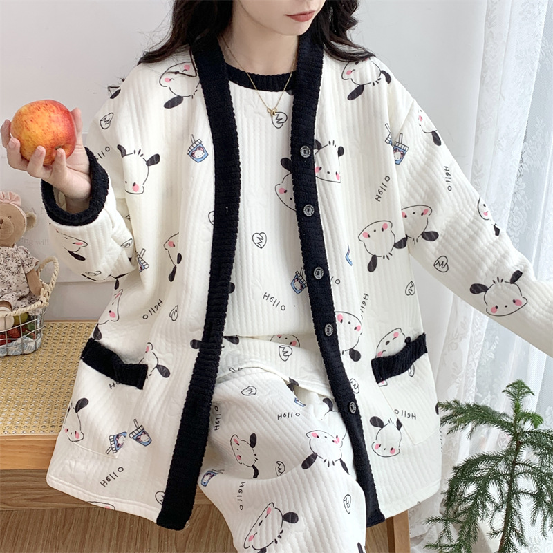 Пижамы для беременных, утолщенная одежда для кормления после родов, одежда для беременных из воздухопроницаемого хлопка большого размера 150kg для отпуска после родов, новый комплект домашней одежды из трех предметов