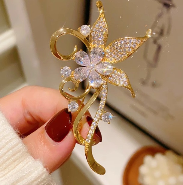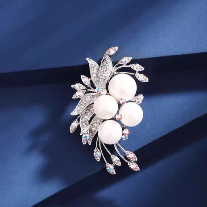 Хит продаж в прямом эфире: модная брошь в корейском стиле, элитная шелковая заколка для шарфа, брошь со стразами, булавка для пальто, жемчужный аксессуар для одежды.