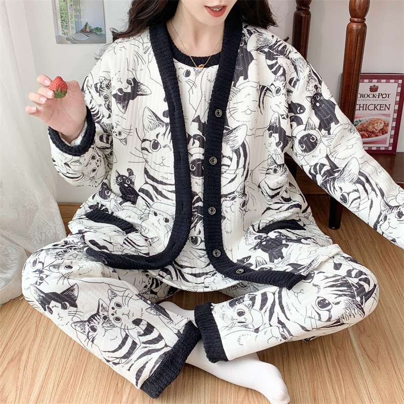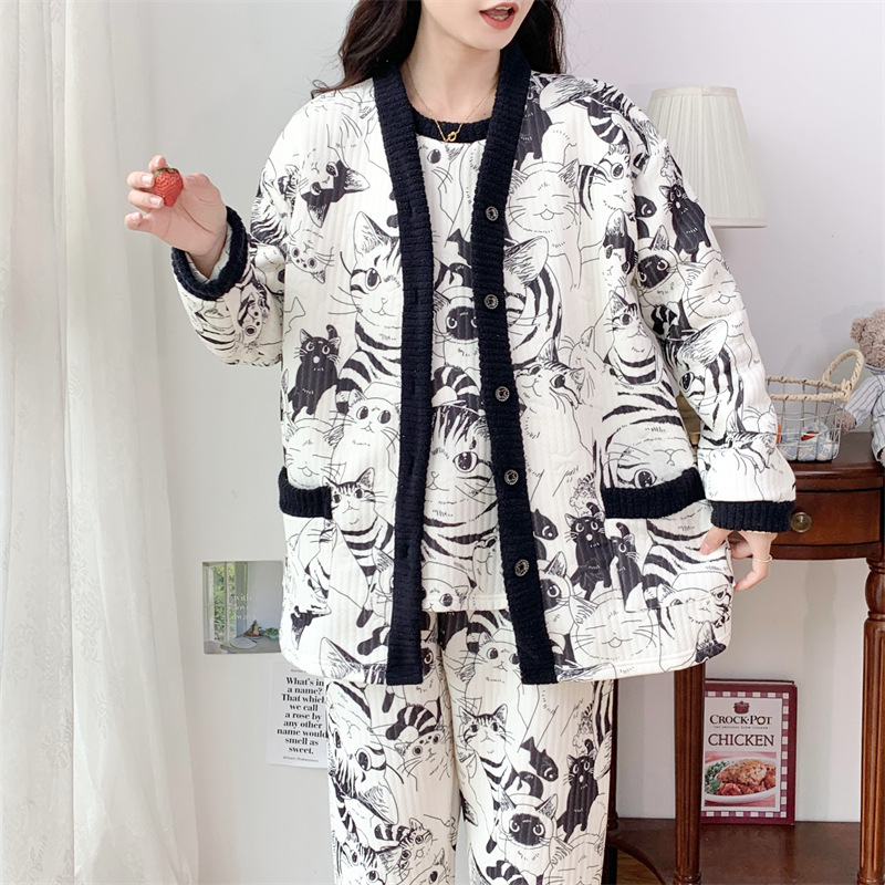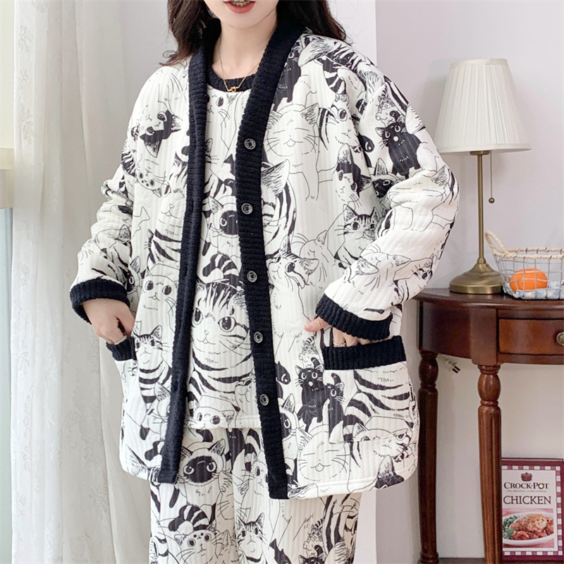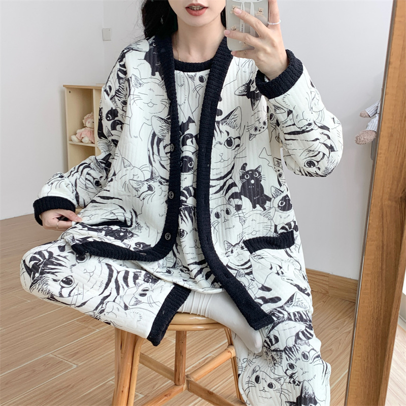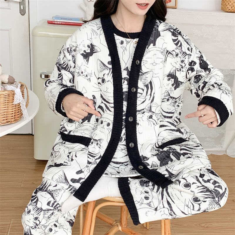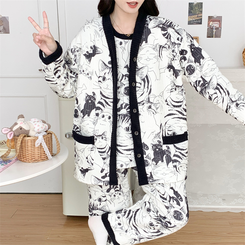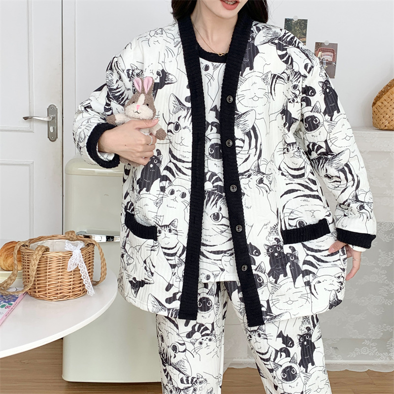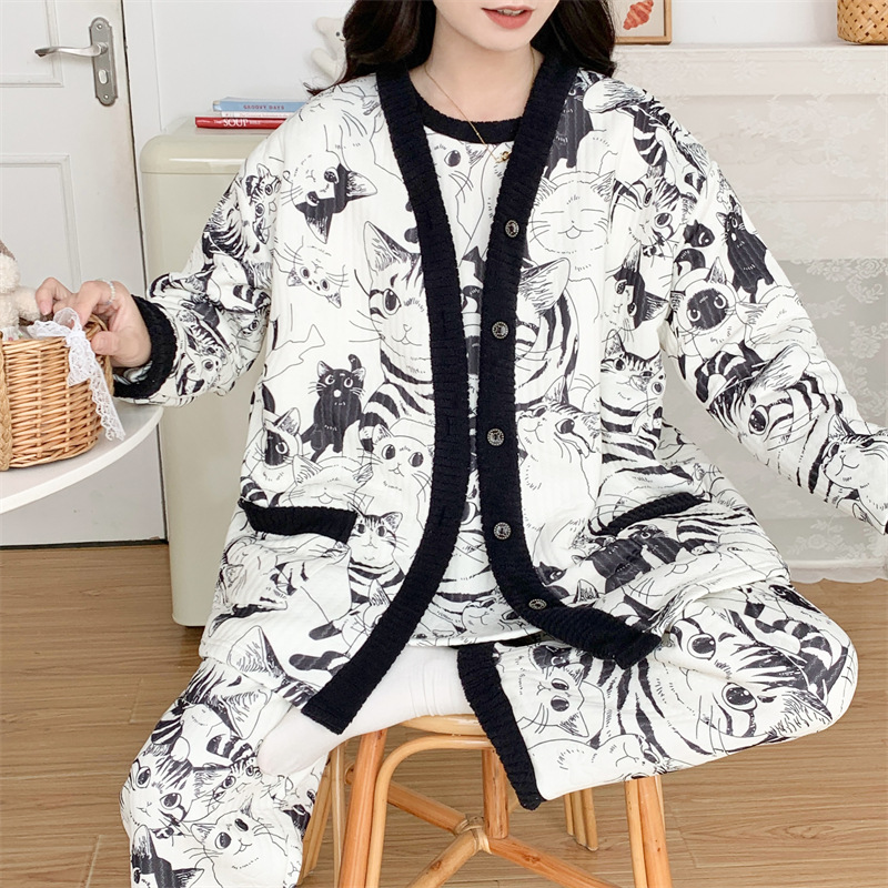 Пижамы для беременных больших размеров, 150kg предметов, из воздухопроницаемого хлопка, послеродовая одежда, утолщенная одежда для кормящих женщин, комплект домашней одежды из трех предметов для женщин после родов, больших размеров