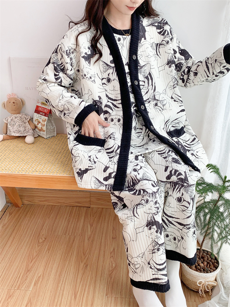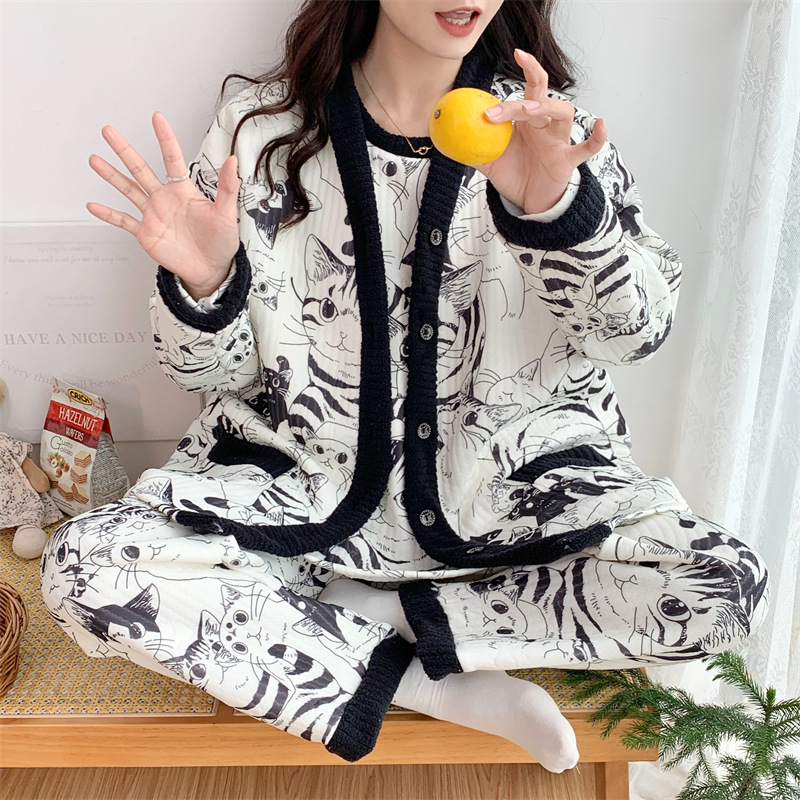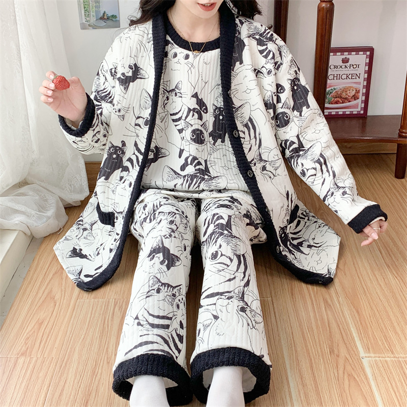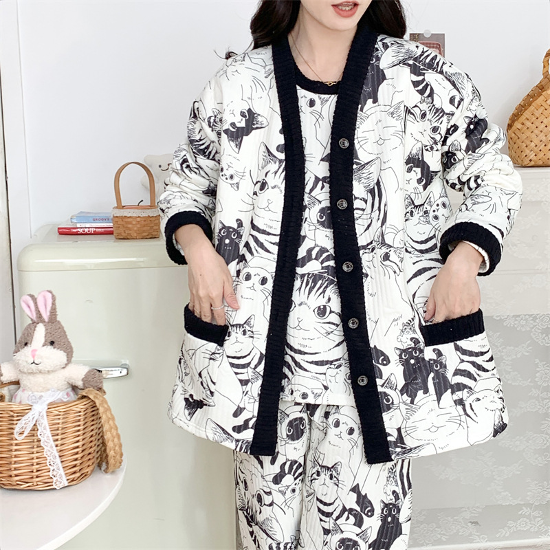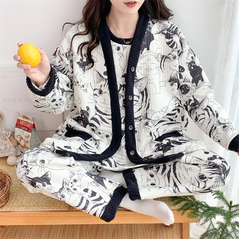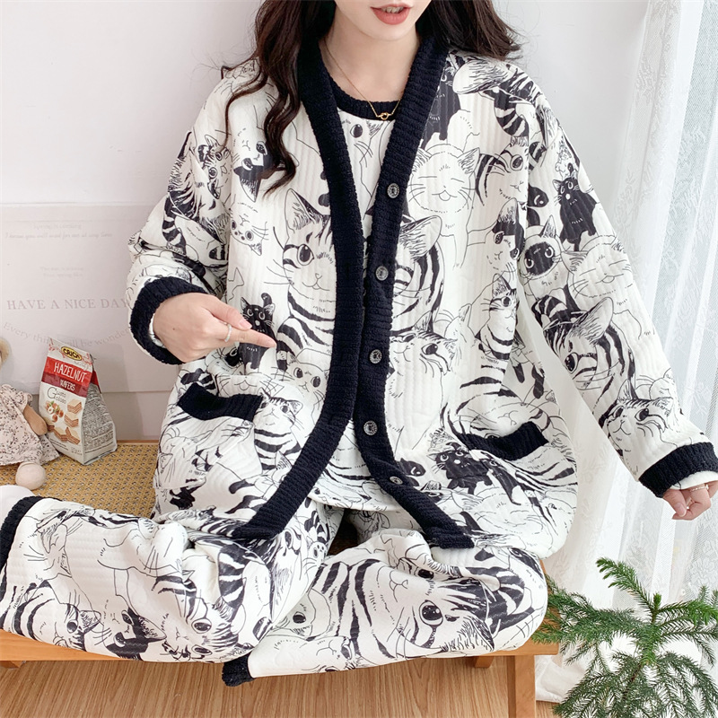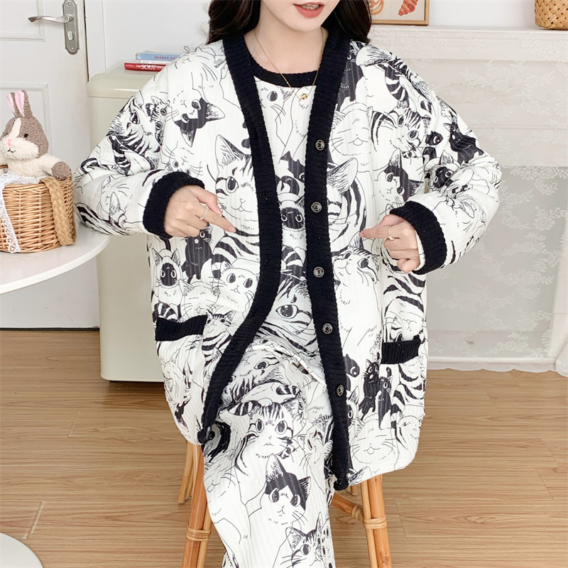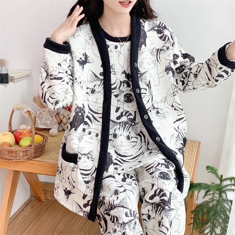 Пижамы для беременных больших размеров, 150kg предметов, из воздухопроницаемого хлопка, послеродовая одежда, утолщенная одежда для кормящих женщин, комплект домашней одежды из трех предметов для женщин после родов, больших размеров