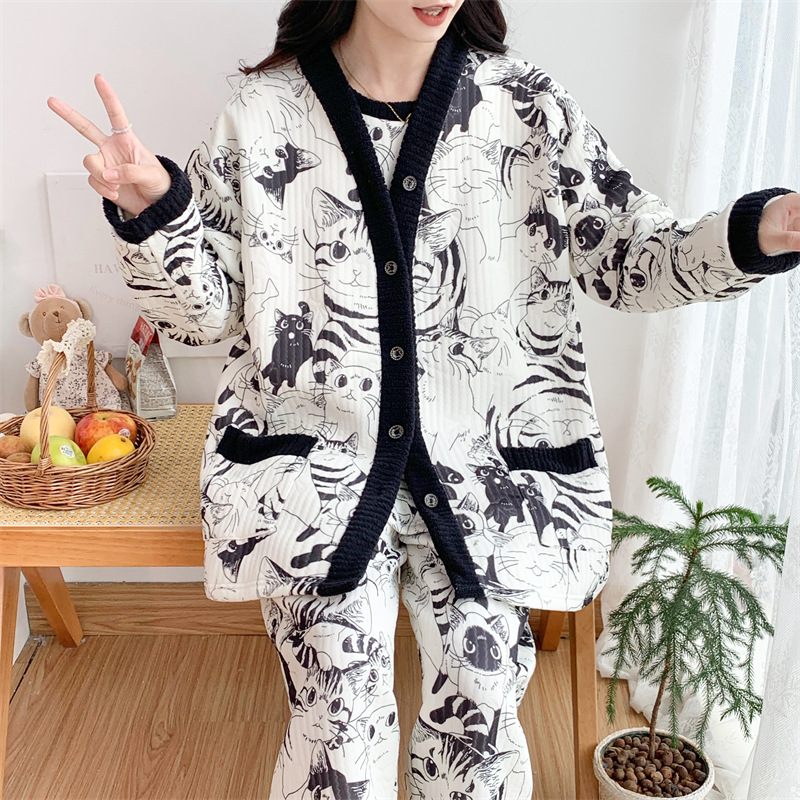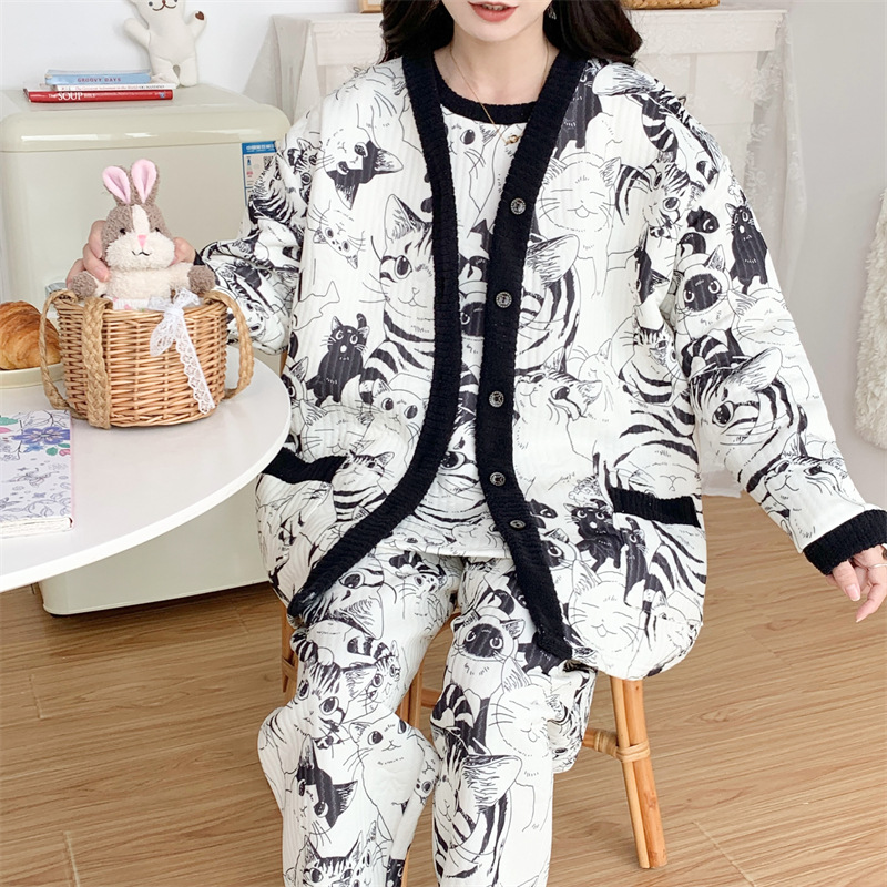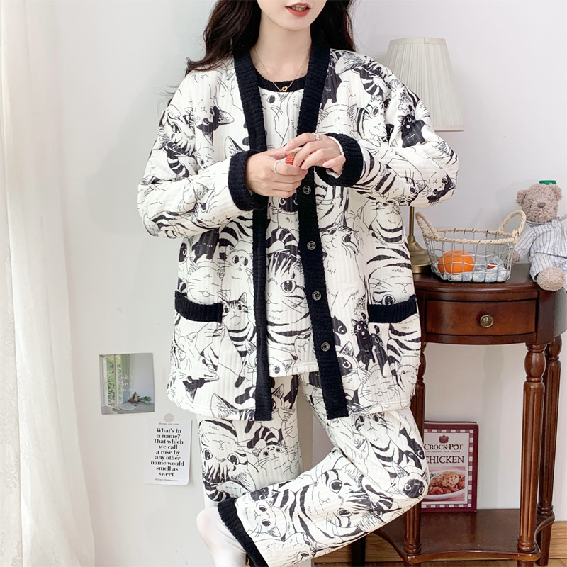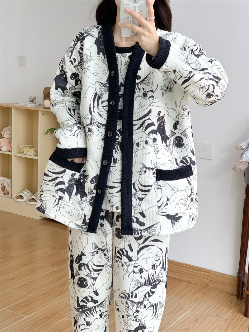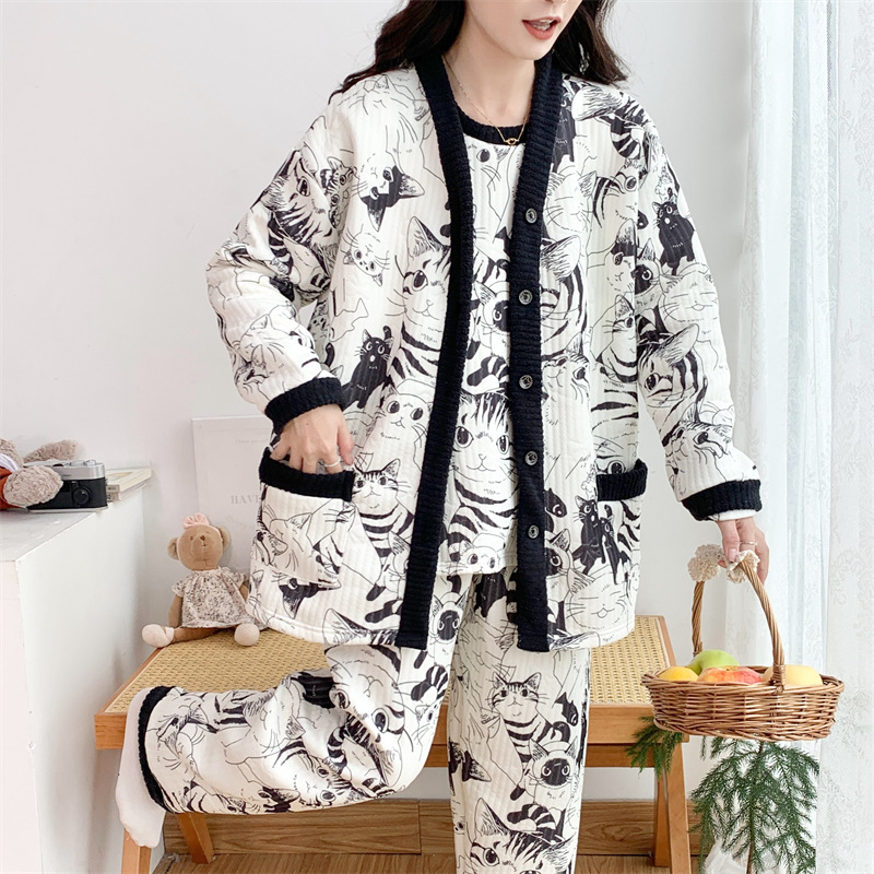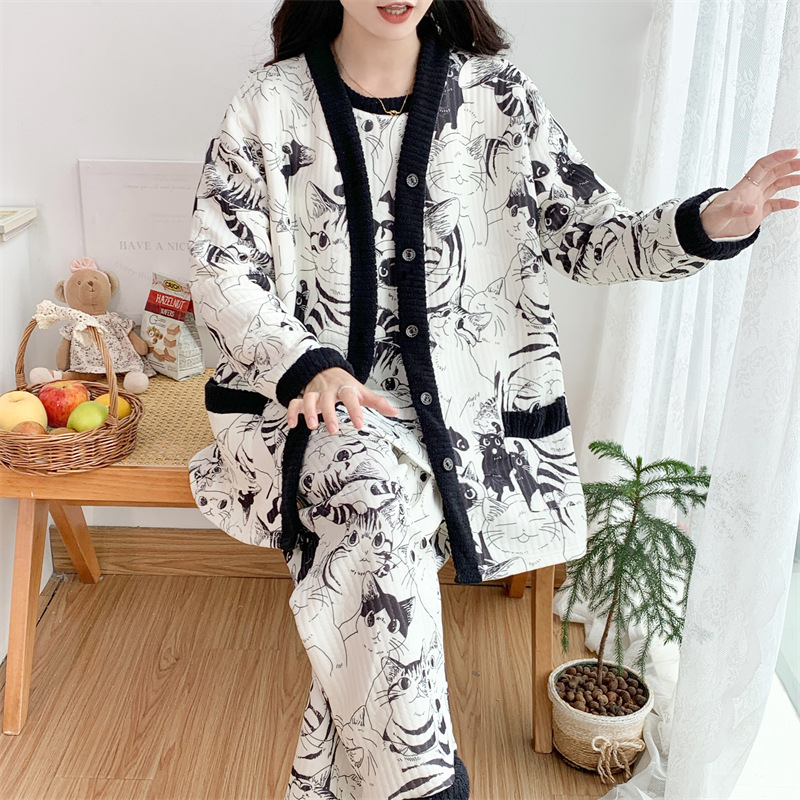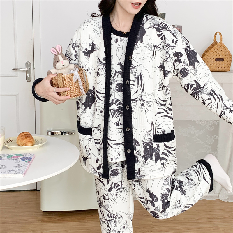 Пижамы для беременных больших размеров, 150kg предметов, из воздухопроницаемого хлопка, послеродовая одежда, утолщенная одежда для кормящих женщин, комплект домашней одежды из трех предметов для женщин после родов, больших размеров
