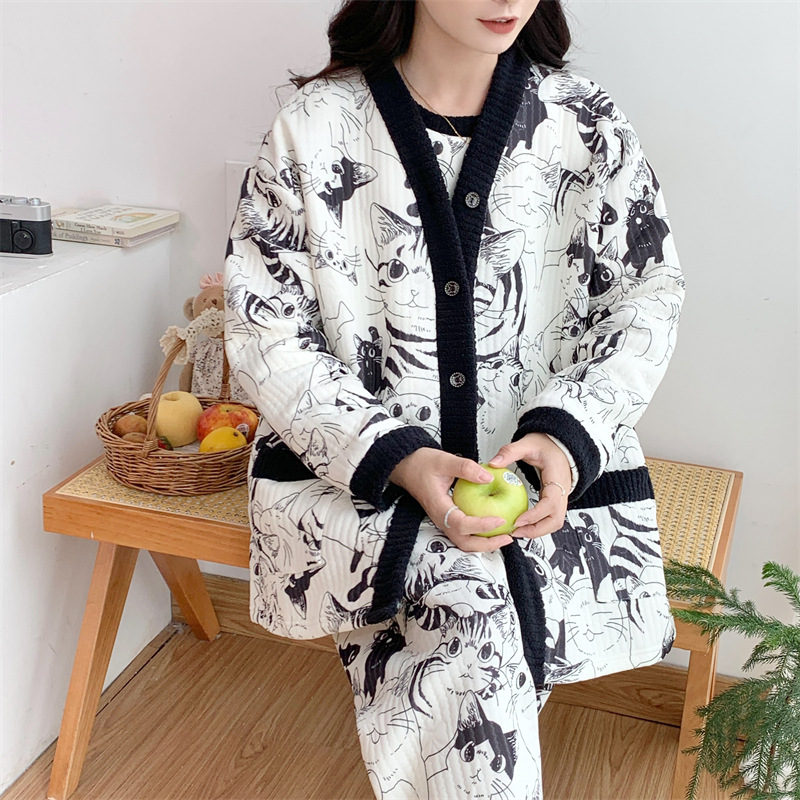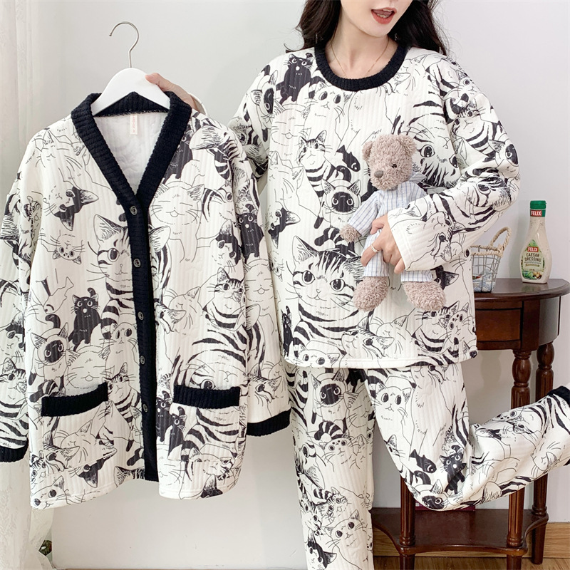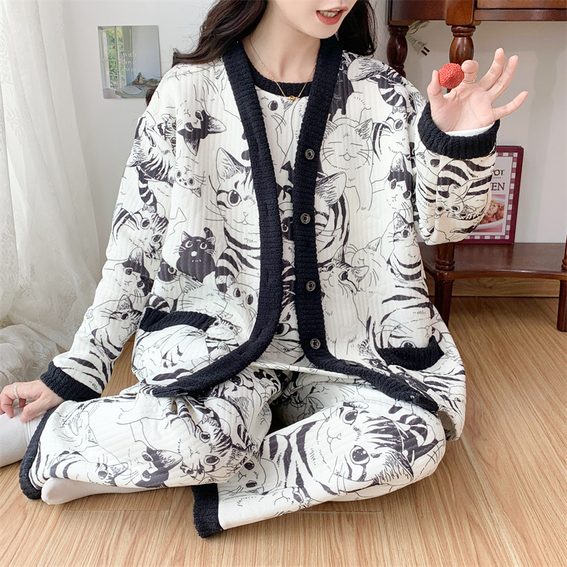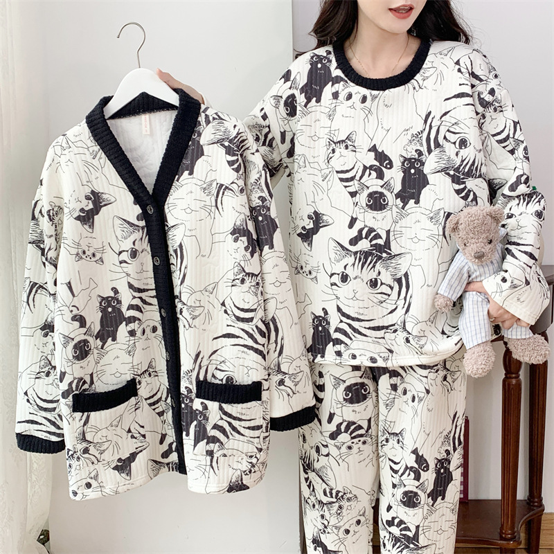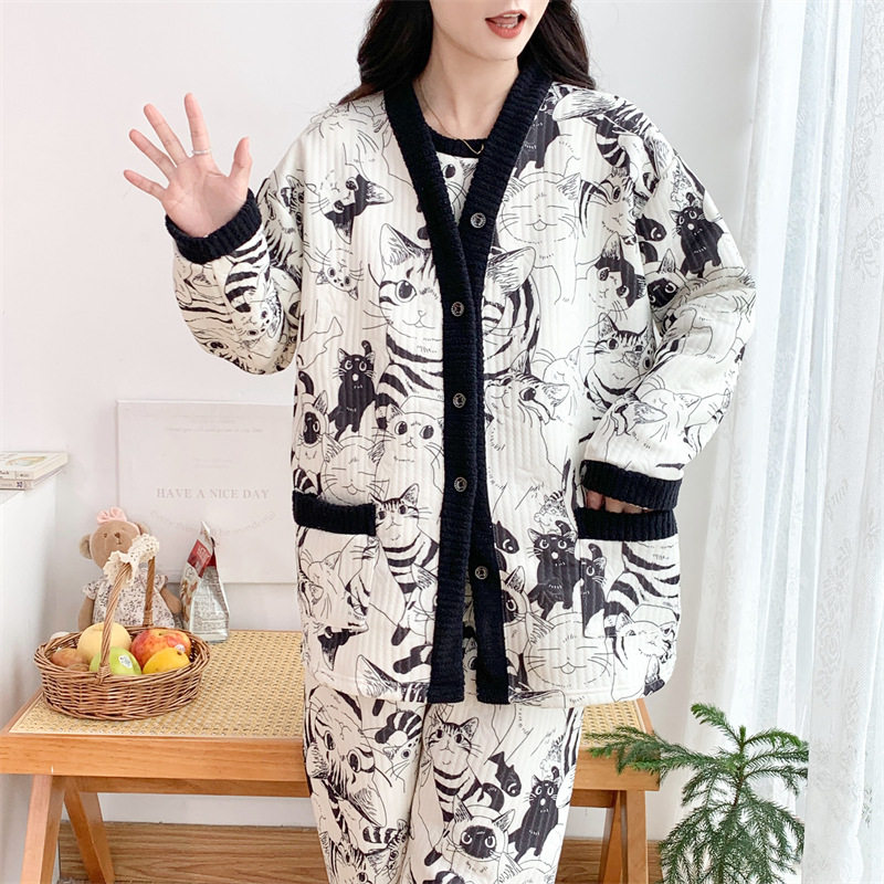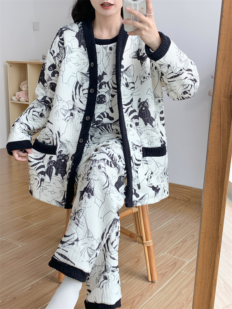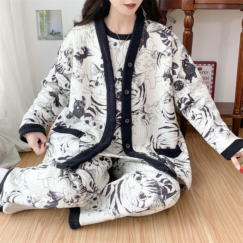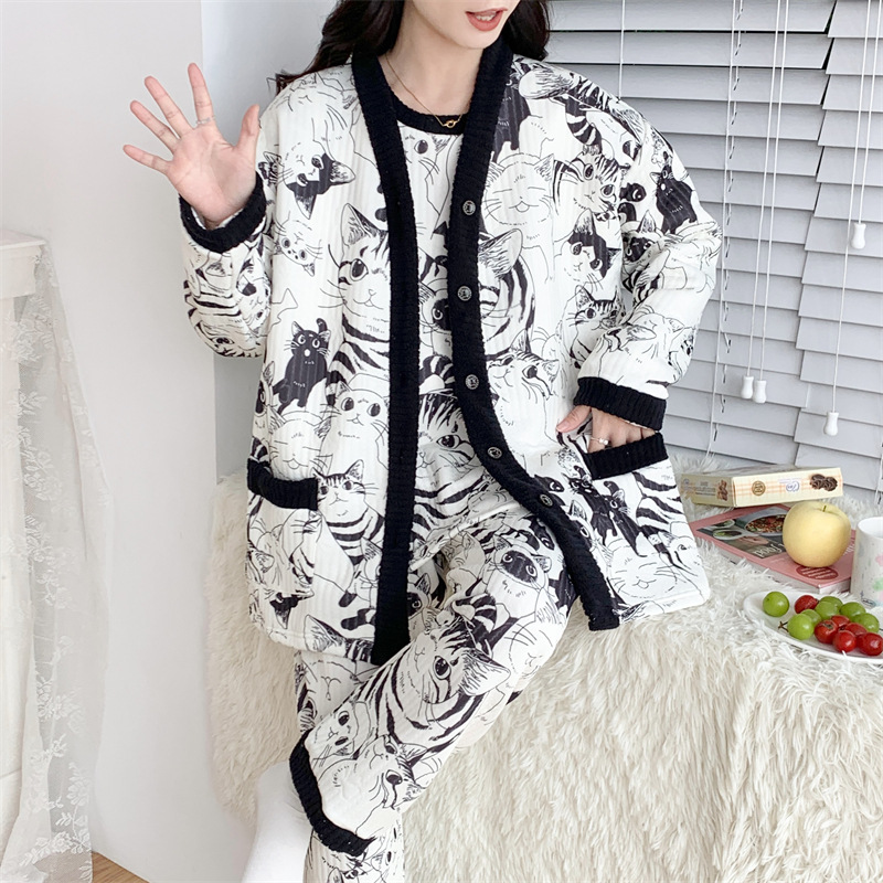 Пижамы для беременных больших размеров, 150kg предметов, из воздухопроницаемого хлопка, послеродовая одежда, утолщенная одежда для кормящих женщин, комплект домашней одежды из трех предметов для женщин после родов, больших размеров