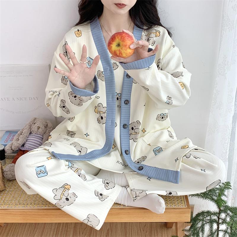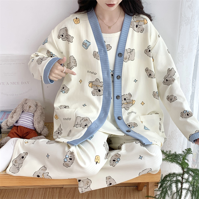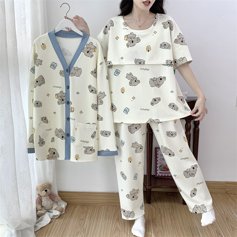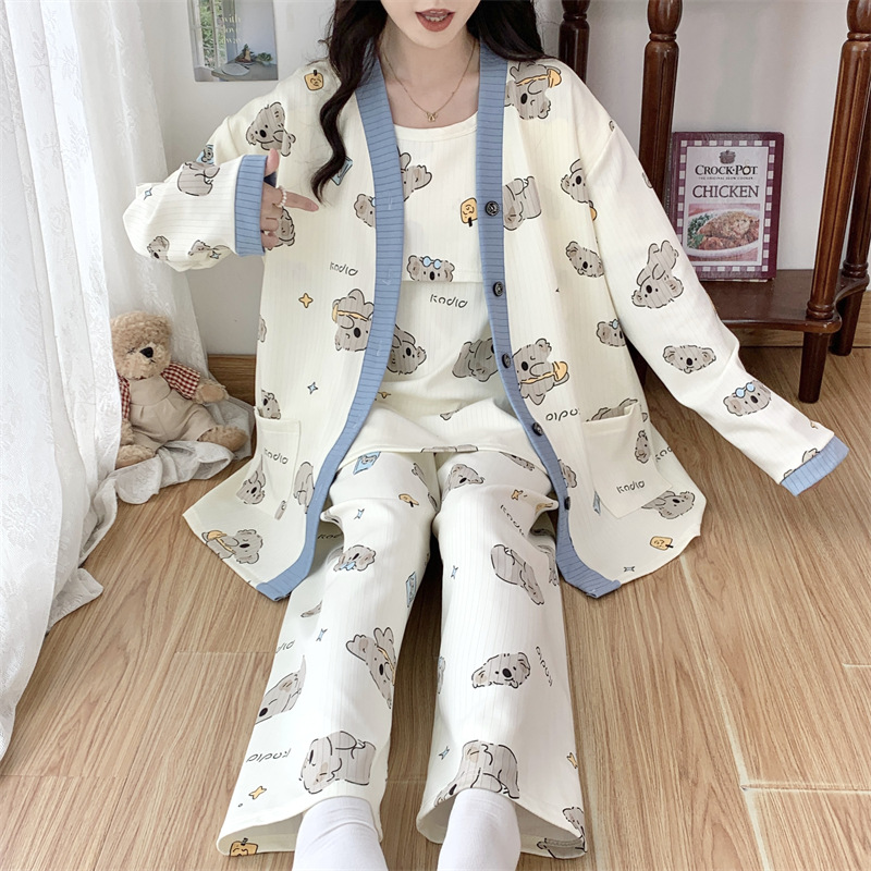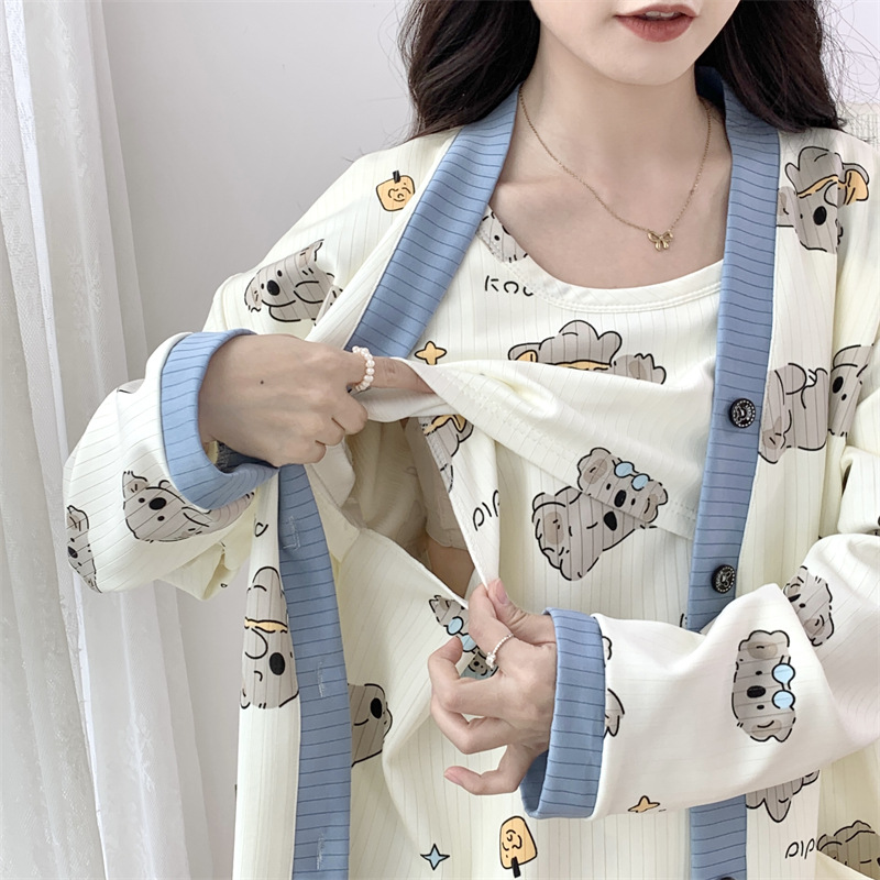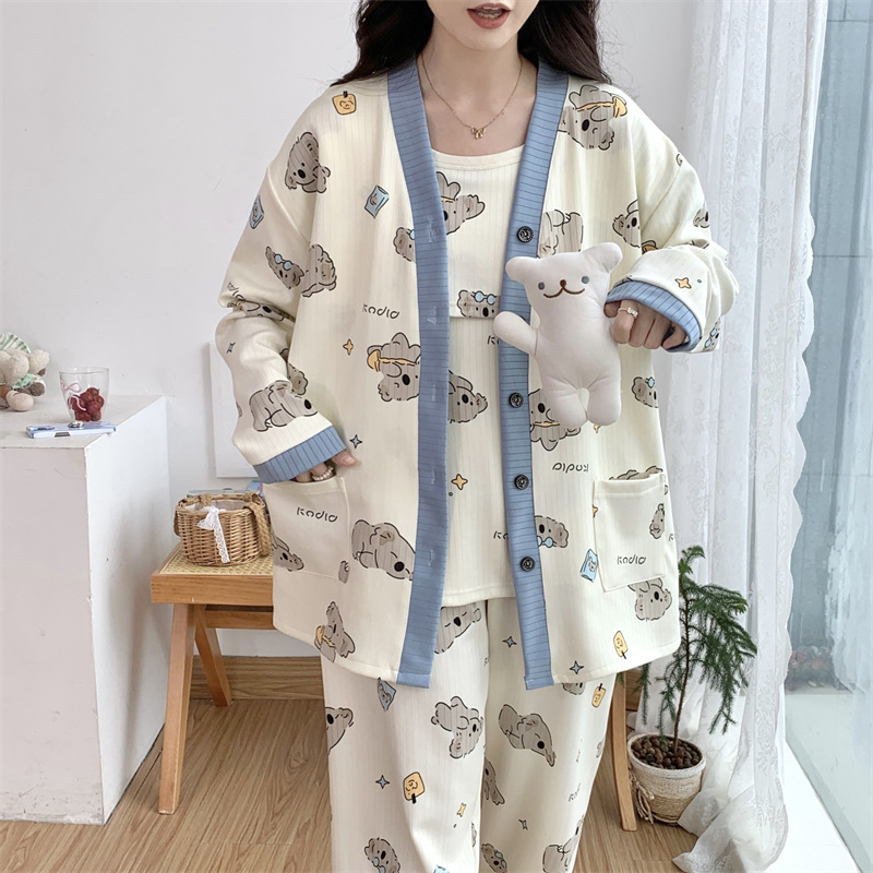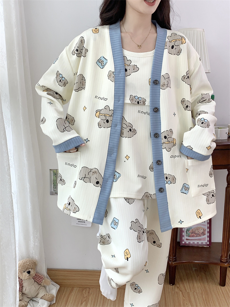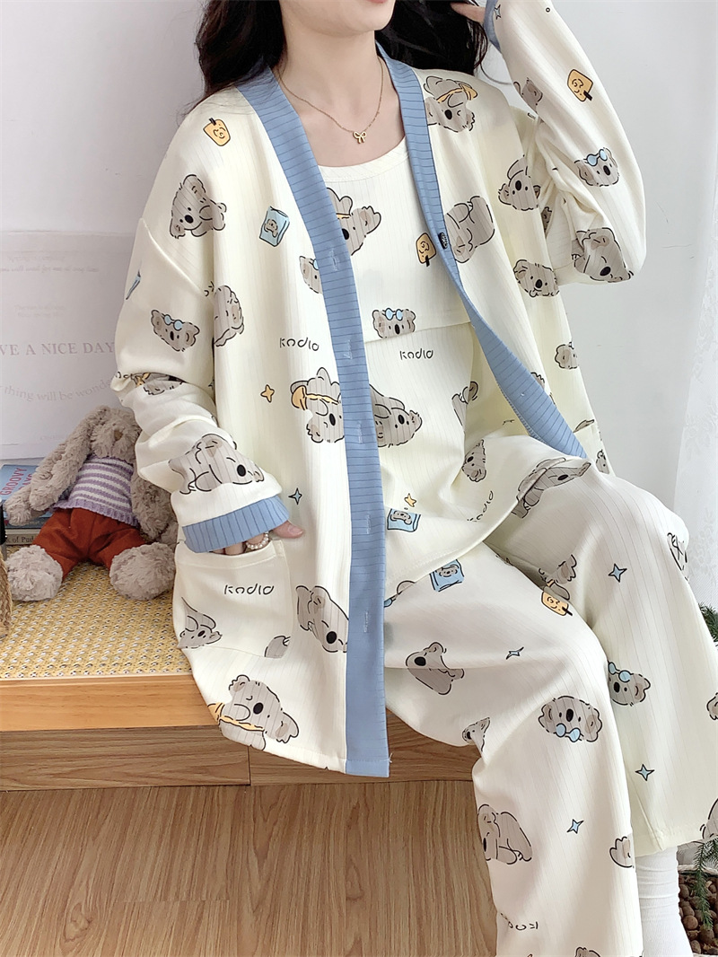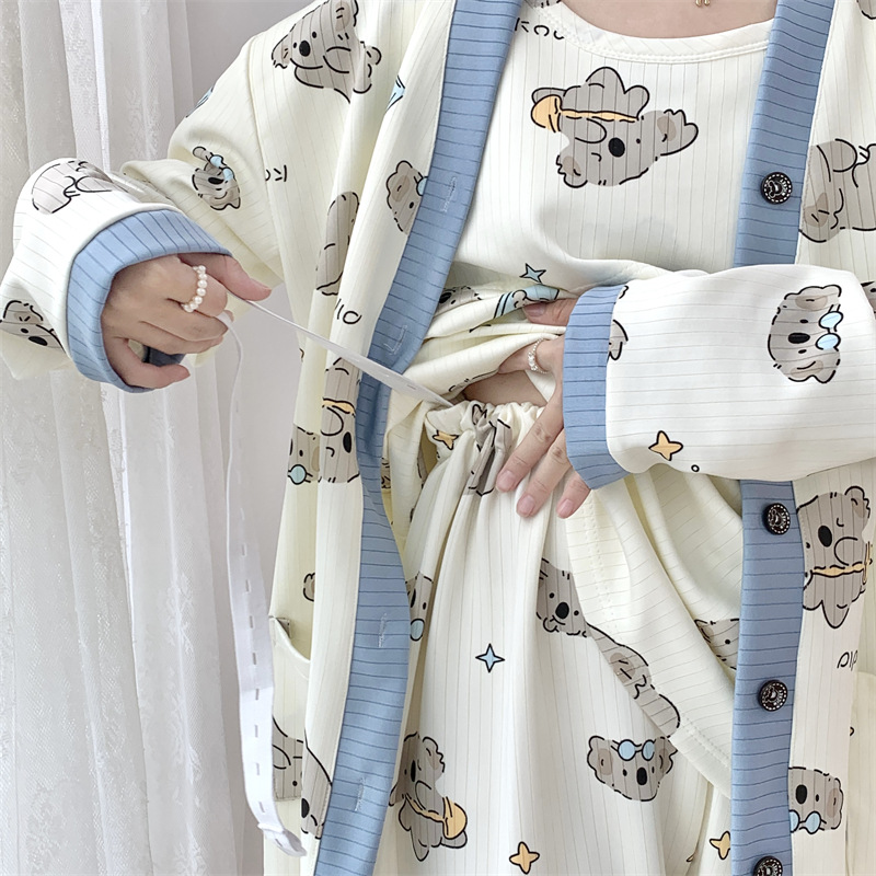 Комплект послеродовой одежды из трех предметов из воздушного хлопка, осенне-зимний стиль, для периода послеродового восстановления, пижама для беременных, одежда для сна для кормящих мам, одежда для беременных больших размеров.