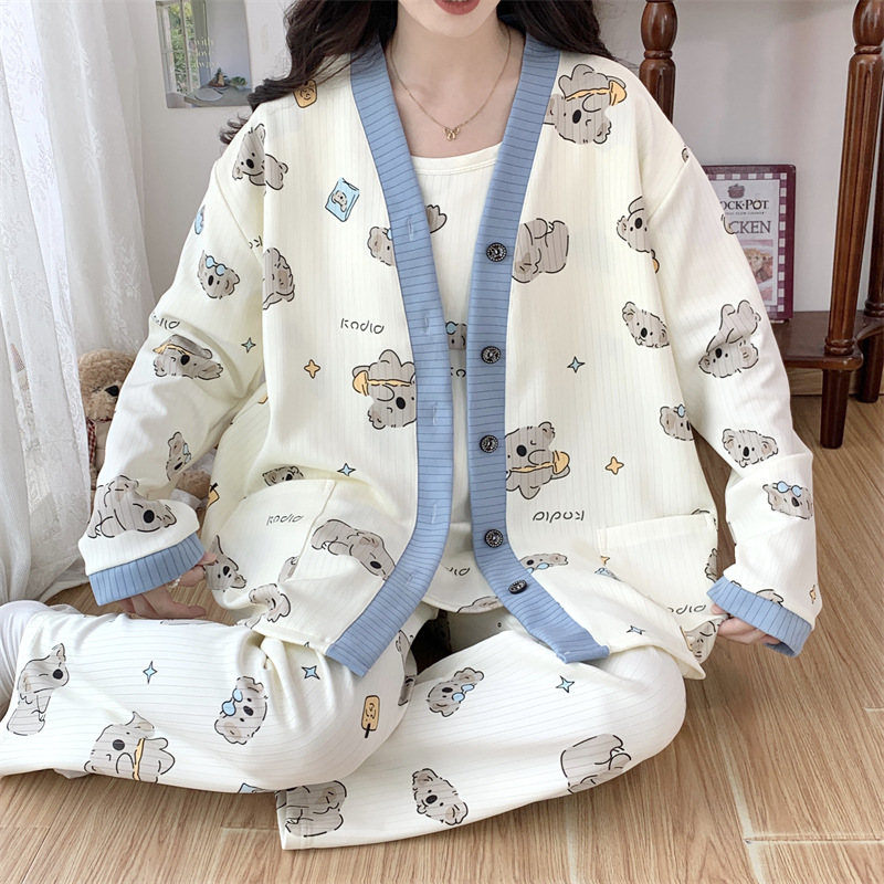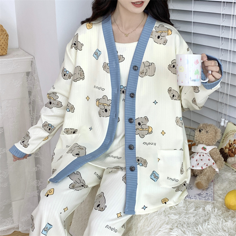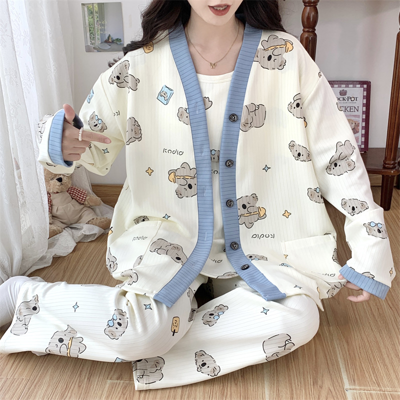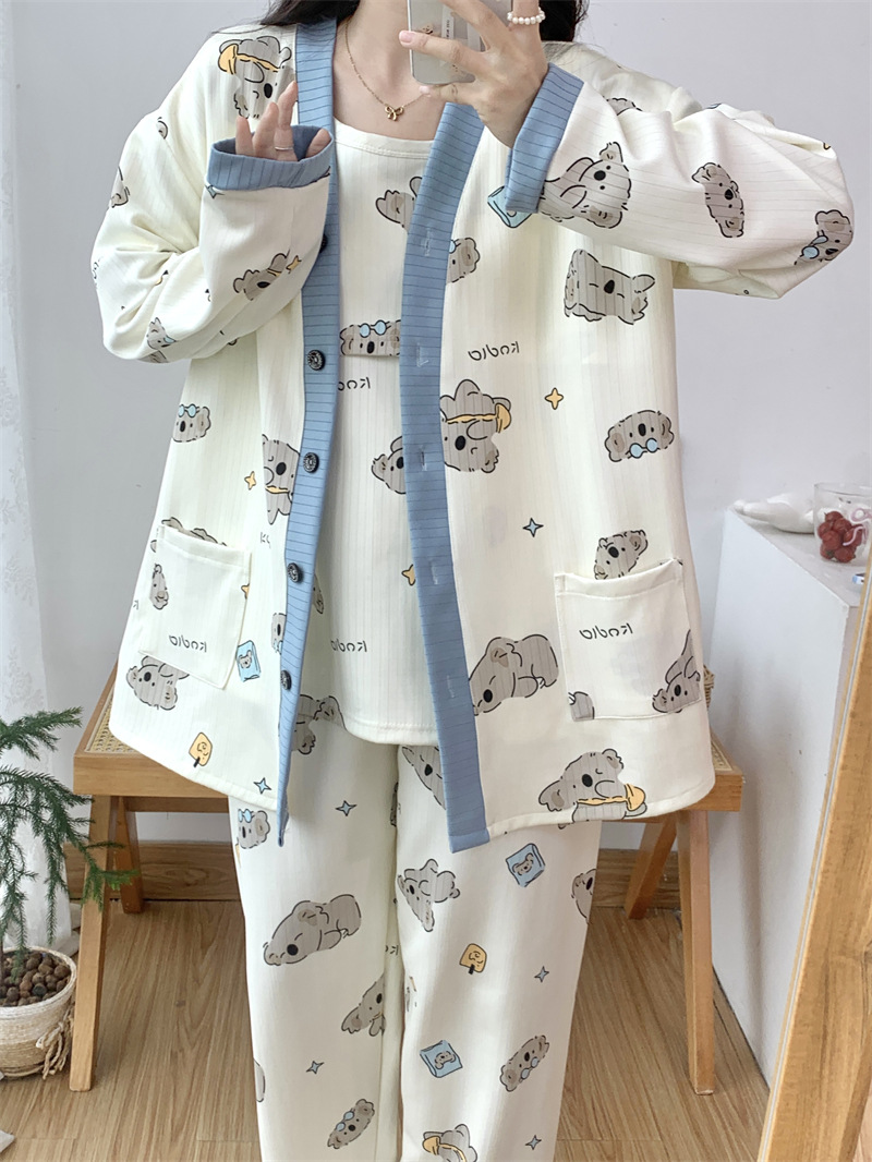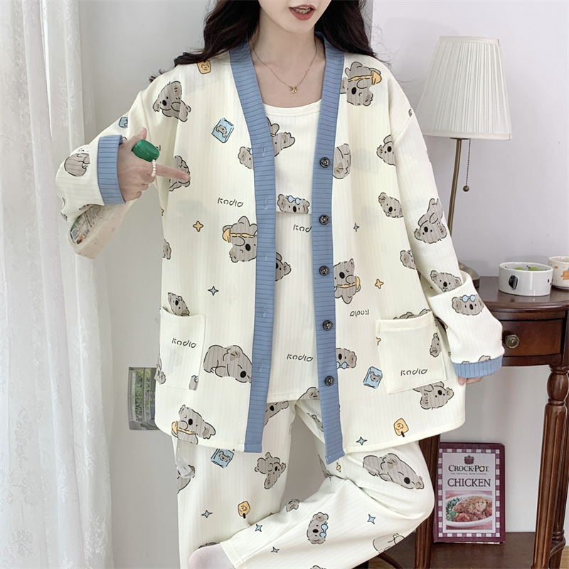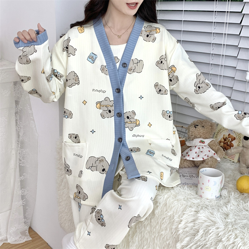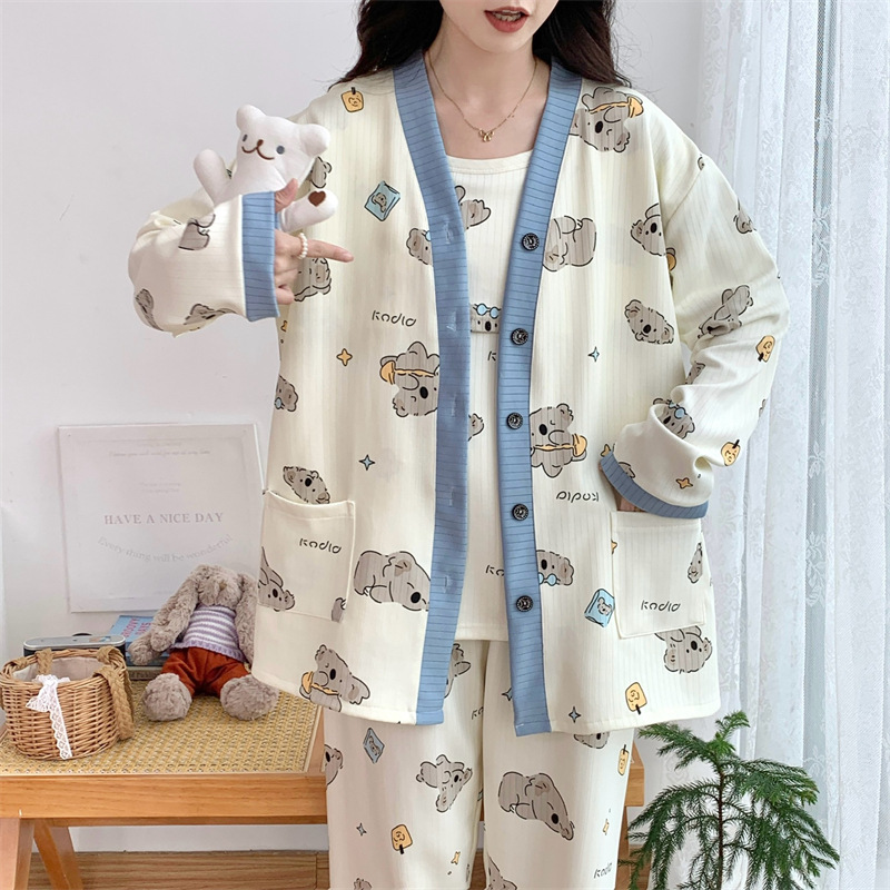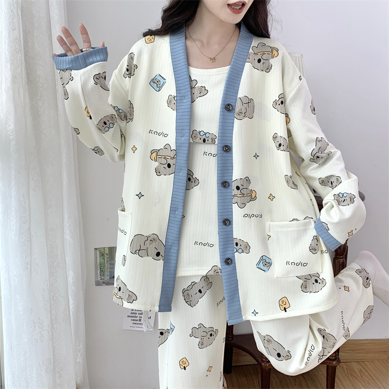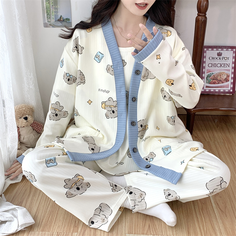 Комплект послеродовой одежды из трех предметов из воздушного хлопка, осенне-зимний стиль, для периода послеродового восстановления, пижама для беременных, одежда для сна для кормящих мам, одежда для беременных больших размеров.