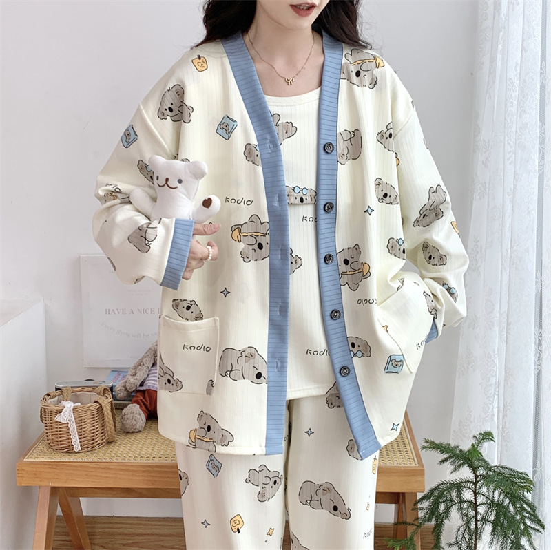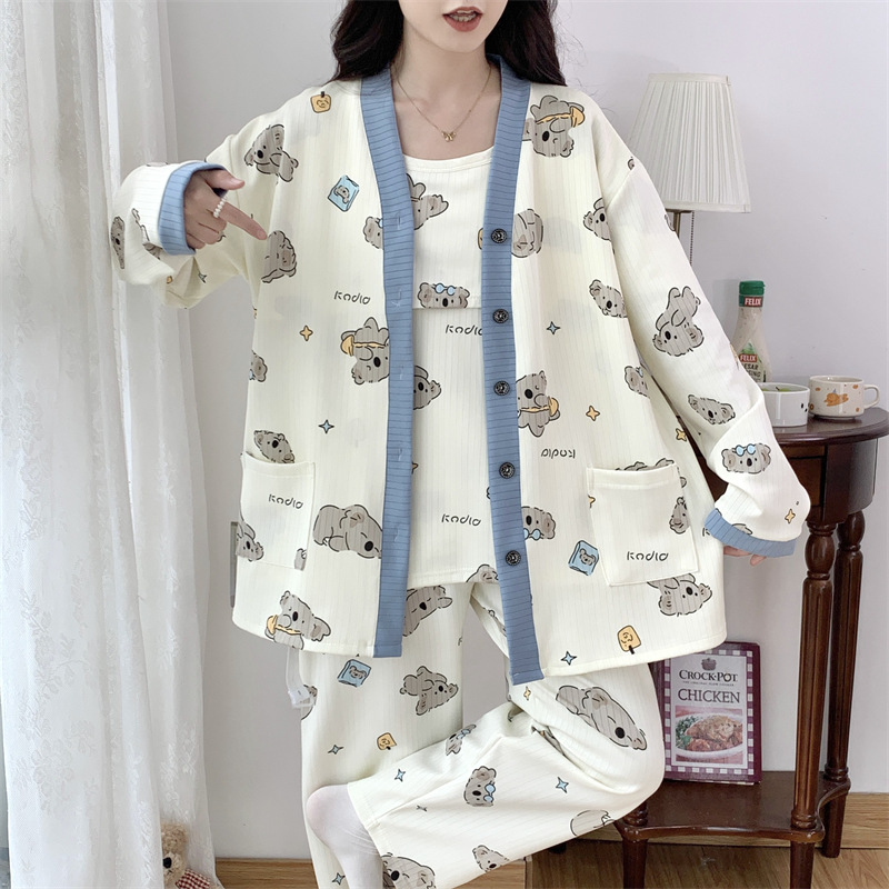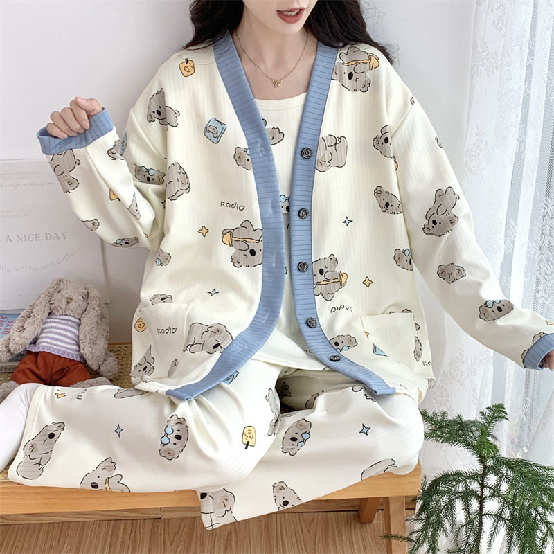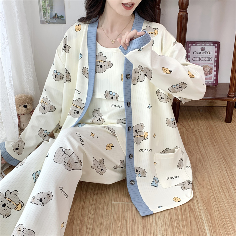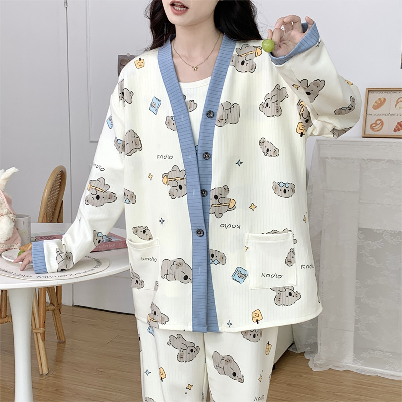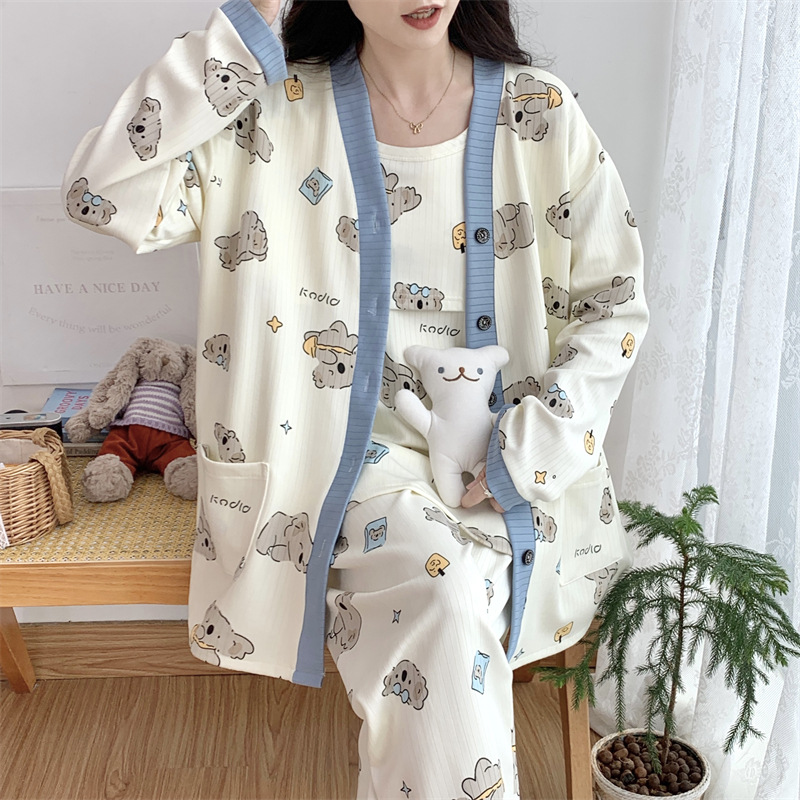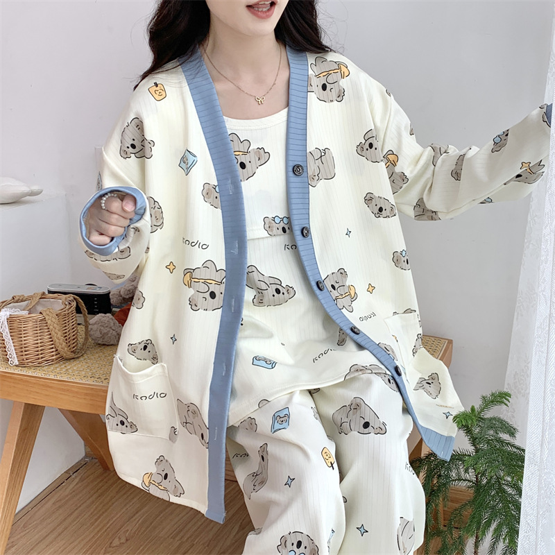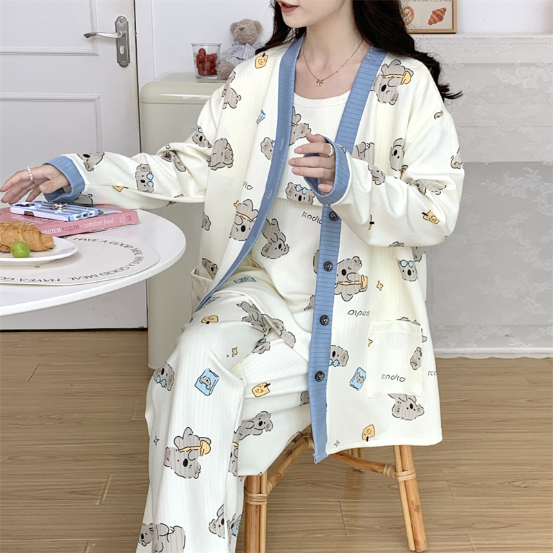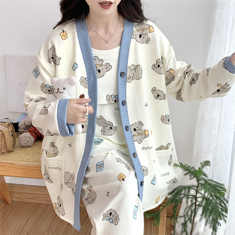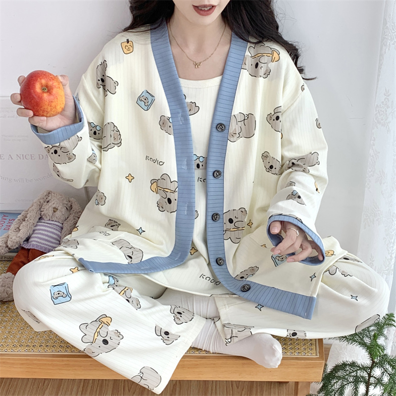 Комплект послеродовой одежды из трех предметов из воздушного хлопка, осенне-зимний стиль, для периода послеродового восстановления, пижама для беременных, одежда для сна для кормящих мам, одежда для беременных больших размеров.