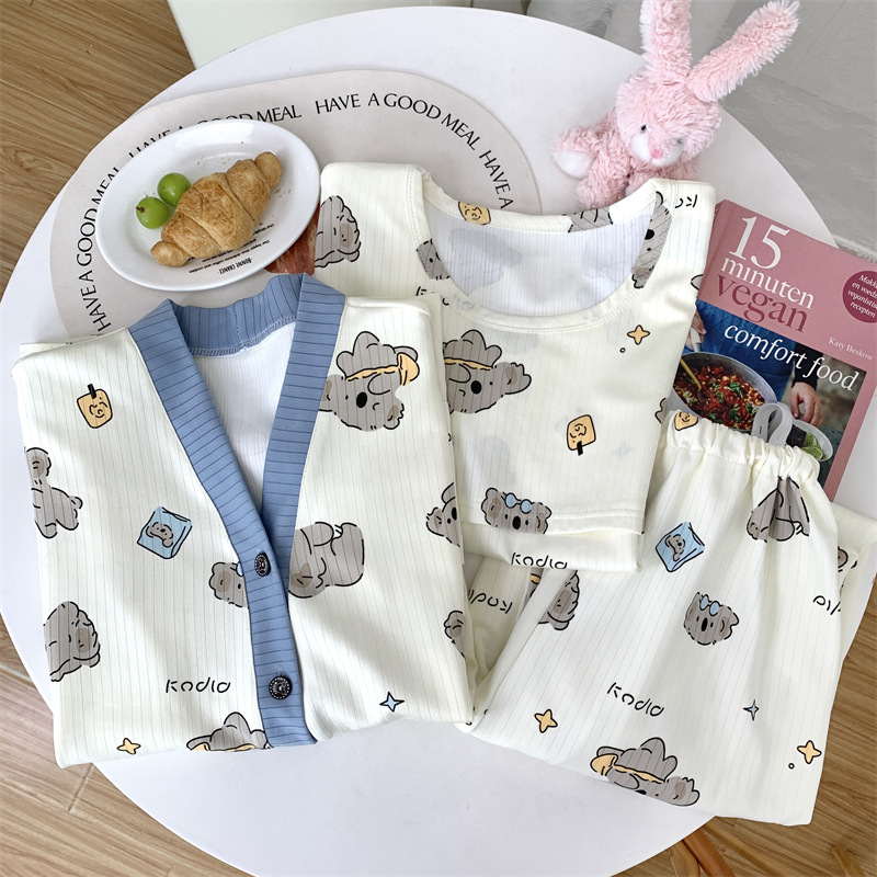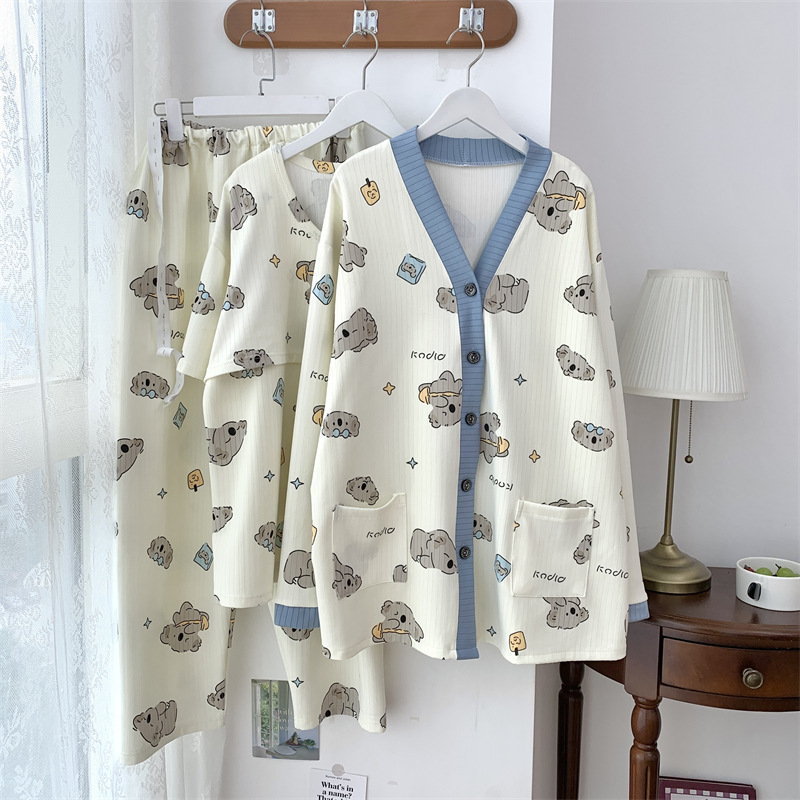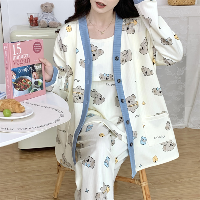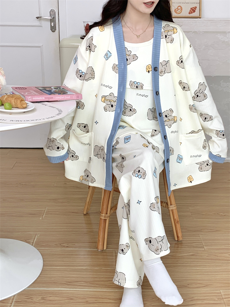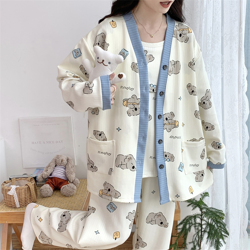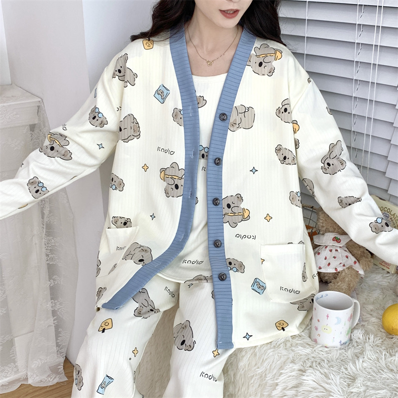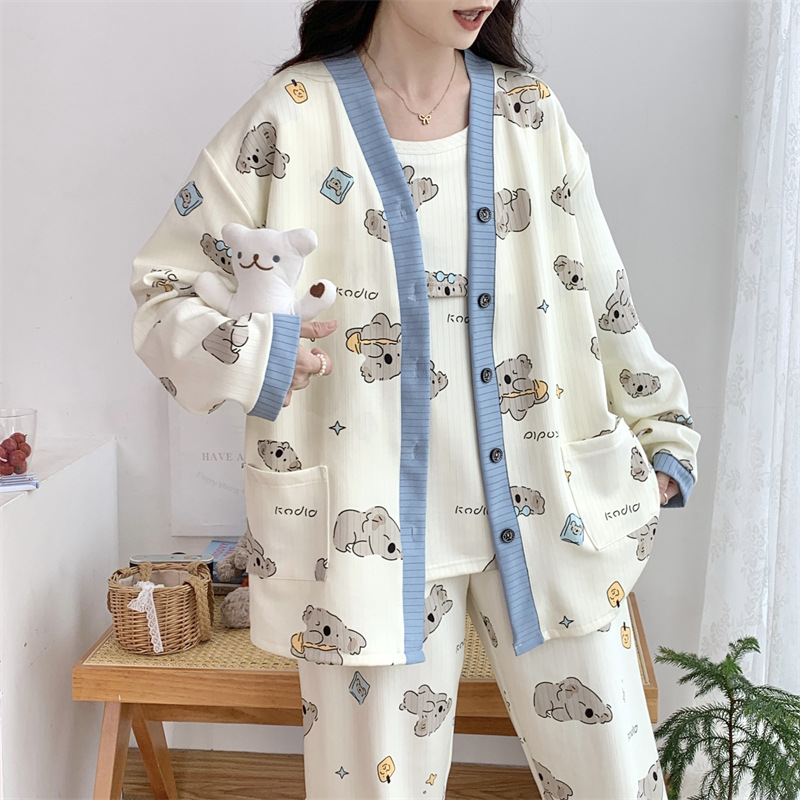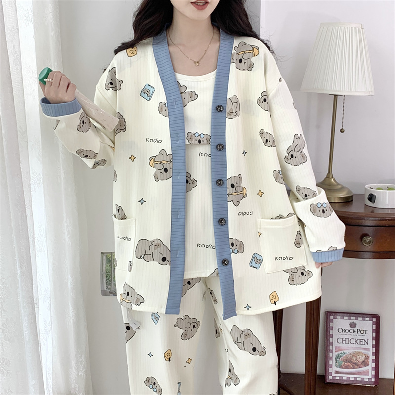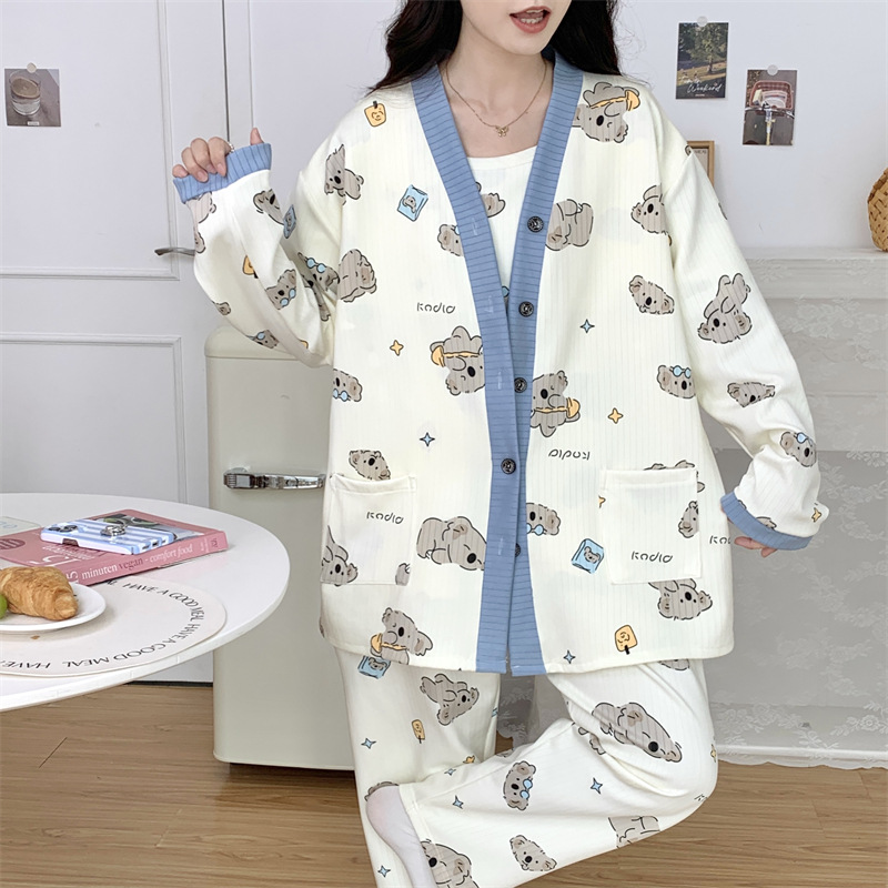 Комплект послеродовой одежды из трех предметов из воздушного хлопка, осенне-зимний стиль, для периода послеродового восстановления, пижама для беременных, одежда для сна для кормящих мам, одежда для беременных больших размеров.
