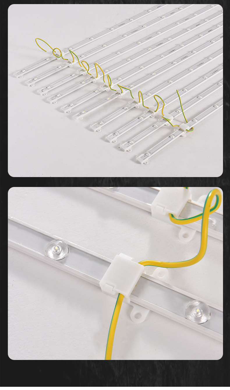 9、灯条的电线都是双排线,灯条之间线距是15CM,,室内款只合适户内使用;输入电压220V(如果安装在户外一定要做好防雨防水防雾防潮湿)