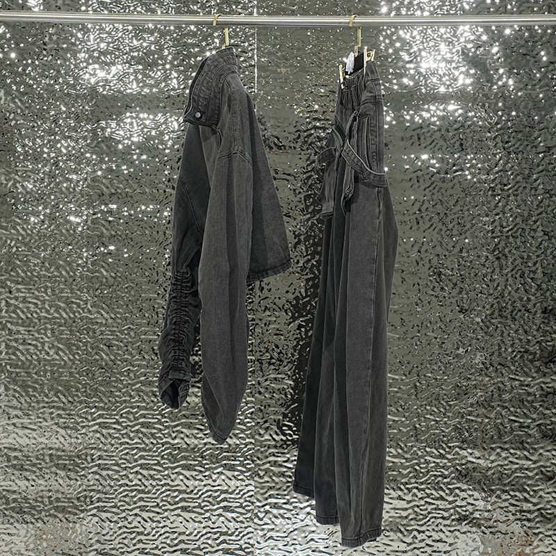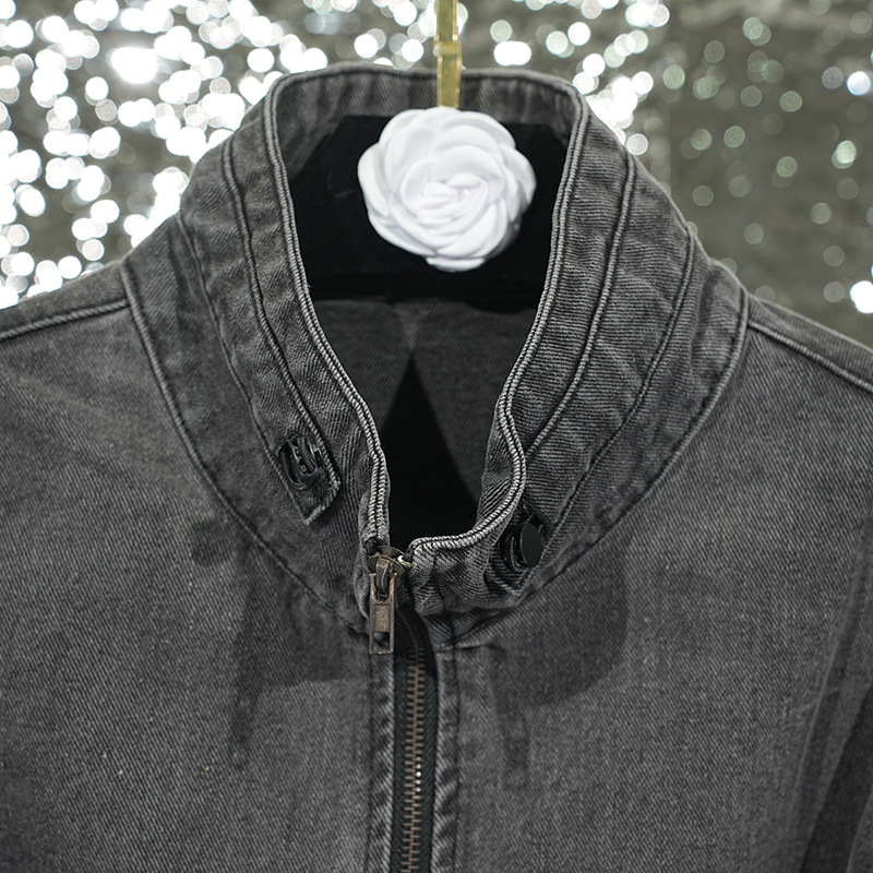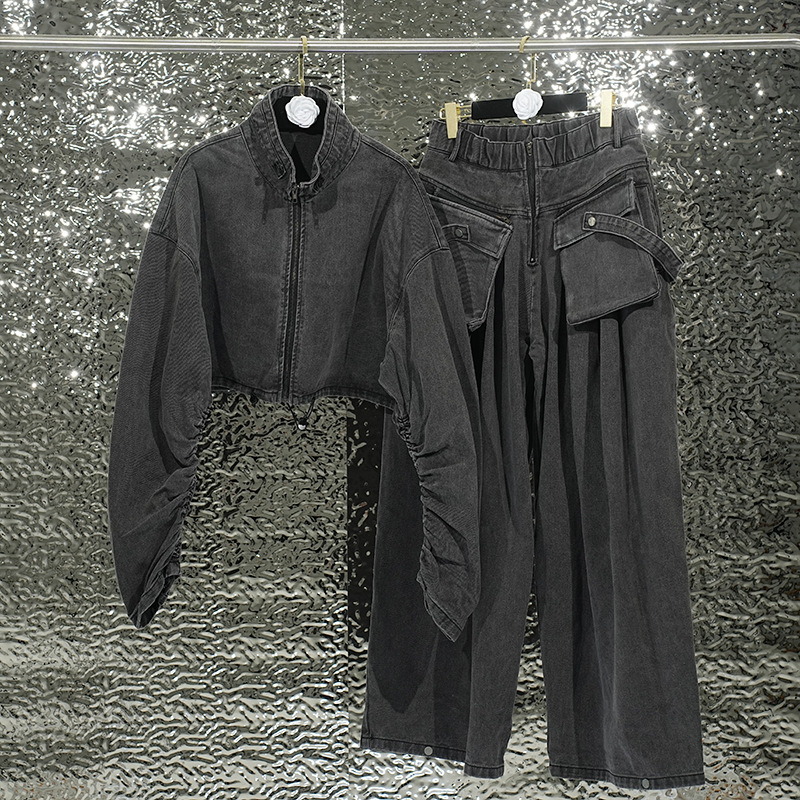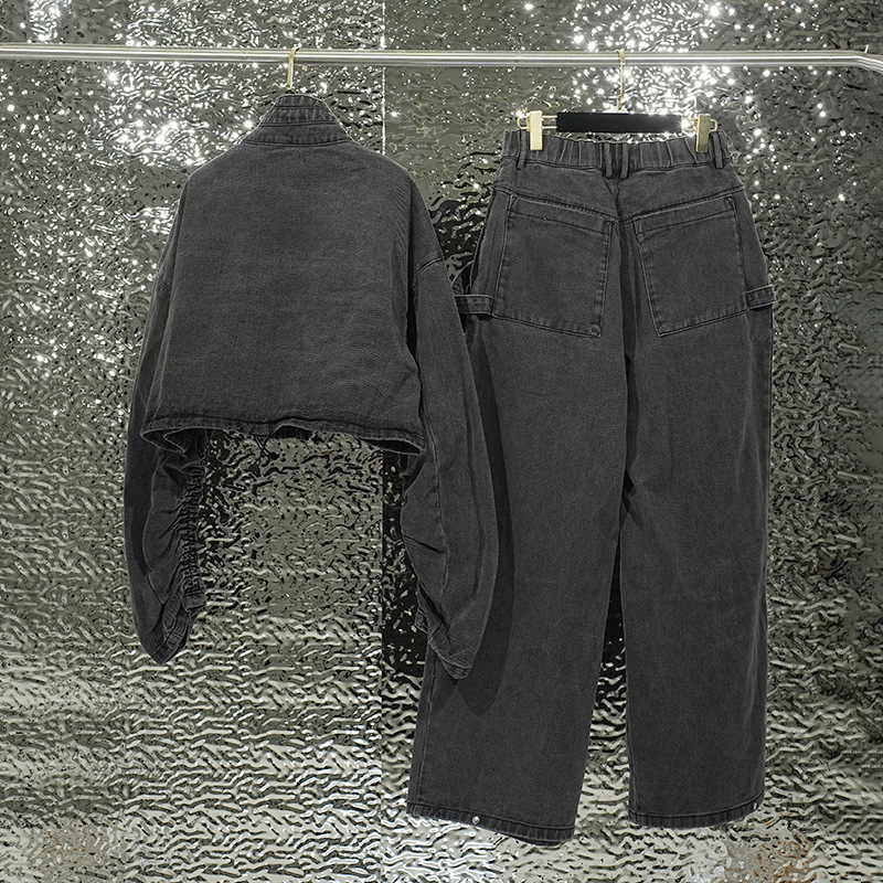 Женский костюм из плотного денима в уличном стиле, осенне-зимняя куртка с брюками прямого кроя, комплект из двух предметов, винтажная обработка.