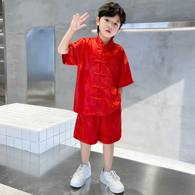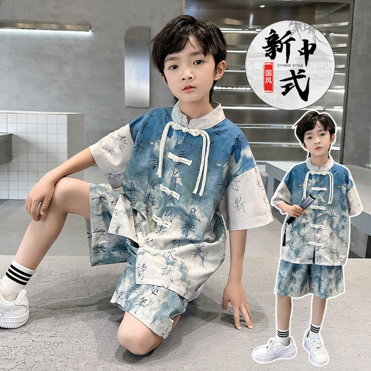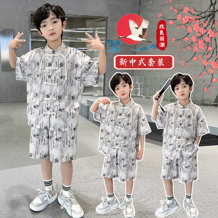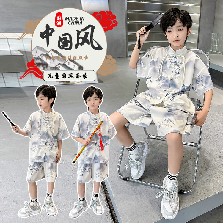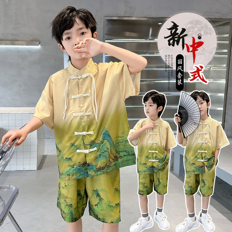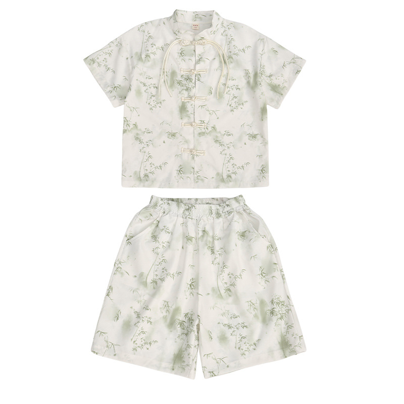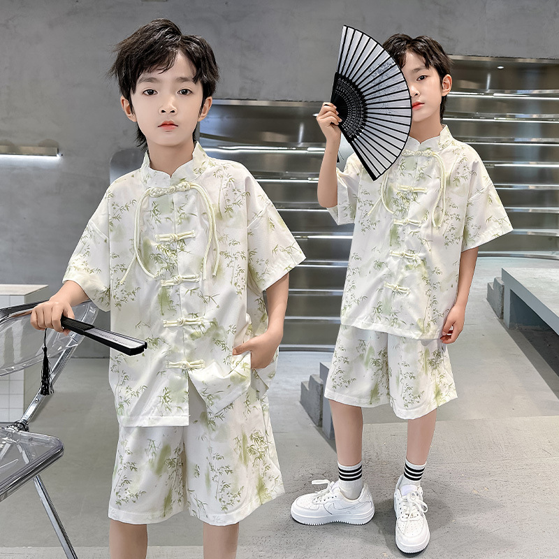 Hanfu Boy Лето 2025 Новый высококачественный национальный стиль зеленый бамбук с короткими рукавами