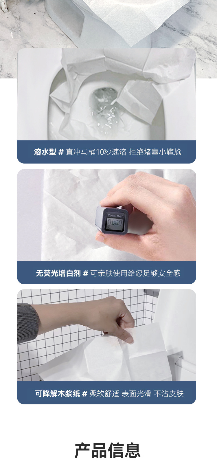 Водорастворимая одноразовая туалетная бумага в индивидуальной упаковке для путешествий, для сидений в скоростных поездах, оптовая продажа одноразовых салфеток для унитаза