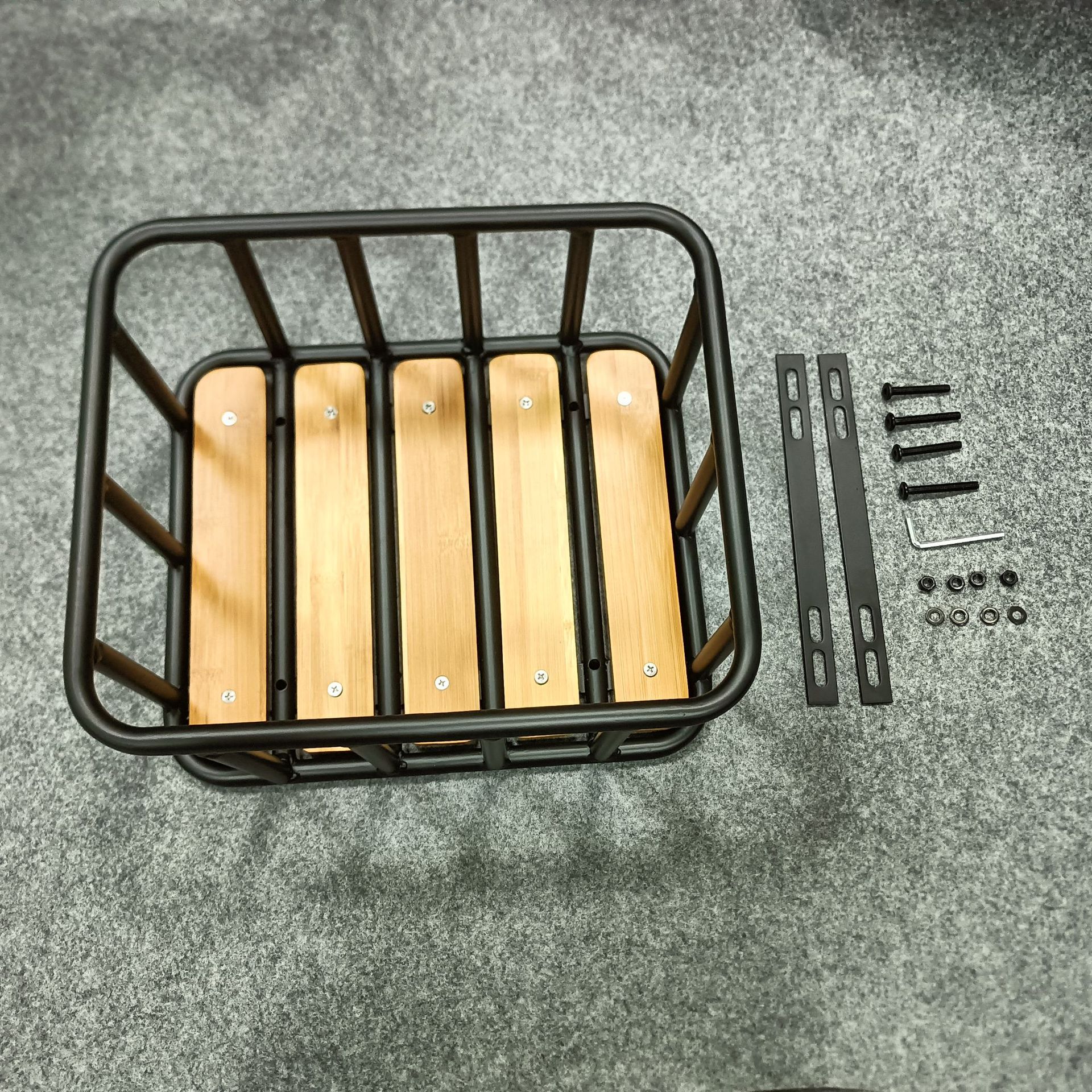 Корзина для велосипеда с бамбуковой доской, передняя корзина из кованого железа, передний багажник, передняя корзина с креплением на винты, производство на заказ