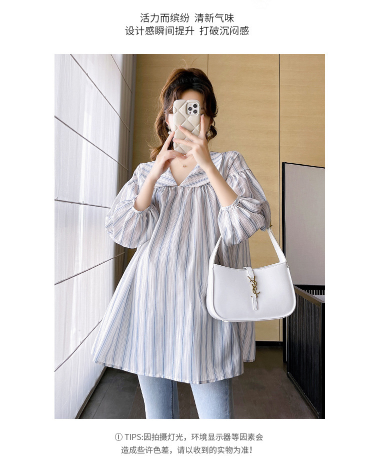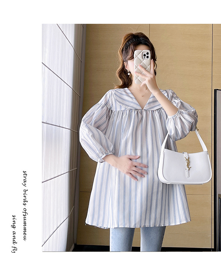 Рубашка для беременных весенняя мода тонкая и дикая повседневная кукольный воротник милый рукав с рукавами средней и длинной полосатой топ летом