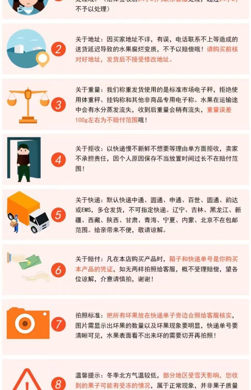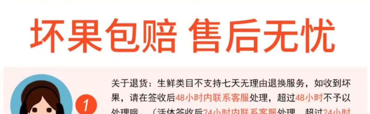 售后说明:生鲜产品请及时签收,签收24小时内,坏果烂果提供与面单合拍照片处理。未及时签收,或者签收24小时后不处理坏果烂果。