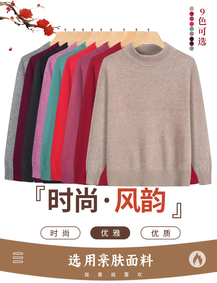 Трикотажный свитер с воротником-стойкой для пожилых женщин, осенне-зимняя одежда для мам и бабушек, базовая кофта для женщин среднего возраста от производителя