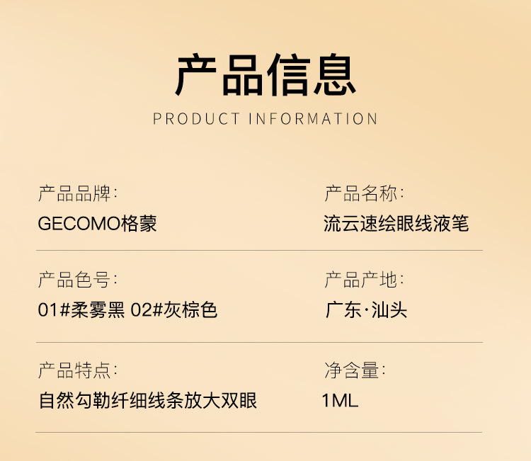 GECOMO Liuyun Quick Drawing Liquid Eyeliner Pen 01 Soft Mist Black