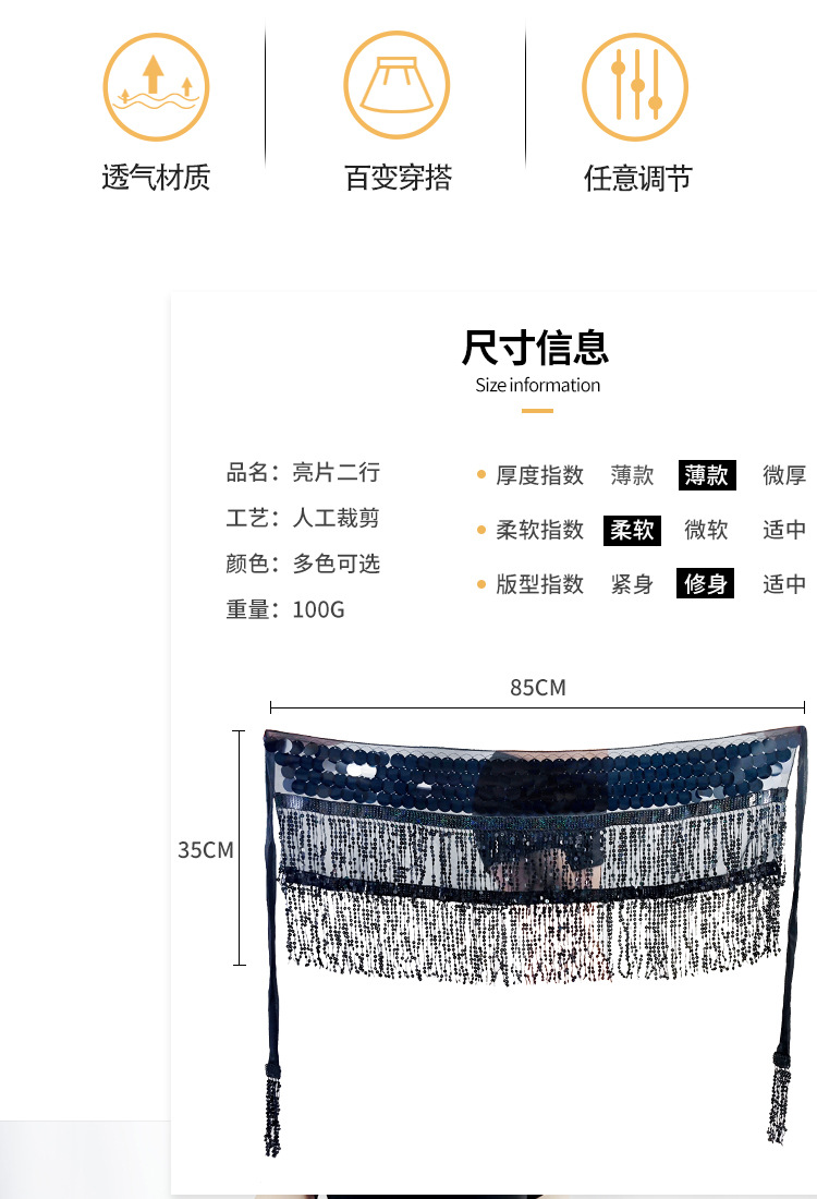 Трансграничные блестки для танца живота, талия, шарф
