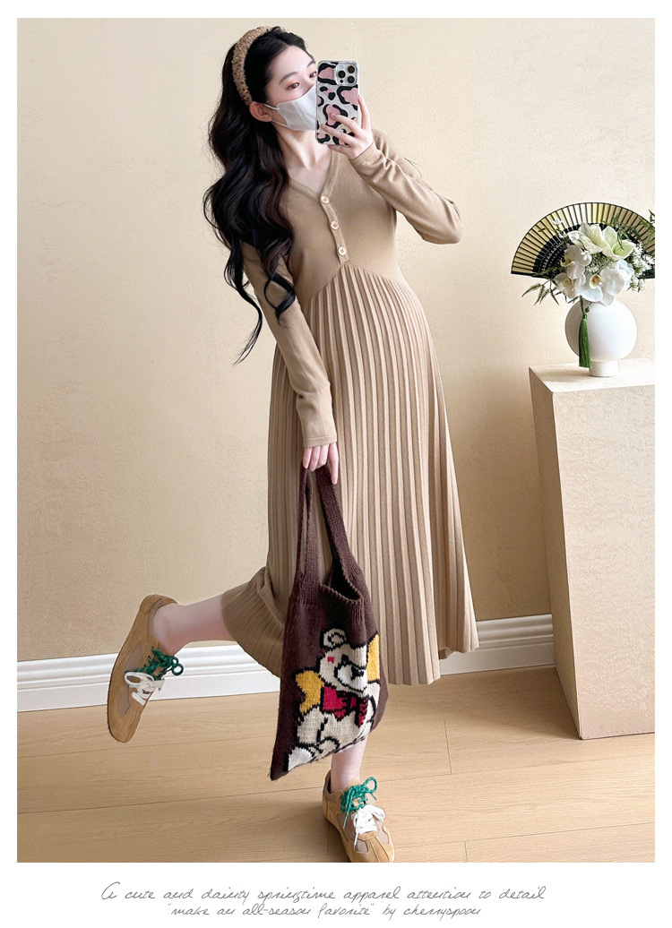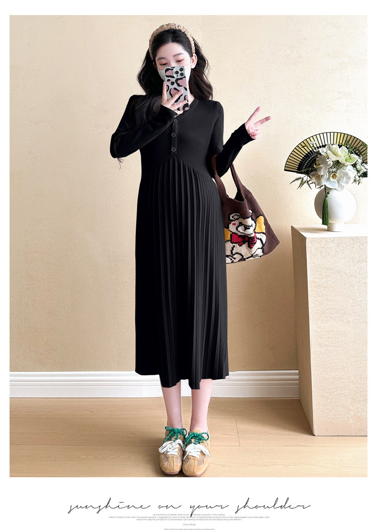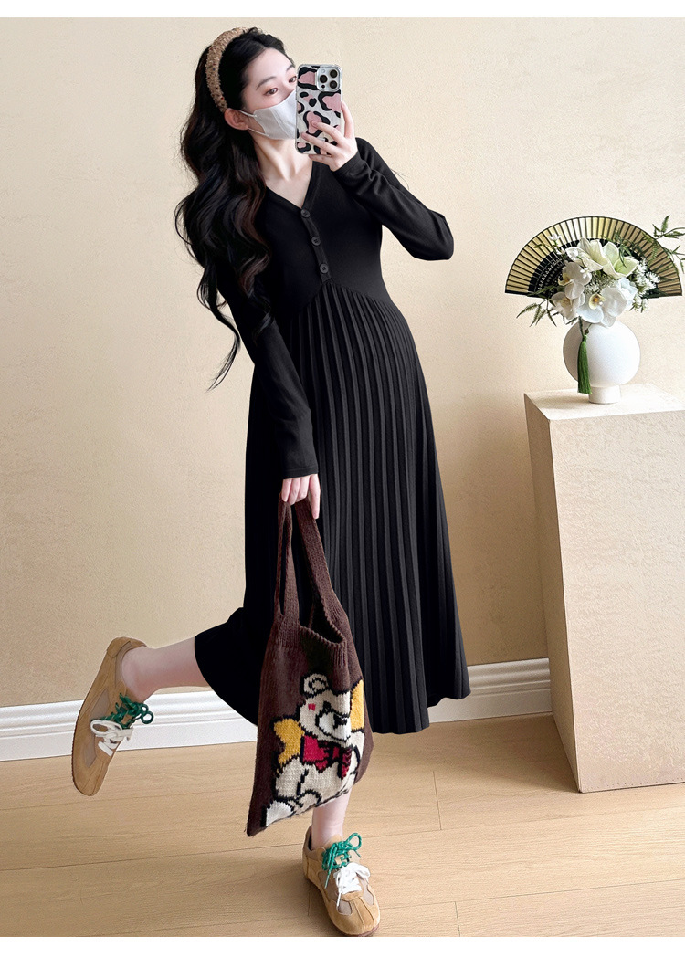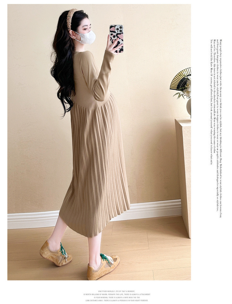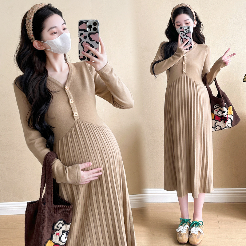 Вязаная юбка для беременных 2024 осень-зима новая корейская мода плиссированная темперамент тонкое кормящее нижнее платье