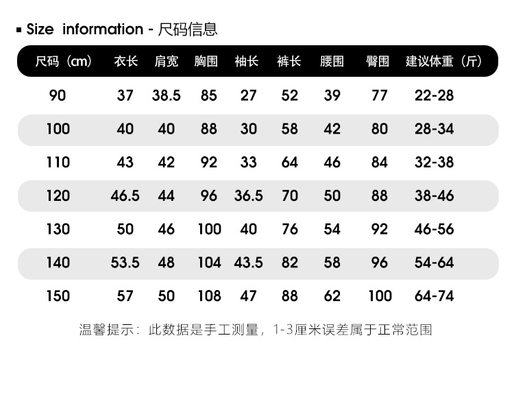 90cm; 100cm; 110cm; 120cm; 130cm; 140cm; 150cm