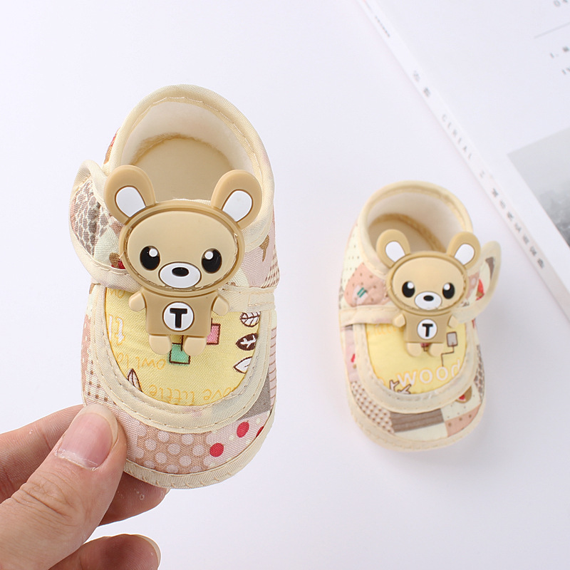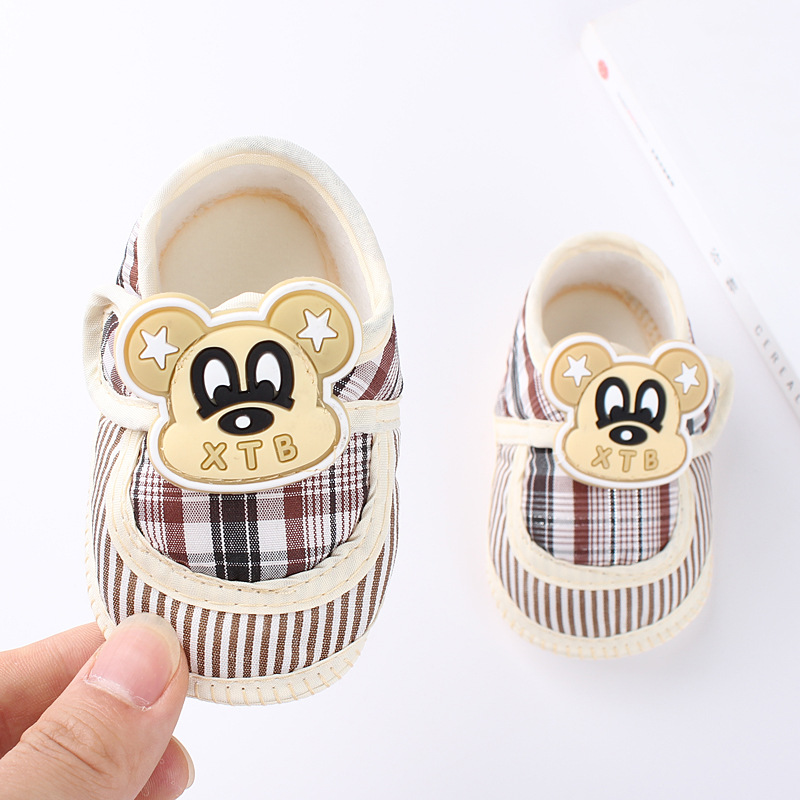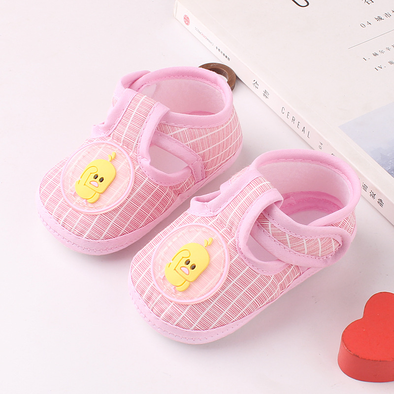鞋底是布底的,有防滑颗粒,可以防止宝宝在地板上滑倒。