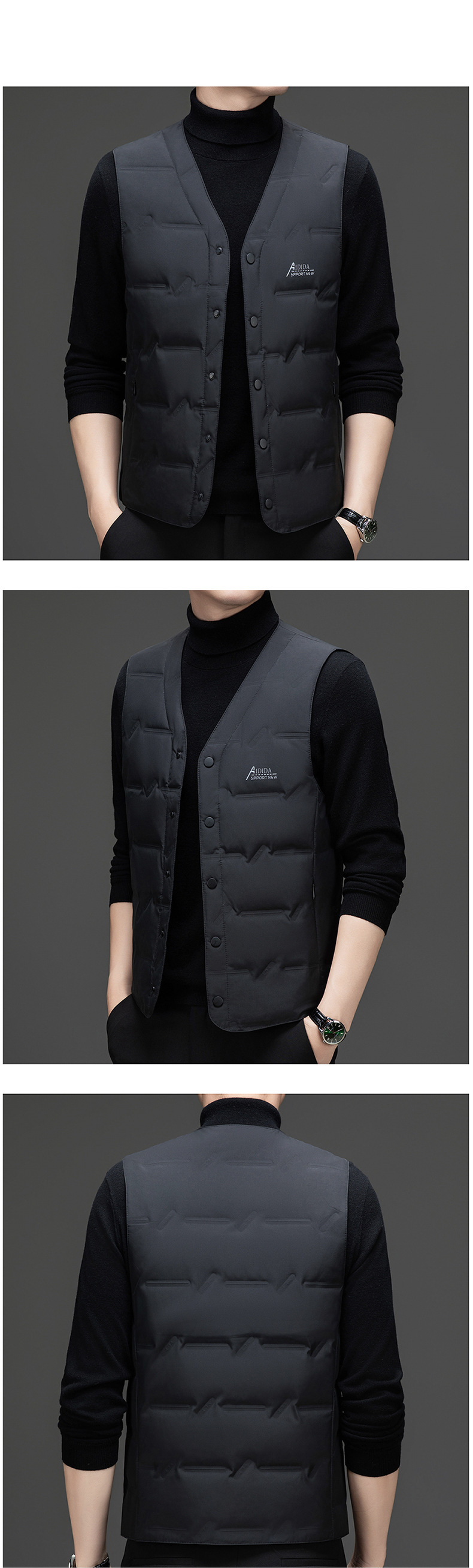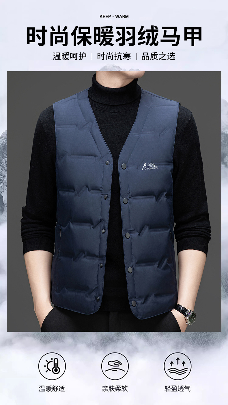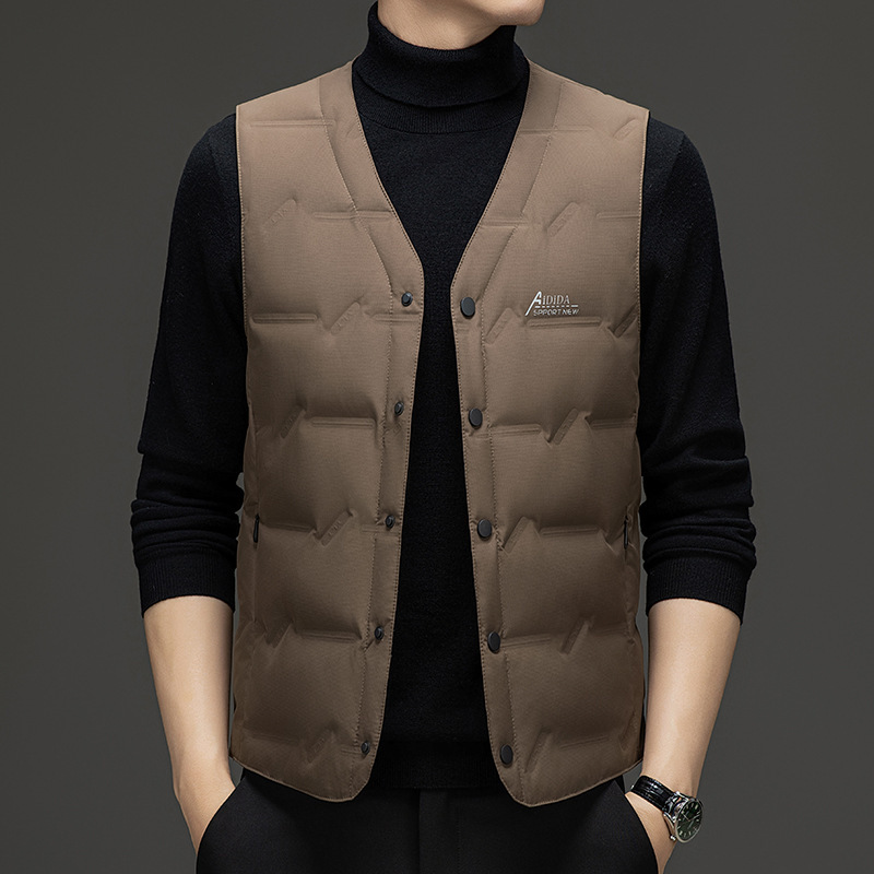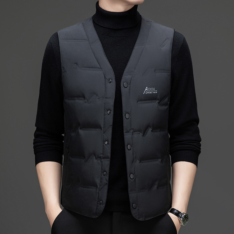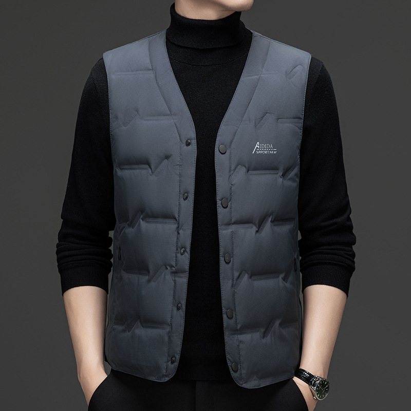 Мужской жилет 2024, зима, новый корейский стиль, модный v-образный вырез, белый жилет на утином пуху, без рукавов, утолщенный облегающий крой