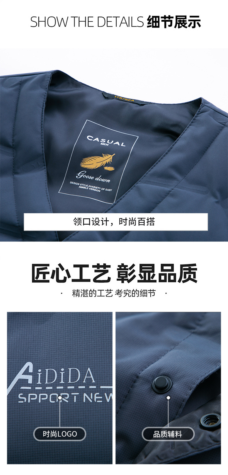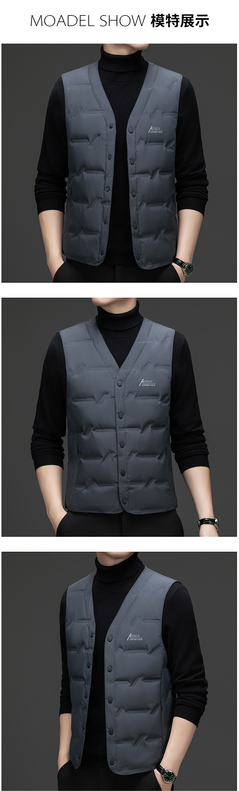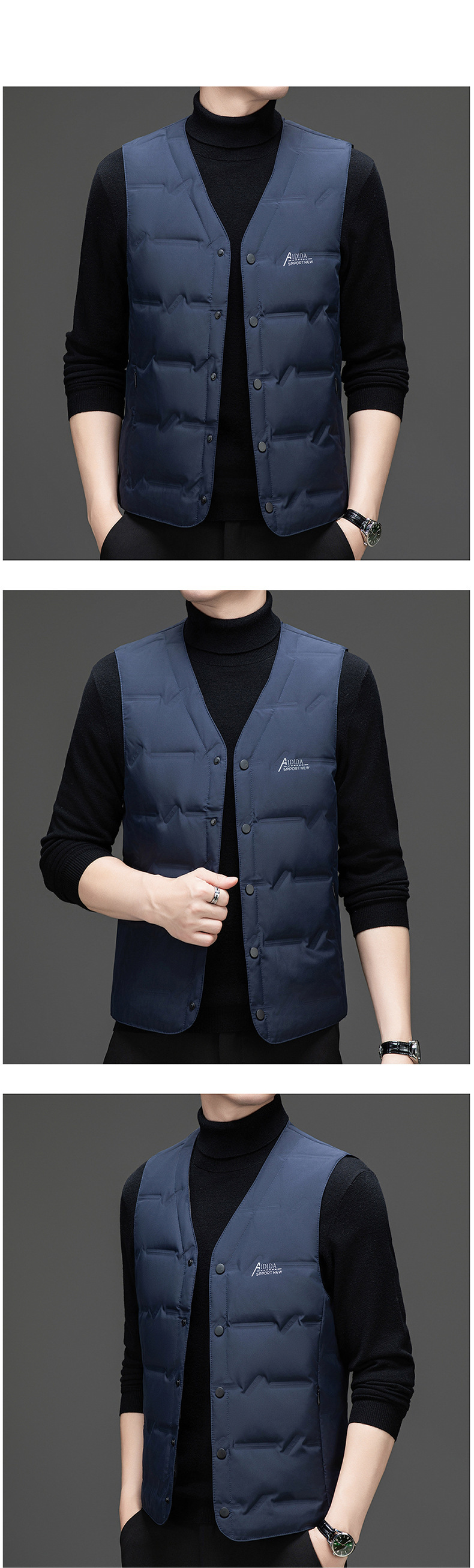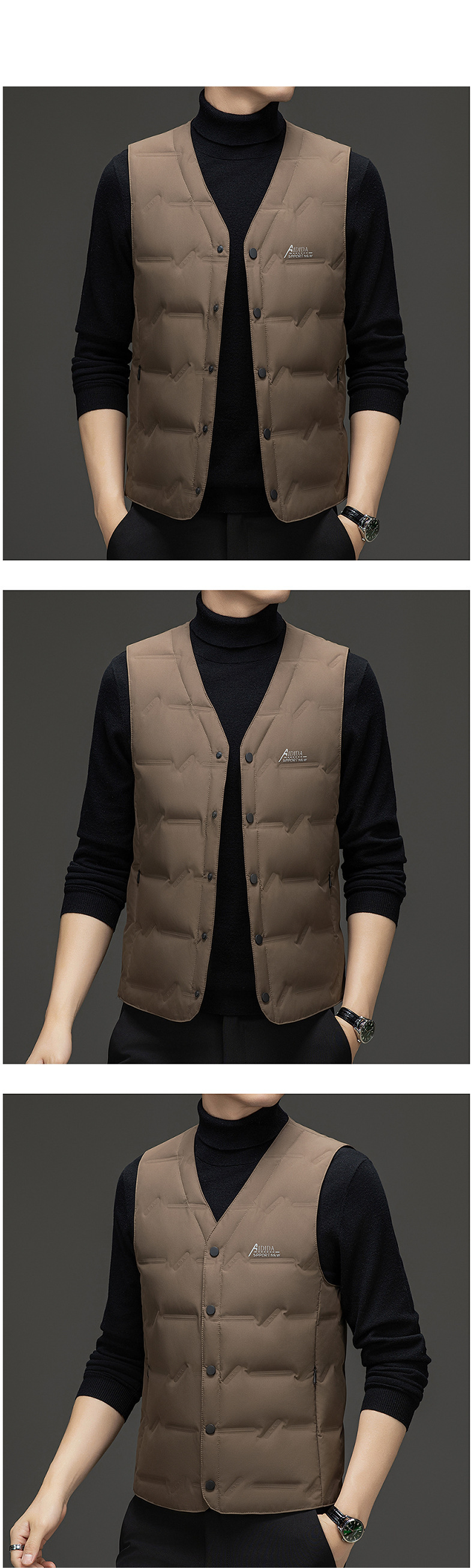 Мужской жилет 2024, зима, новый корейский стиль, модный v-образный вырез, белый жилет на утином пуху, без рукавов, утолщенный облегающий крой