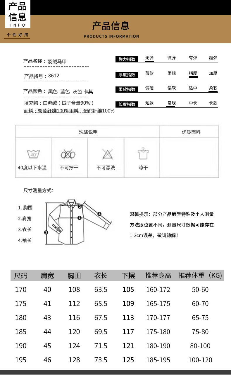 170/M; 175/L; 180/XL; 185/XXL; 190/3XL; 195/4XL