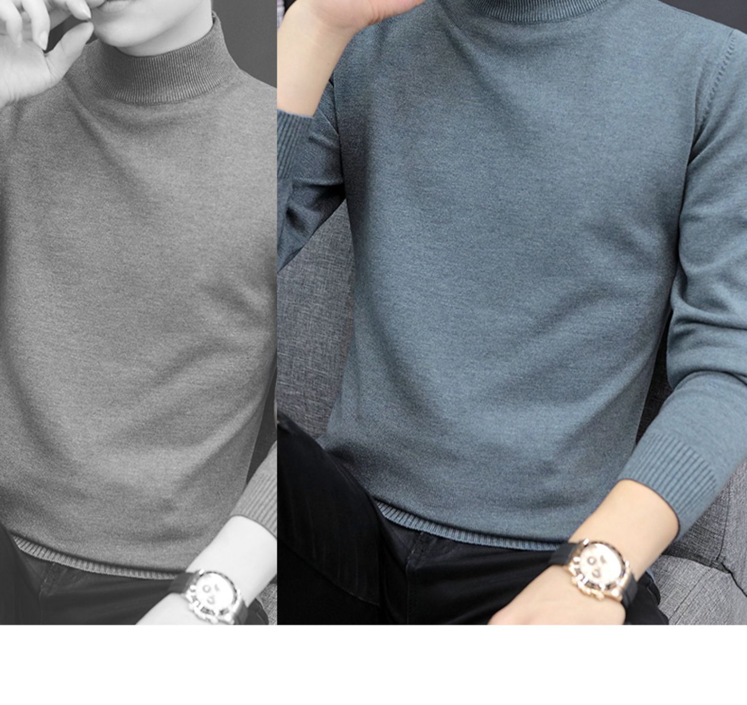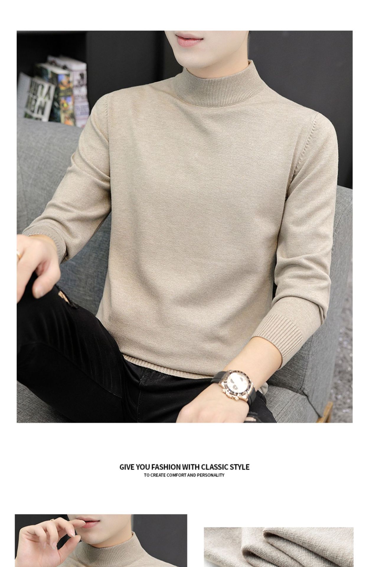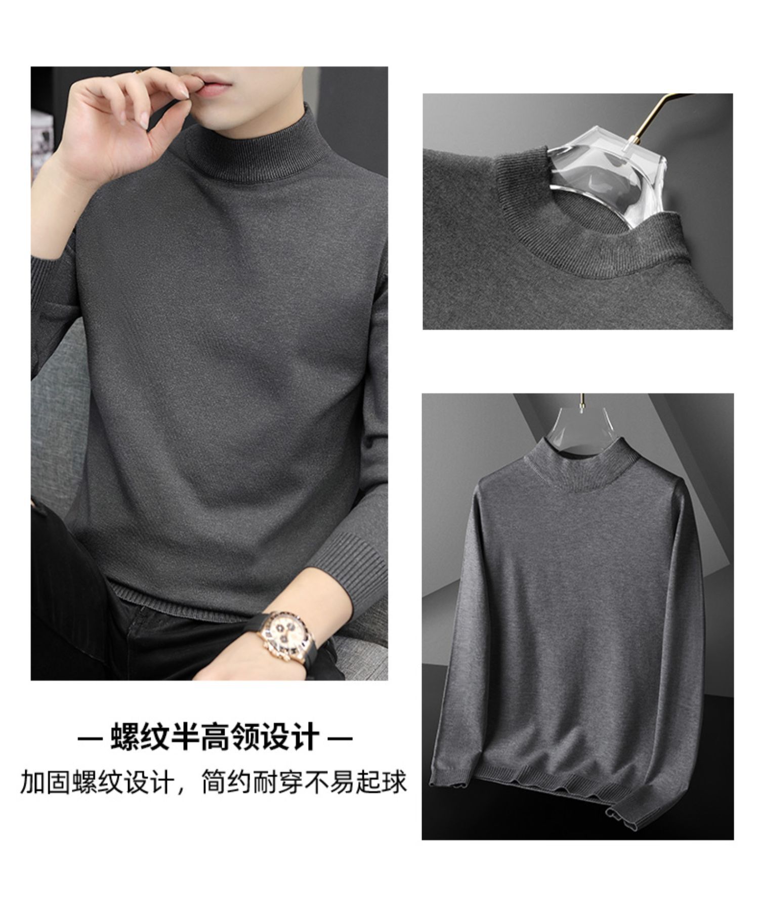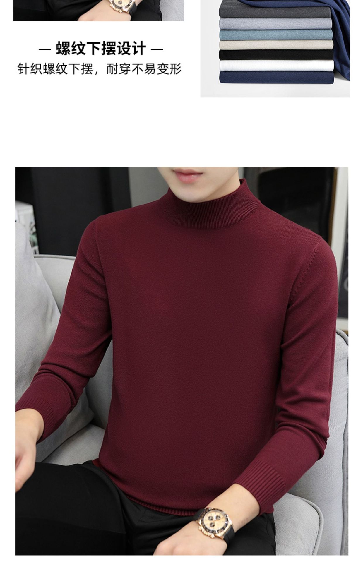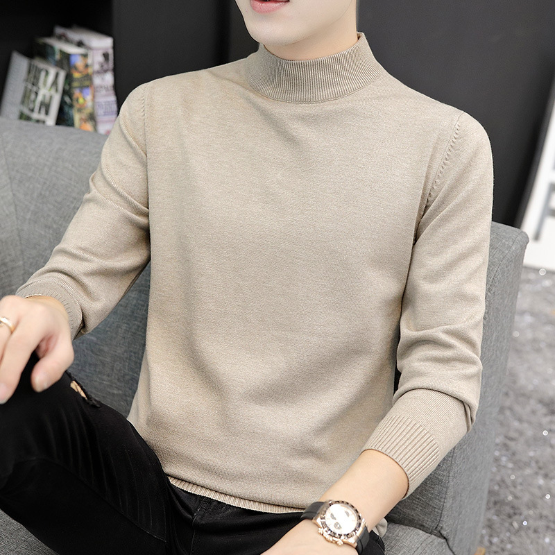 Мужской свитер с воротником-стойкой, вязаный топ для осени и зимы, базовая рубашка с высоким воротом, трикотаж с длинными рукавами, новая модель 2025 года.