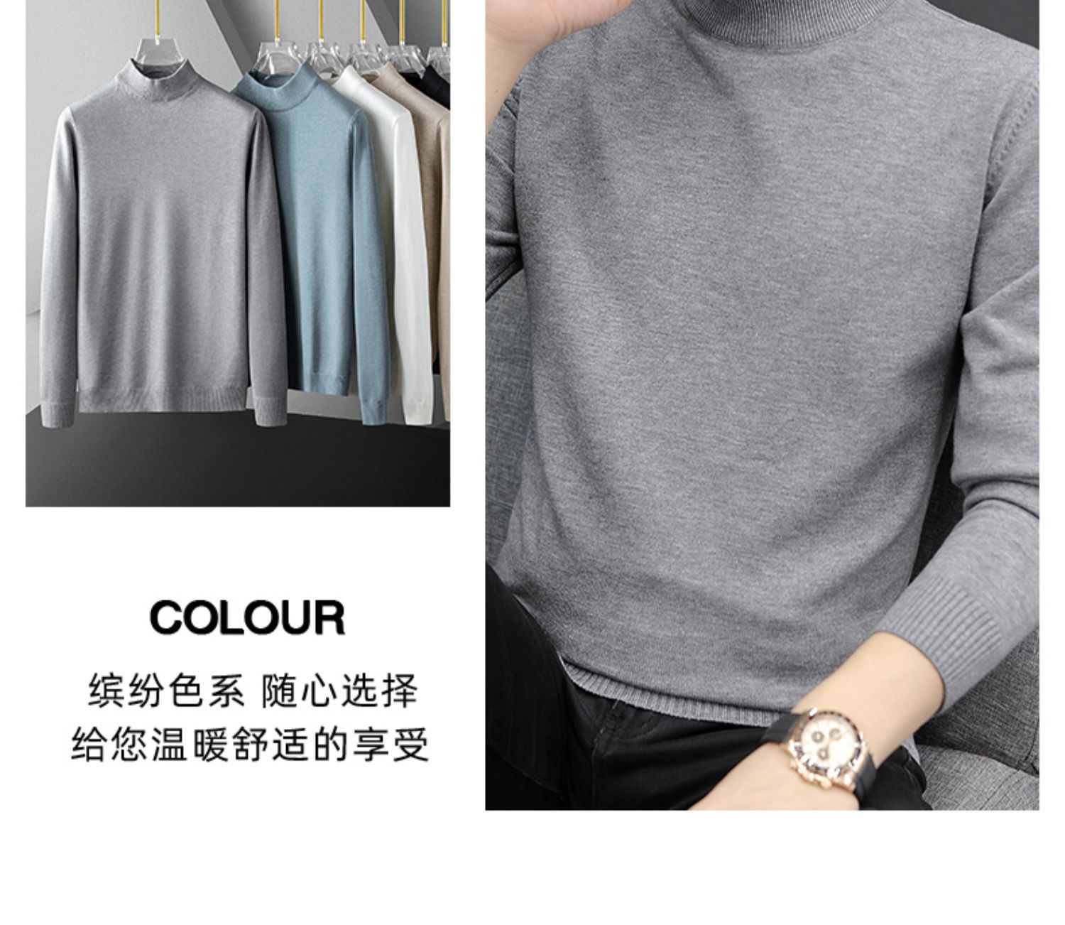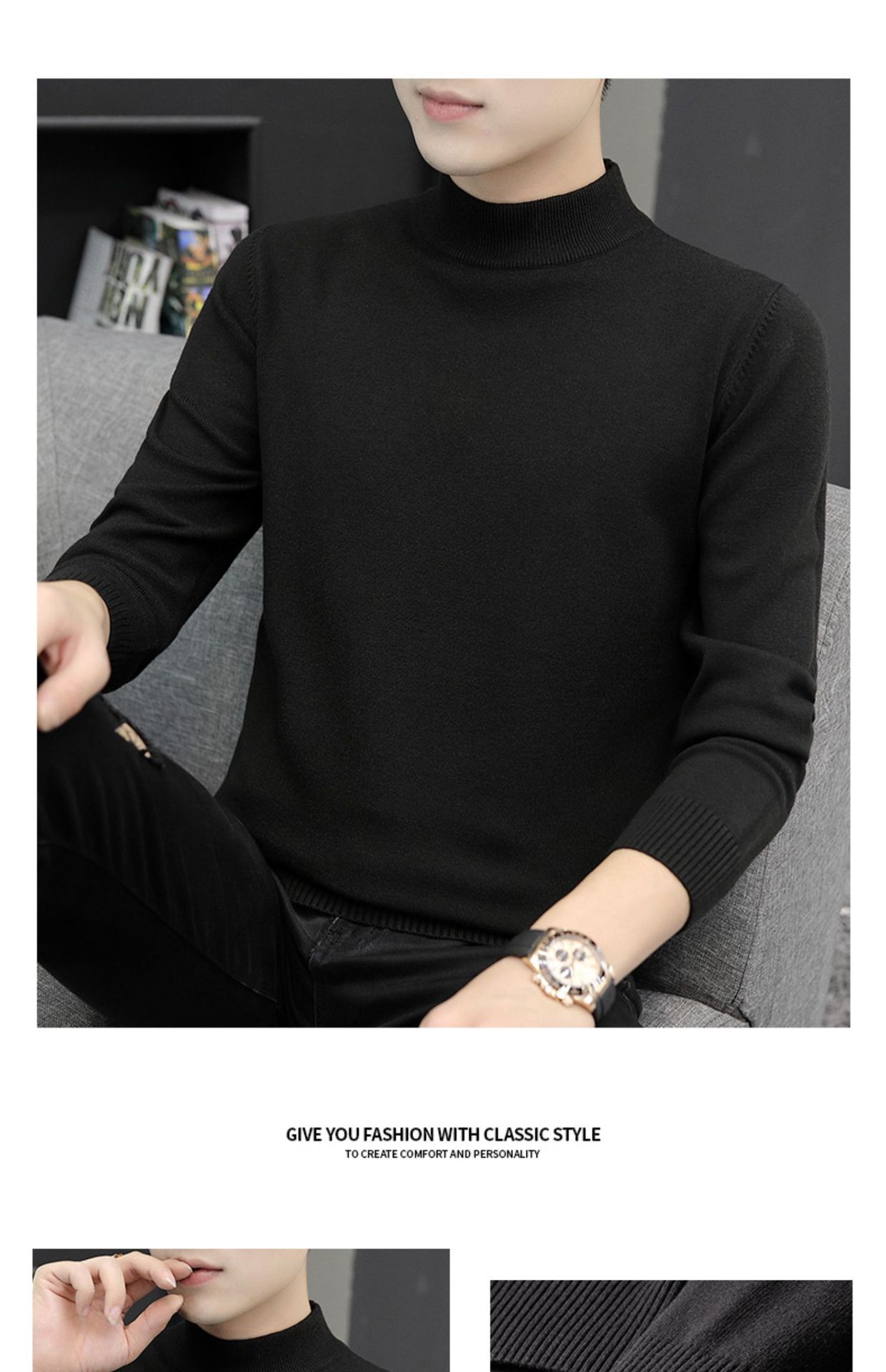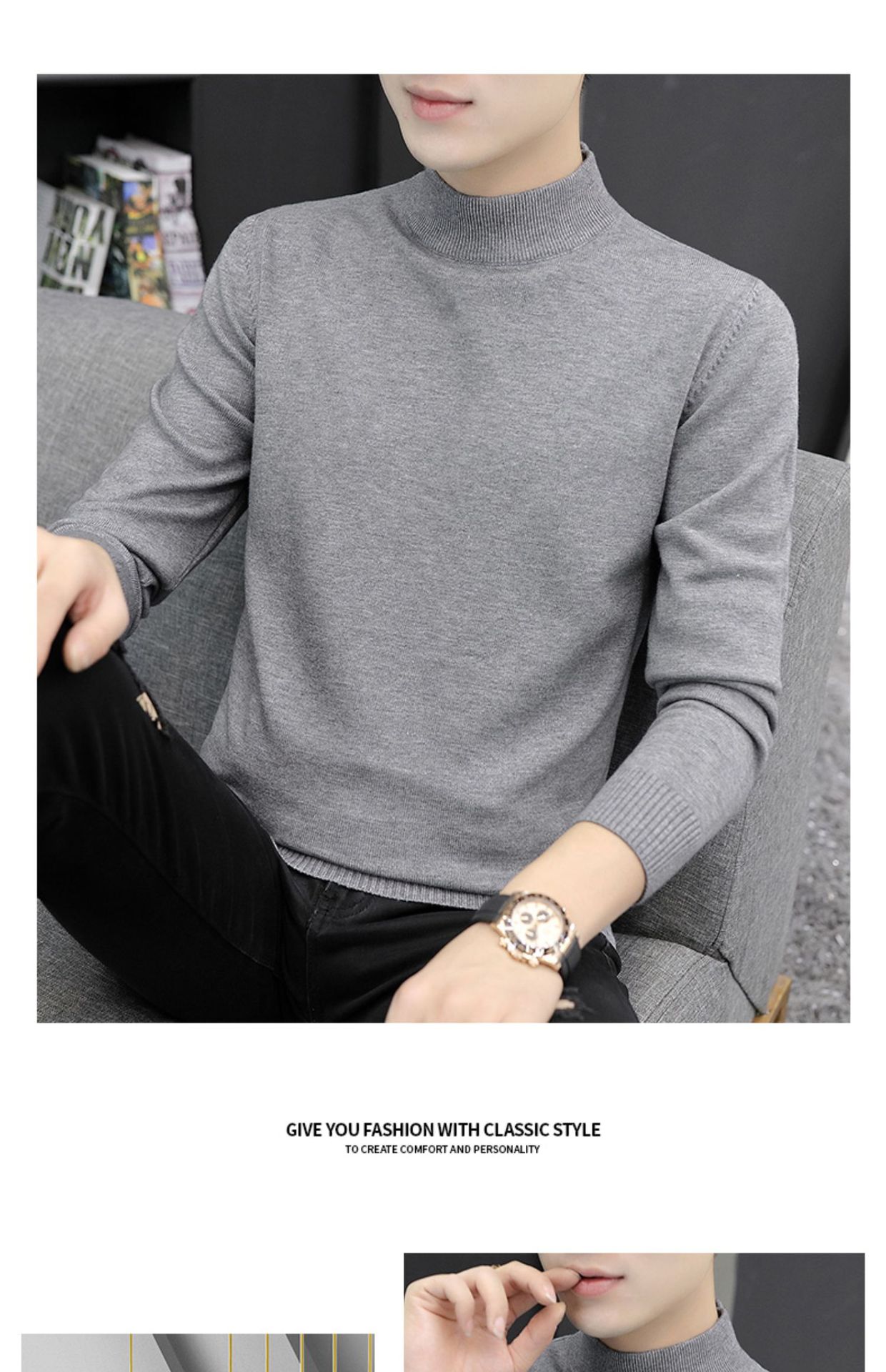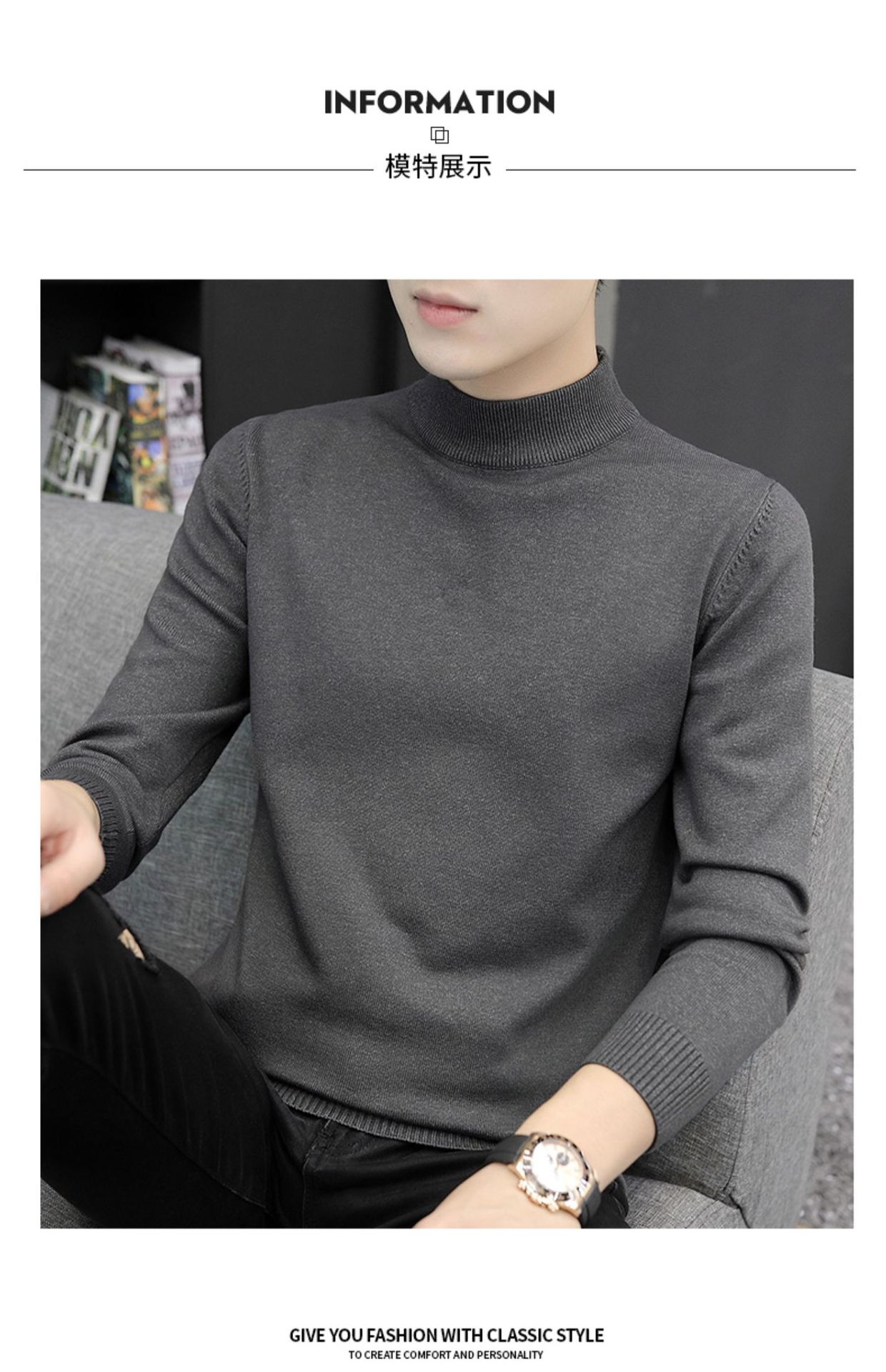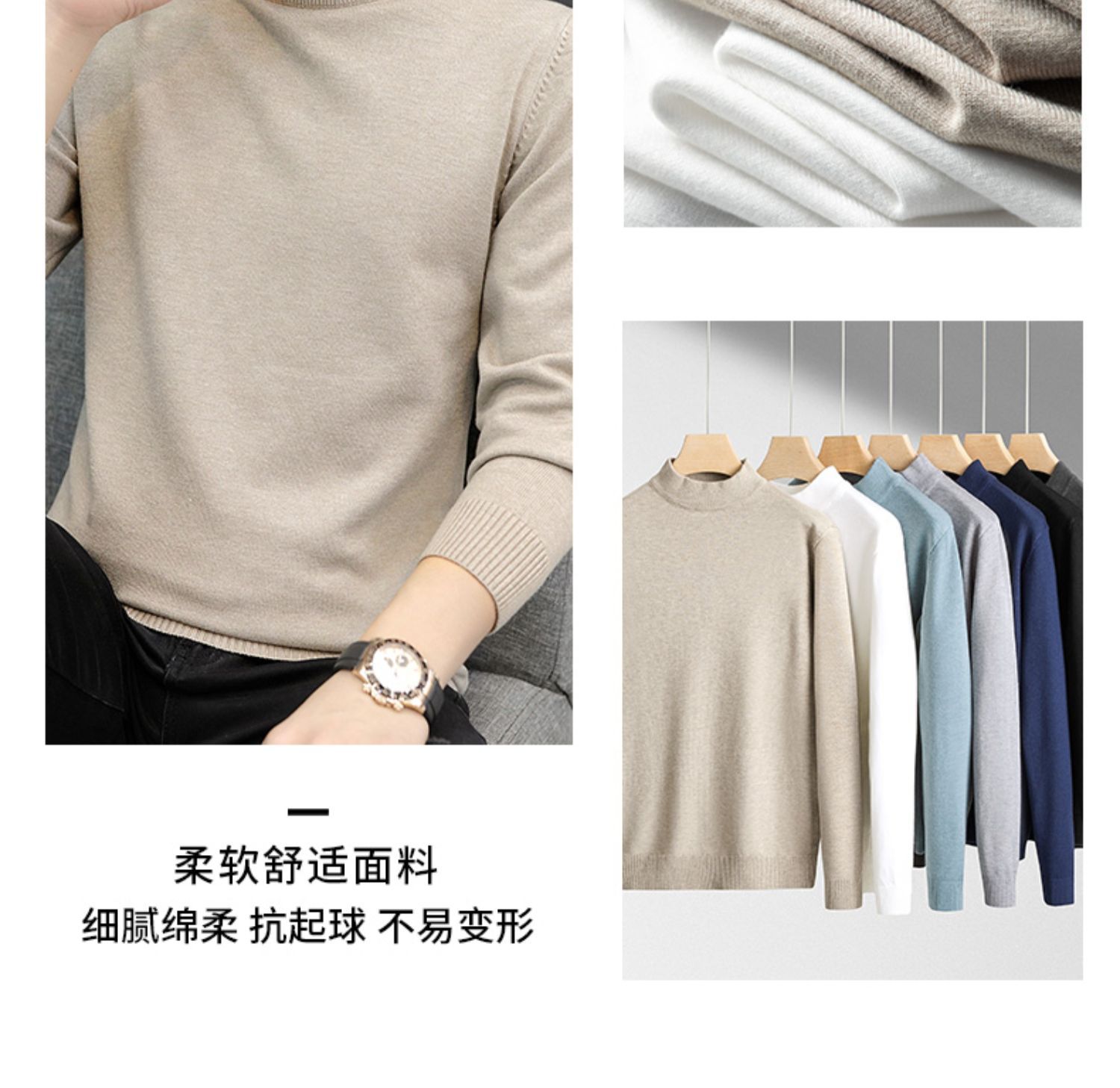 Мужской свитер с воротником-стойкой, вязаный топ для осени и зимы, базовая рубашка с высоким воротом, трикотаж с длинными рукавами, новая модель 2025 года.