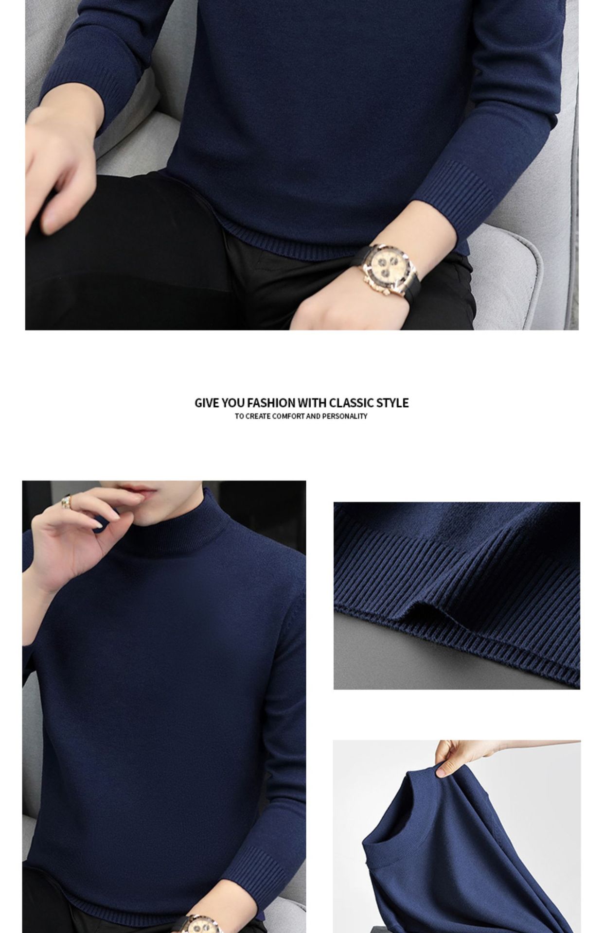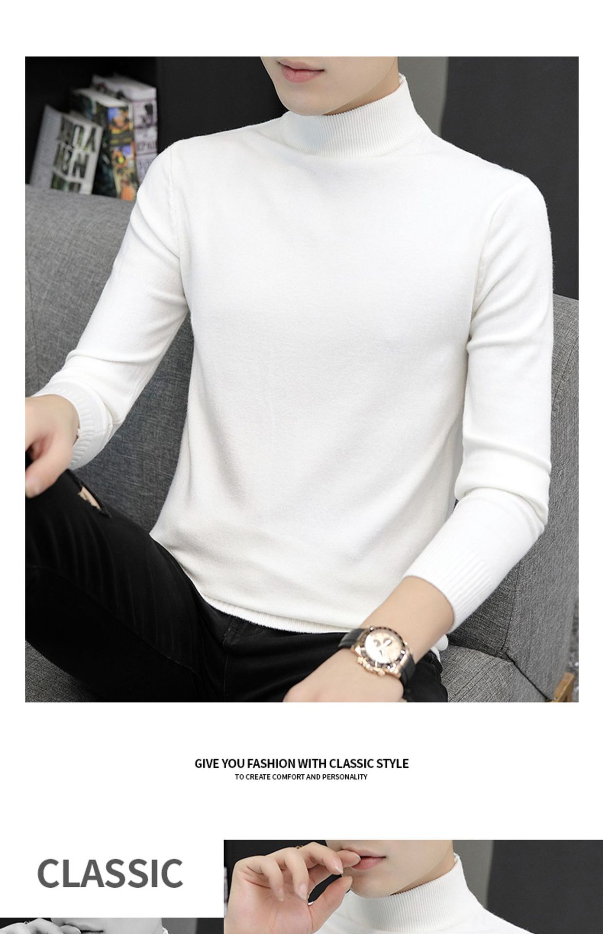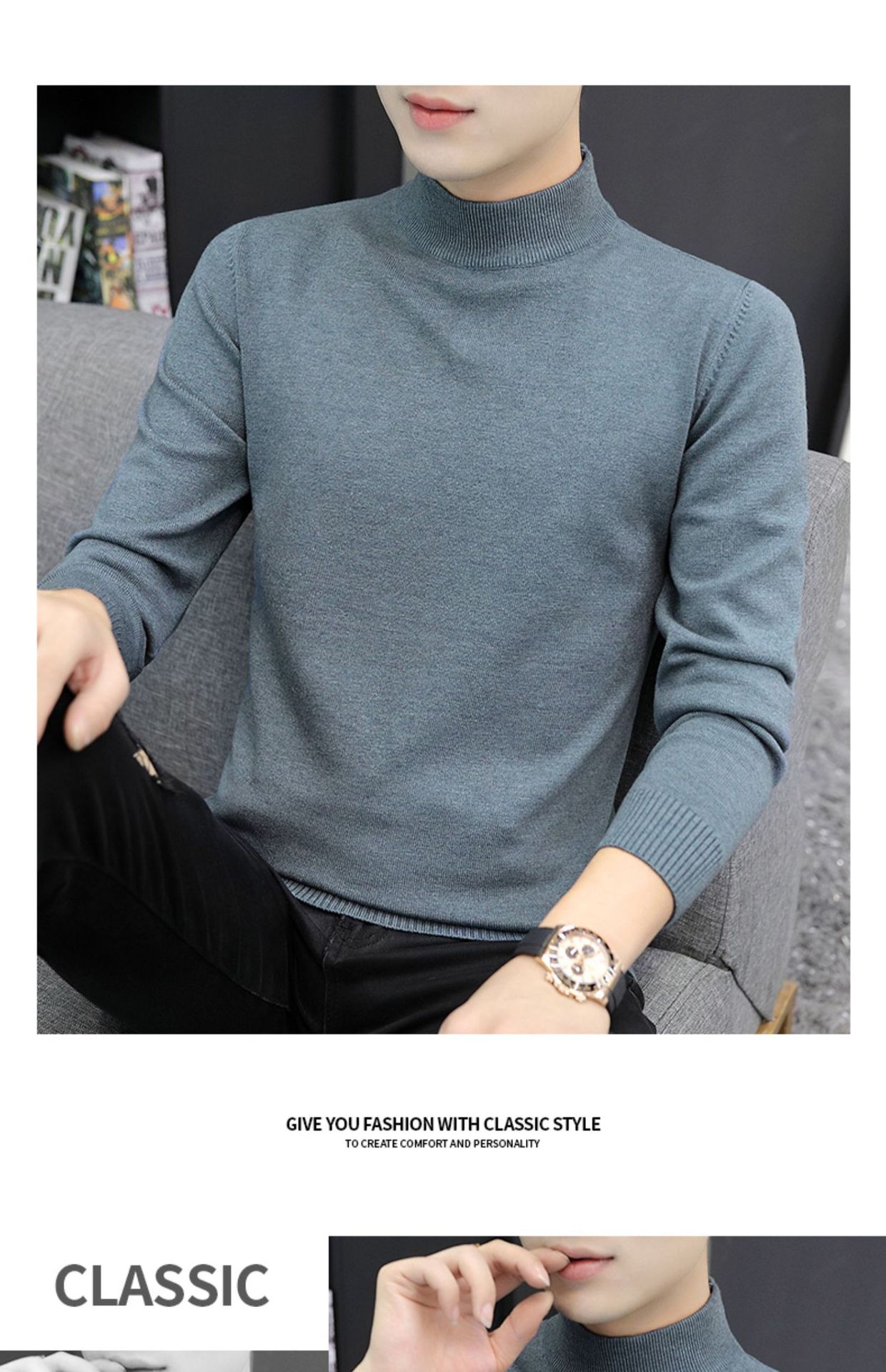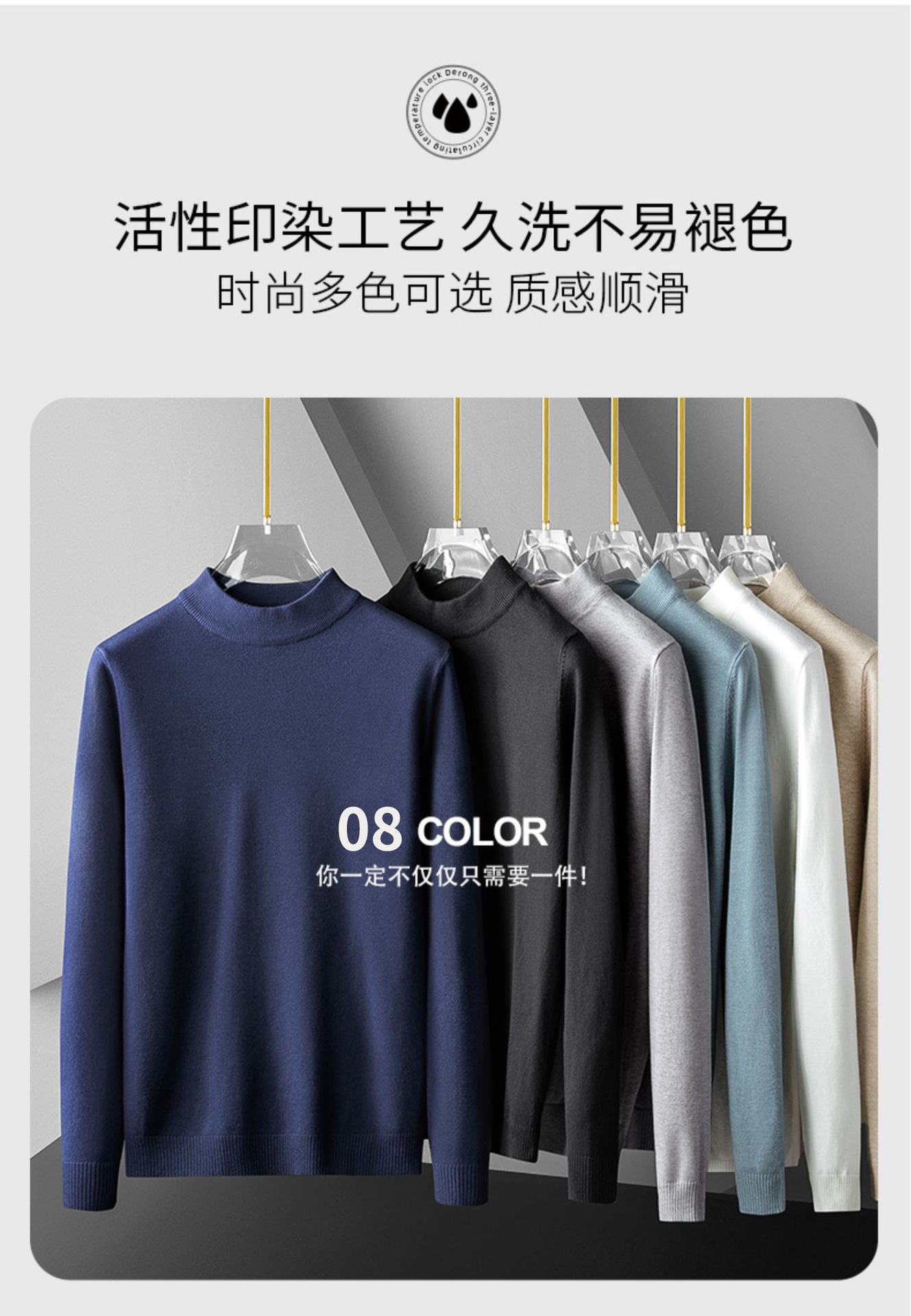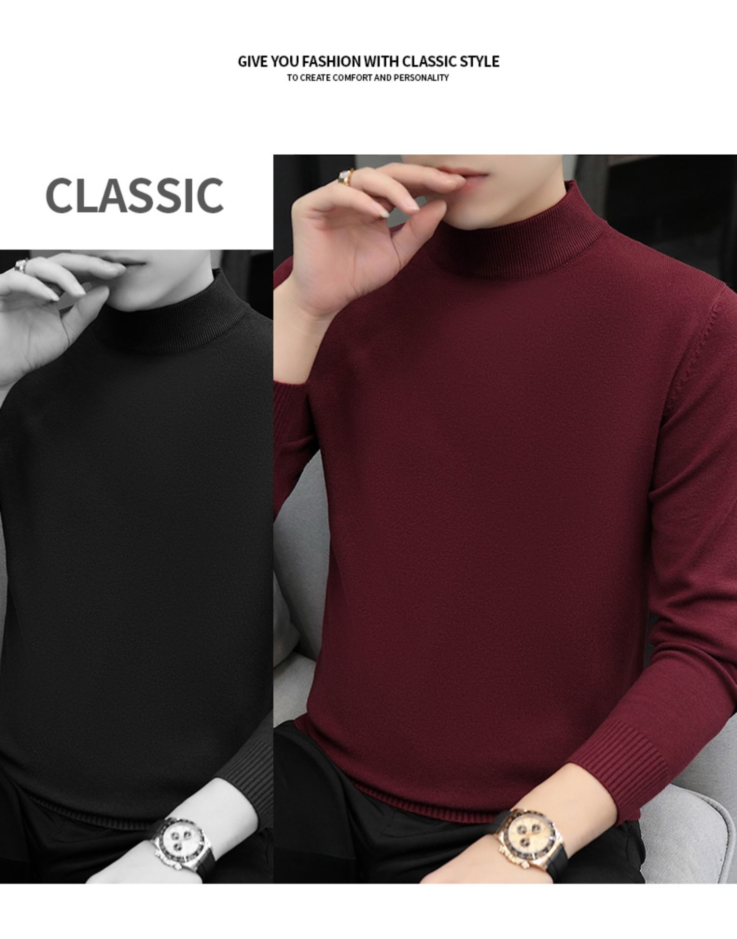Мужской свитер с воротником-стойкой, вязаный топ для осени и зимы, базовая рубашка с высоким воротом, трикотаж с длинными рукавами, новая модель 2025 года.