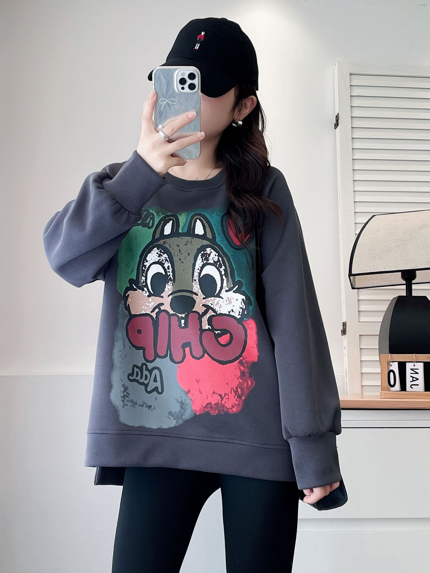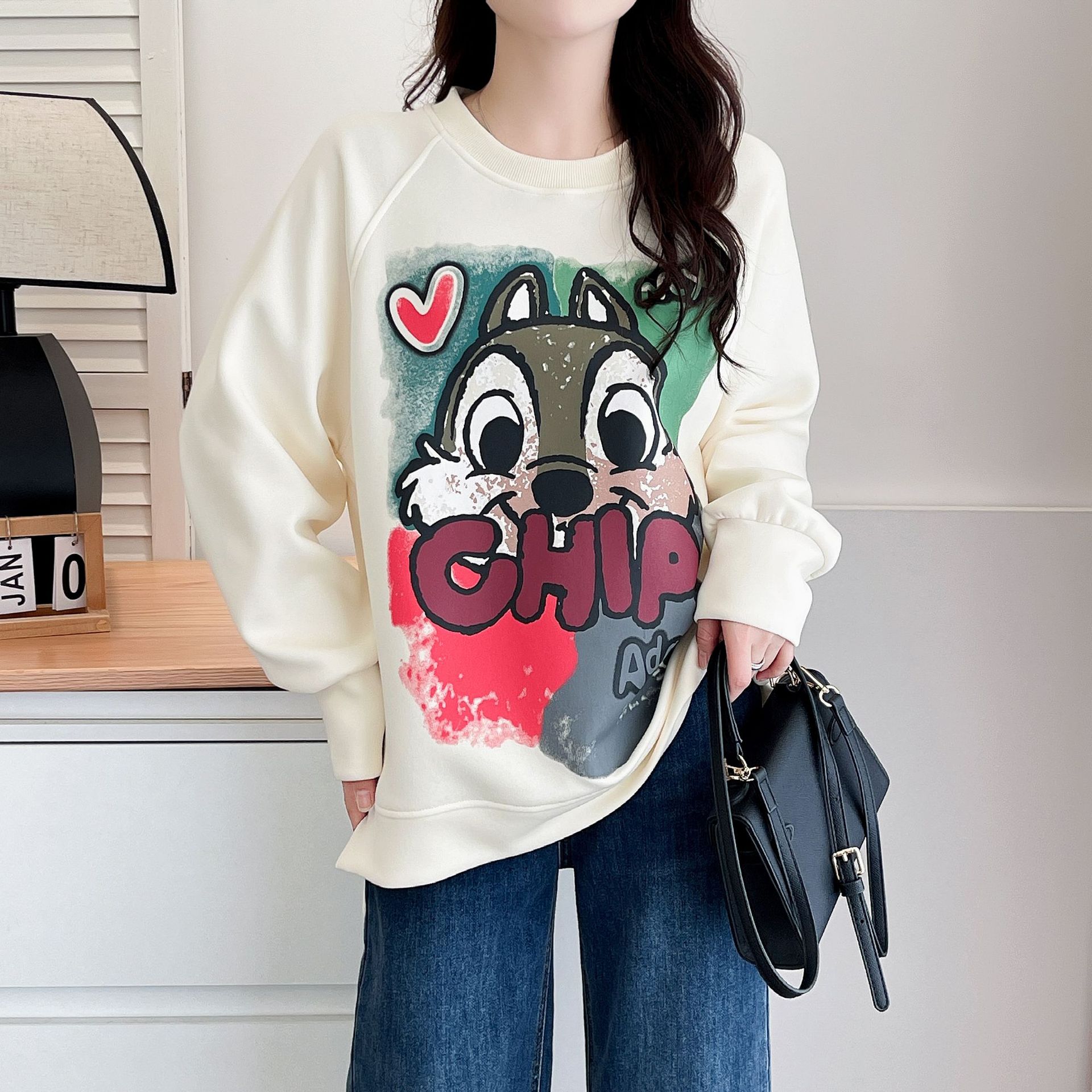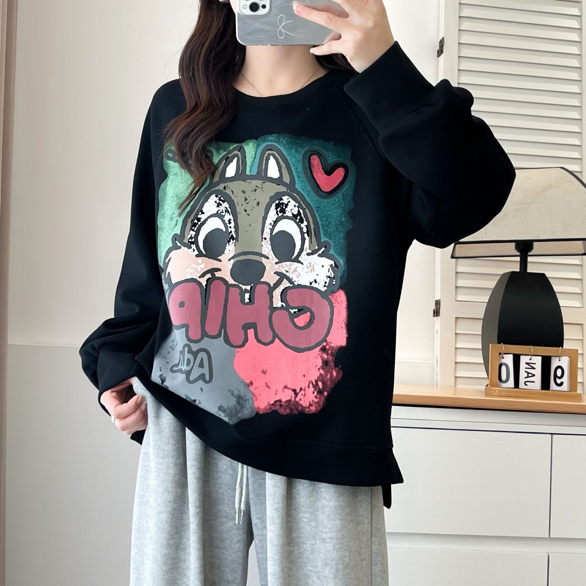 Новые женские топы больших размеров для полных девушек, омолаживающие и стройнящие, свитшот с круглым вырезом и мультяшным принтом 8990 # 2571