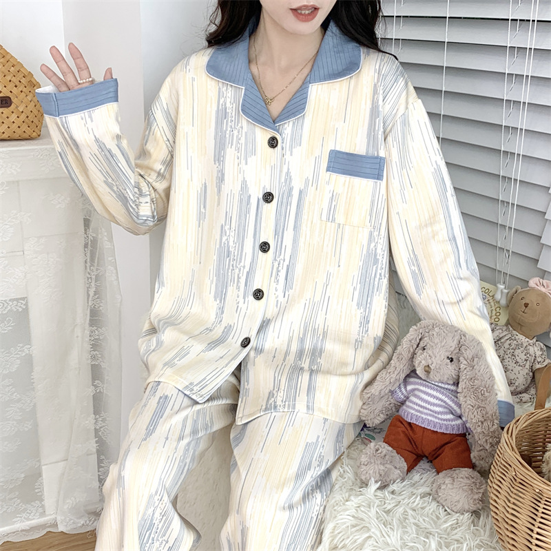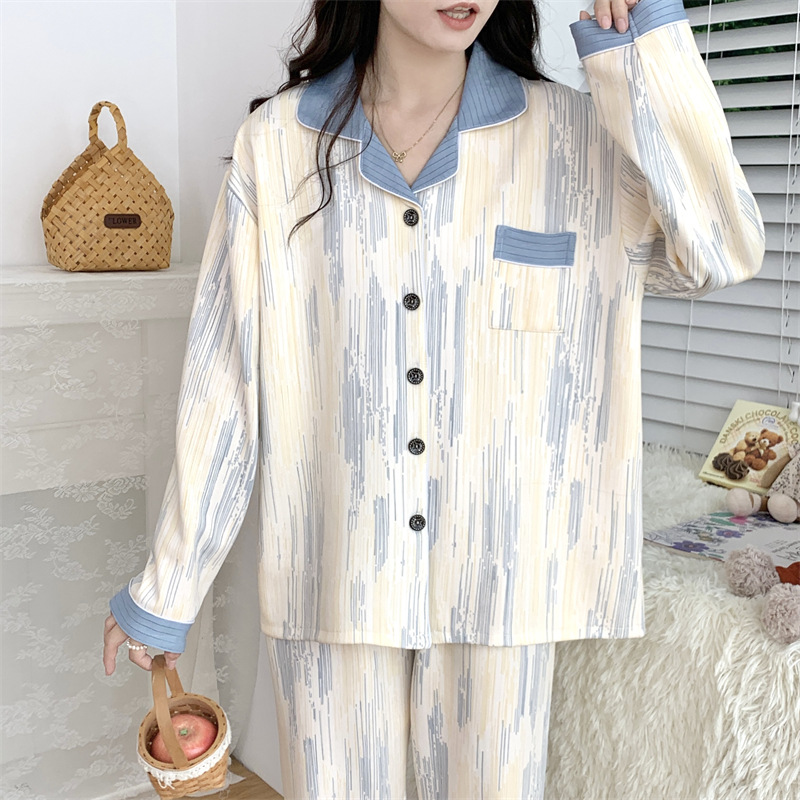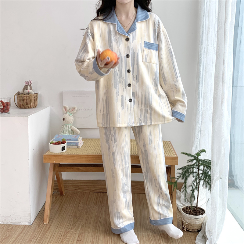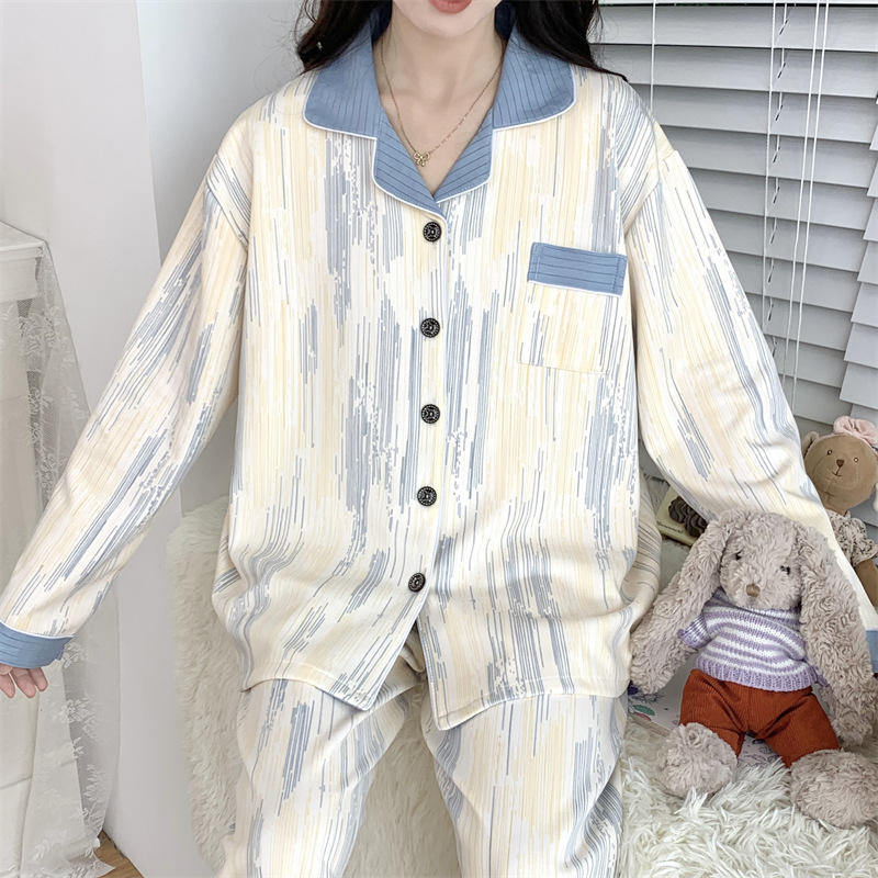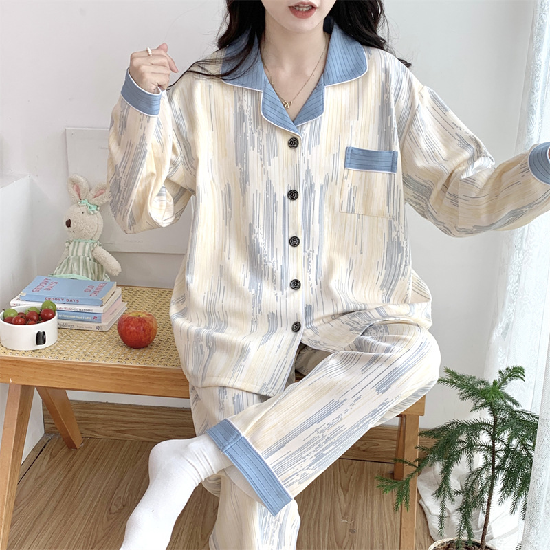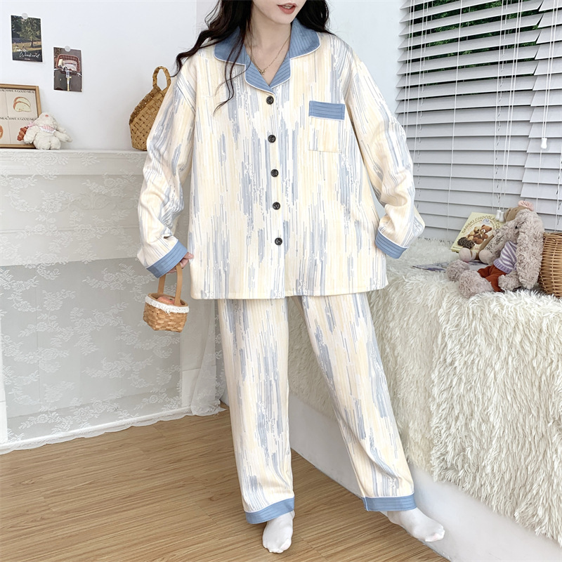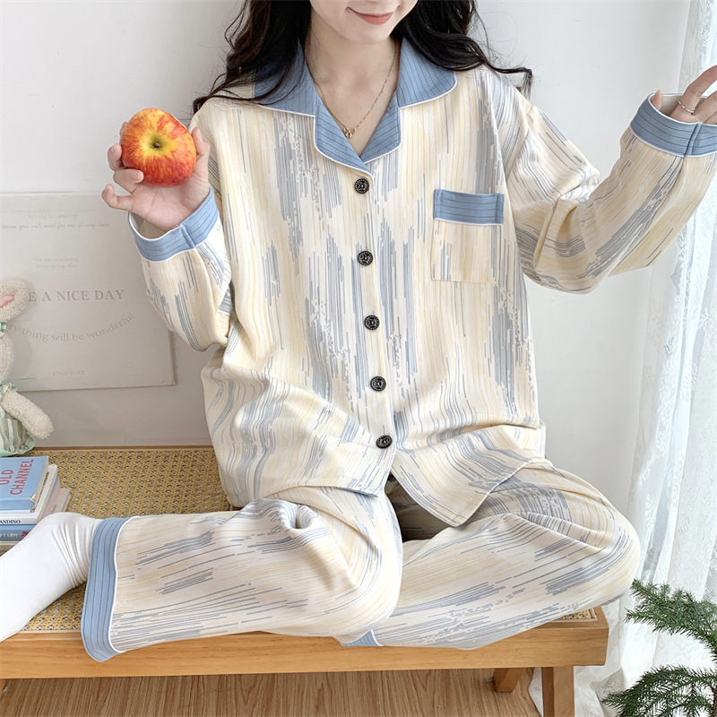 Большой размер 300 кг лунный костюм летом тонкая беременная послеродовая пижама женская одежда для кормления грудью Весенний и осенний набор 23050-6