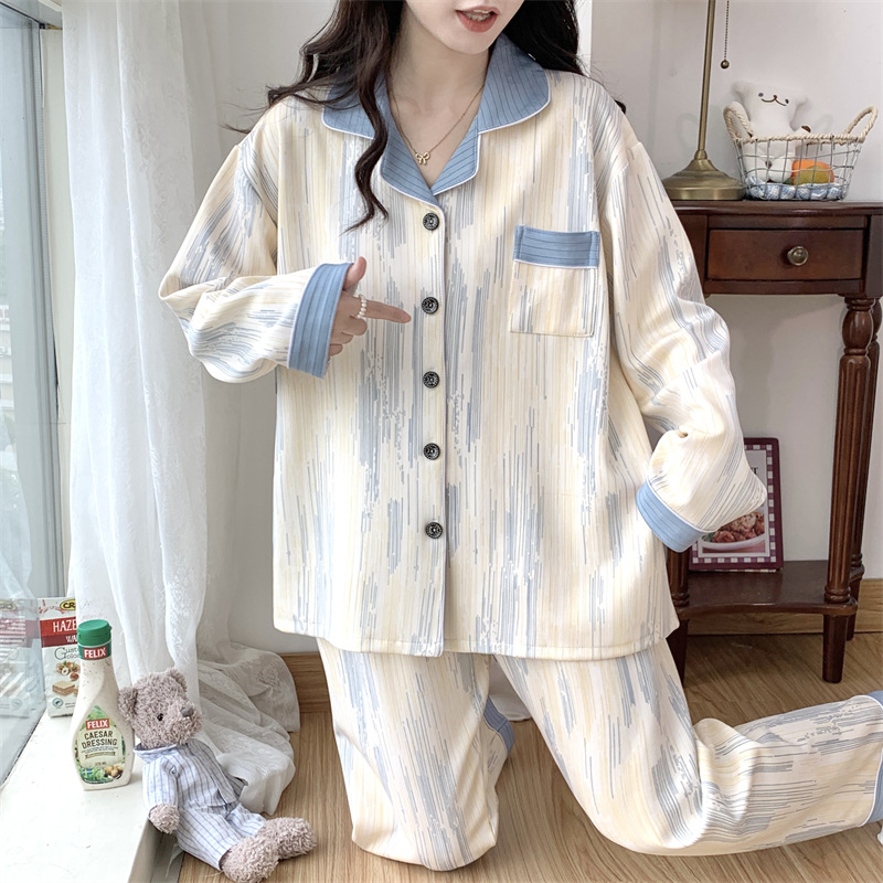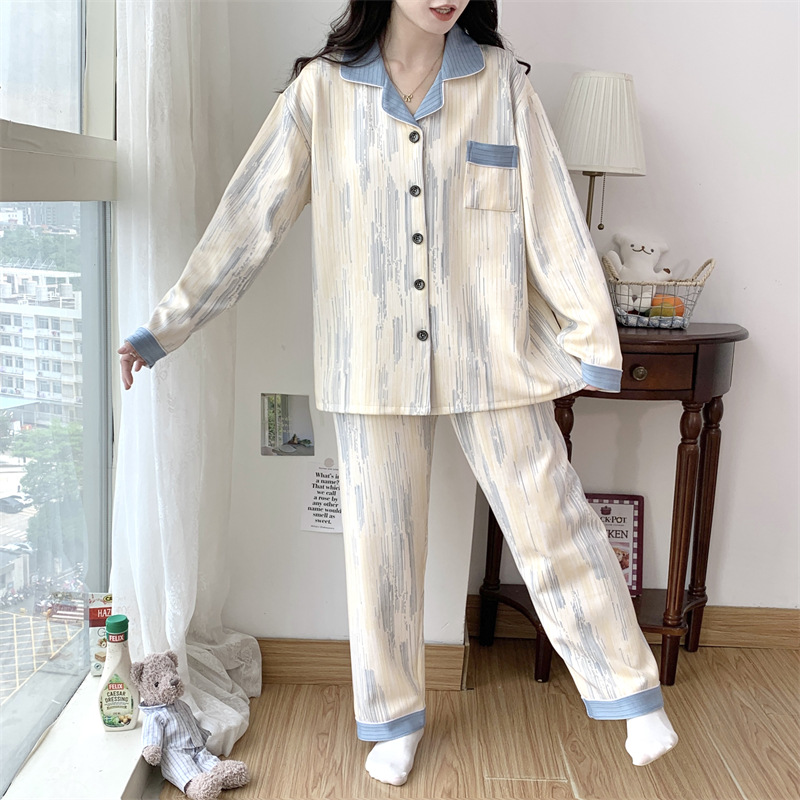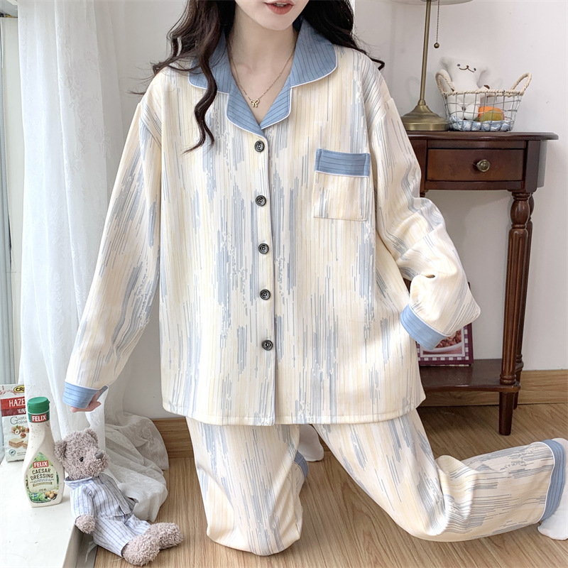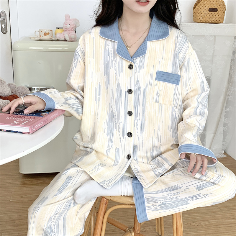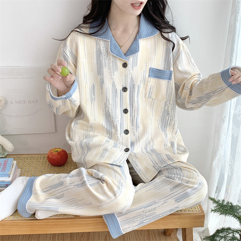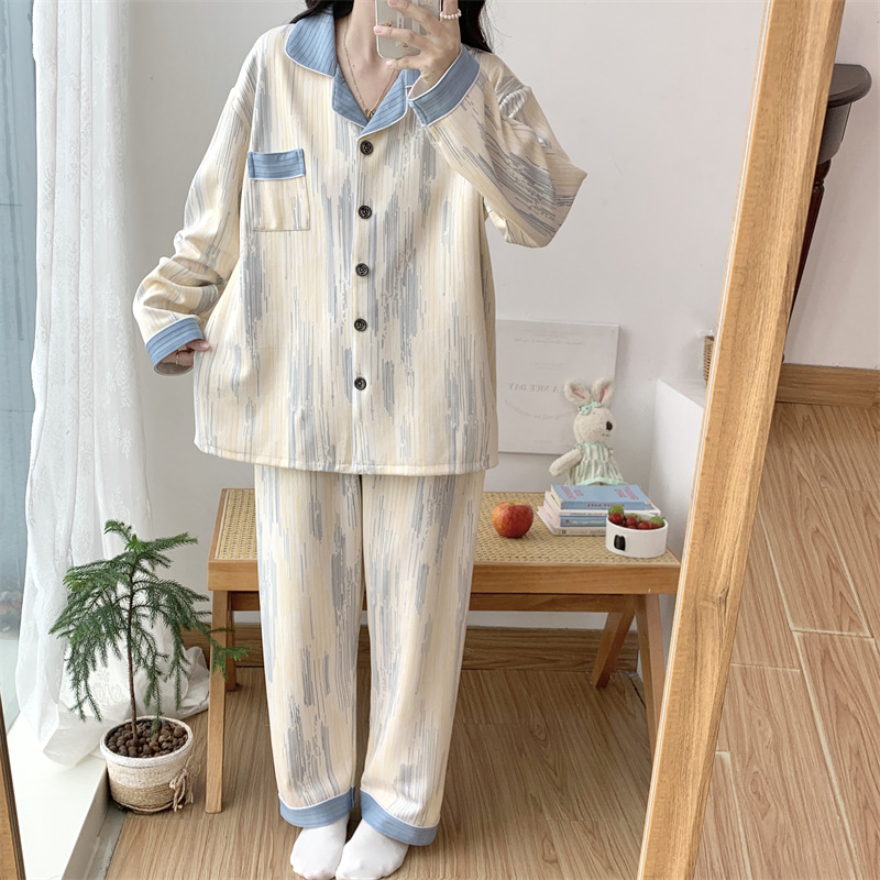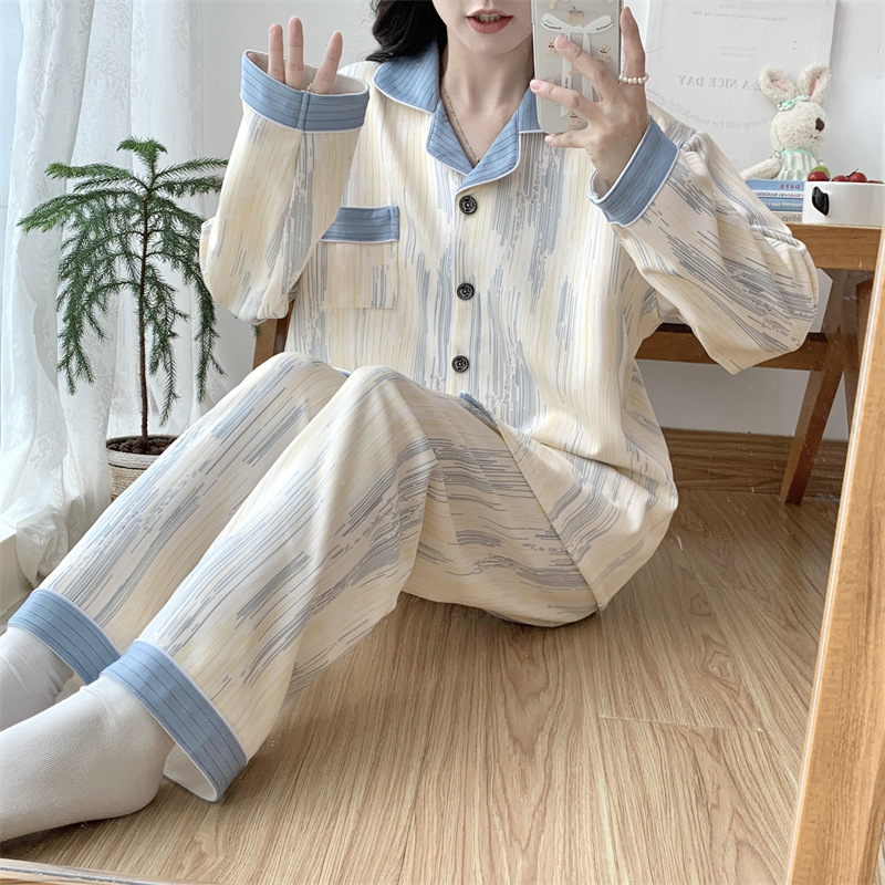 Большой размер 300 кг лунный костюм летом тонкая беременная послеродовая пижама женская одежда для кормления грудью Весенний и осенний набор 23050-6