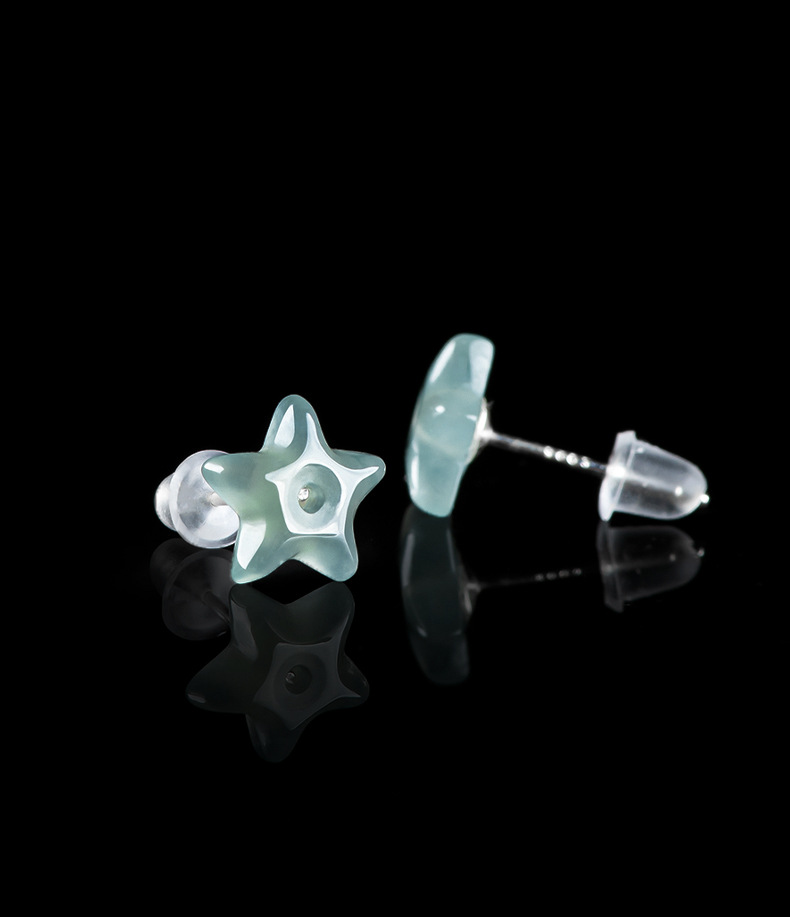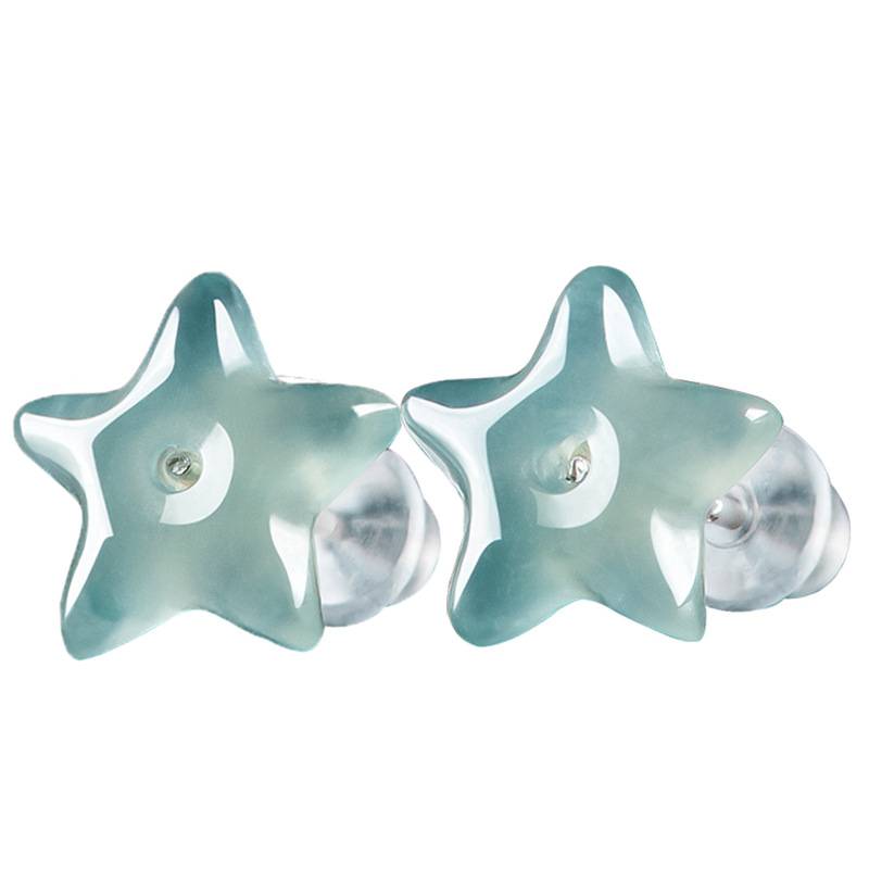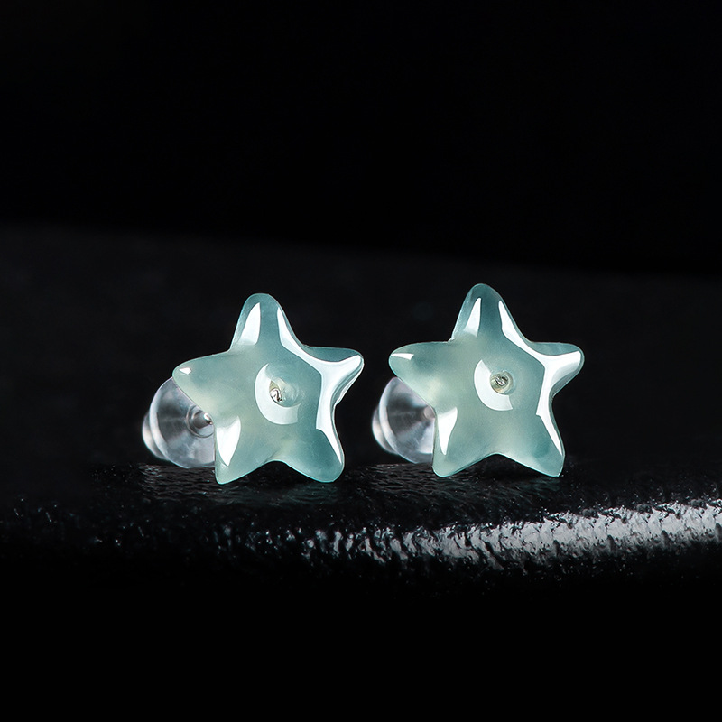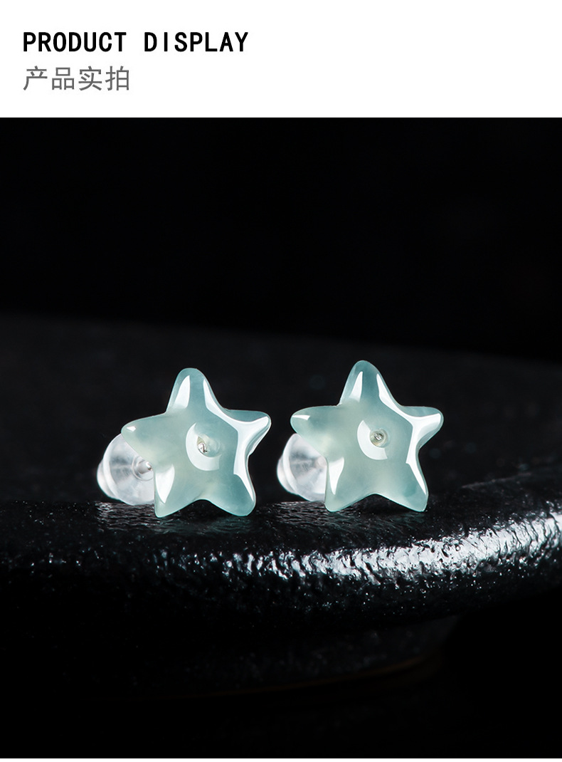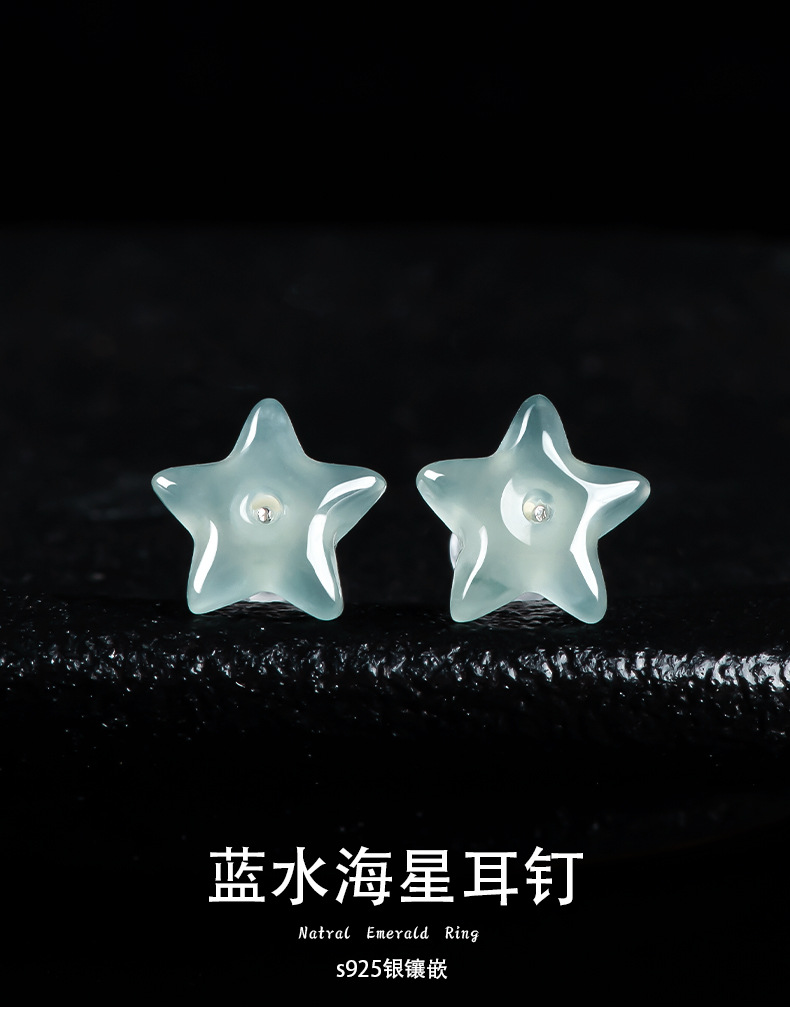 Оригинальный натуральный товар Изумрудная голубая вода Звёздные серьги Морская звезда Ледяное семя Нефритовый камень S925 Серебряная инкрустированная древняя женская серьга