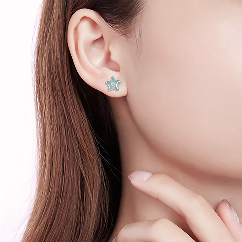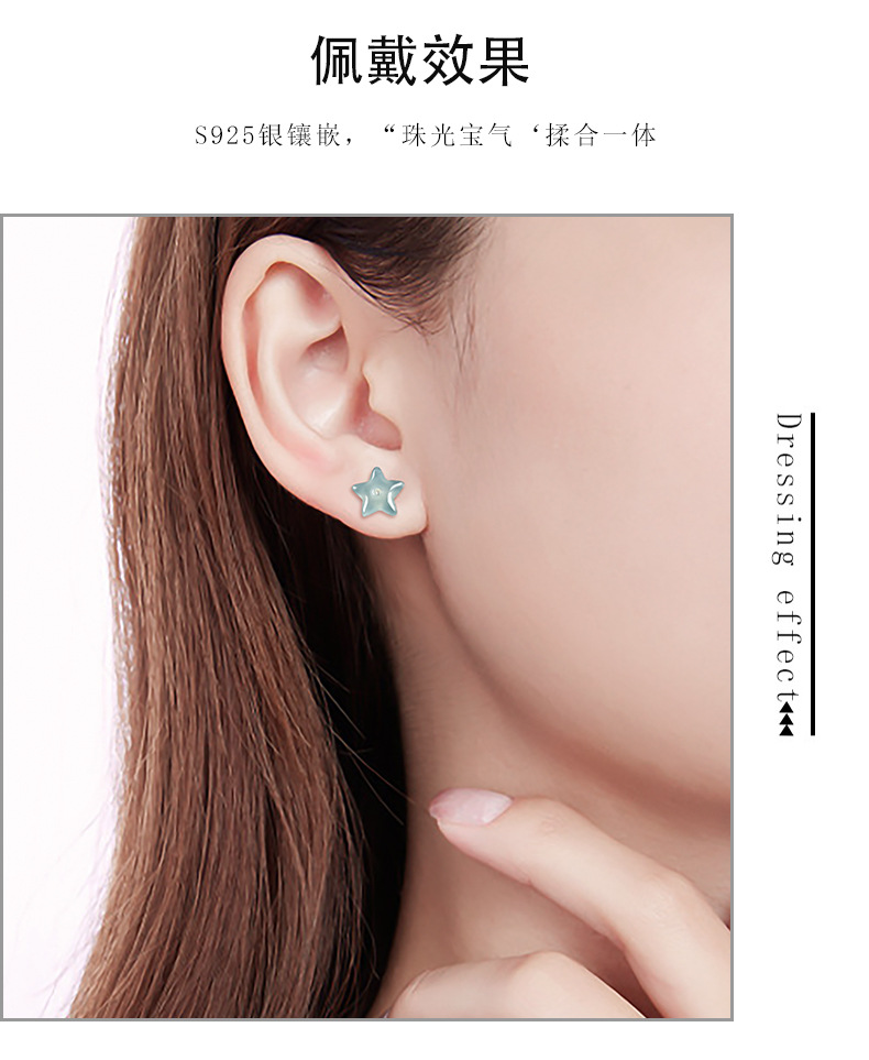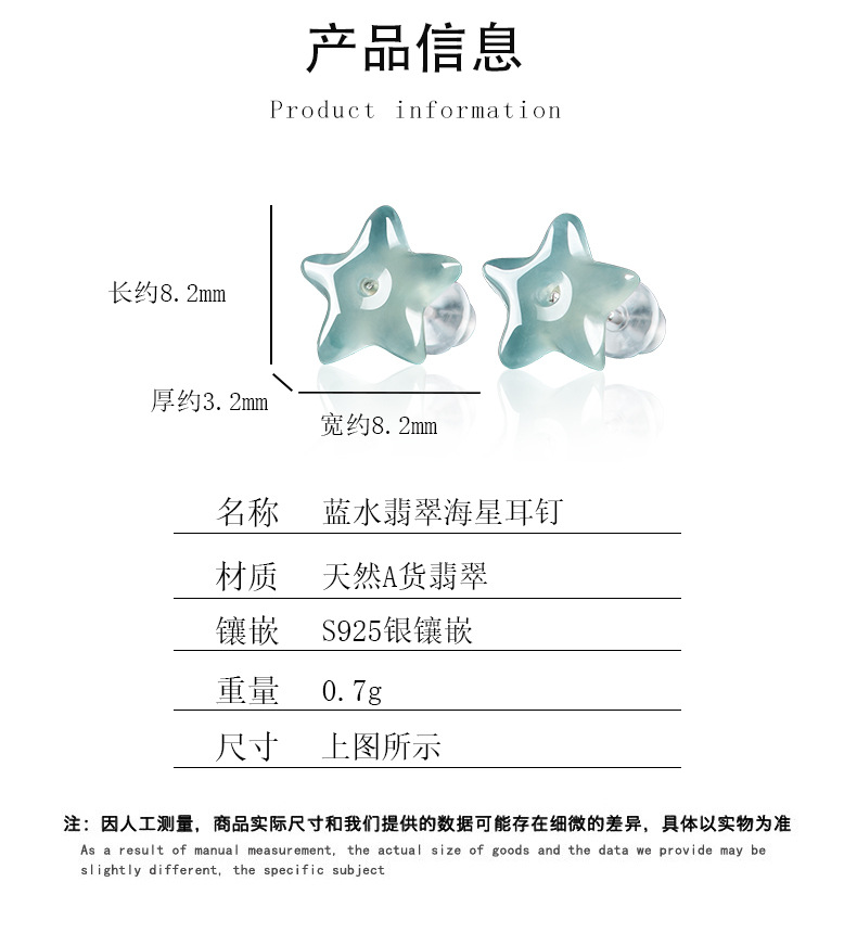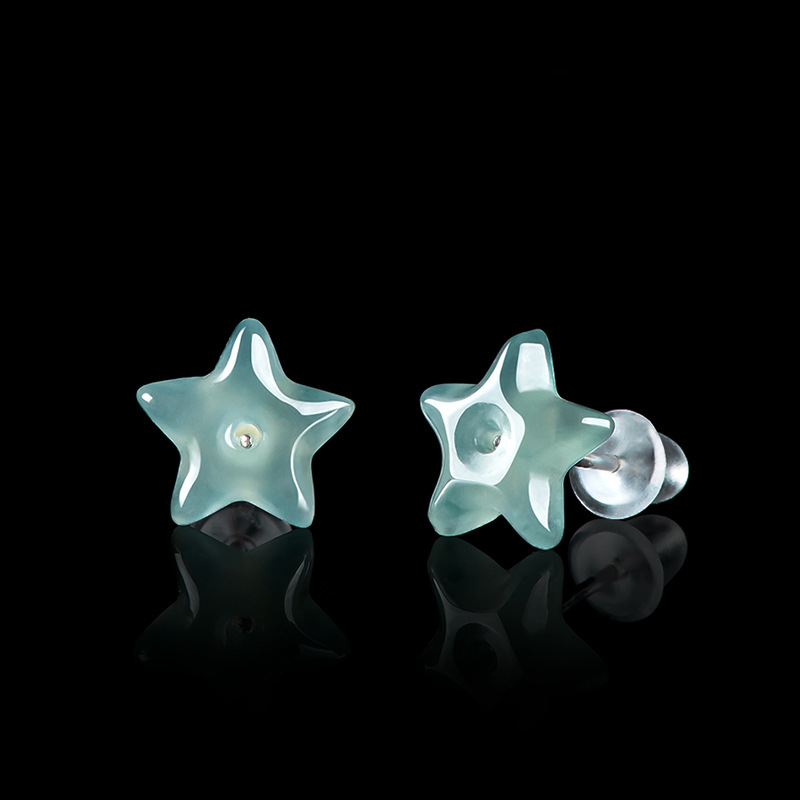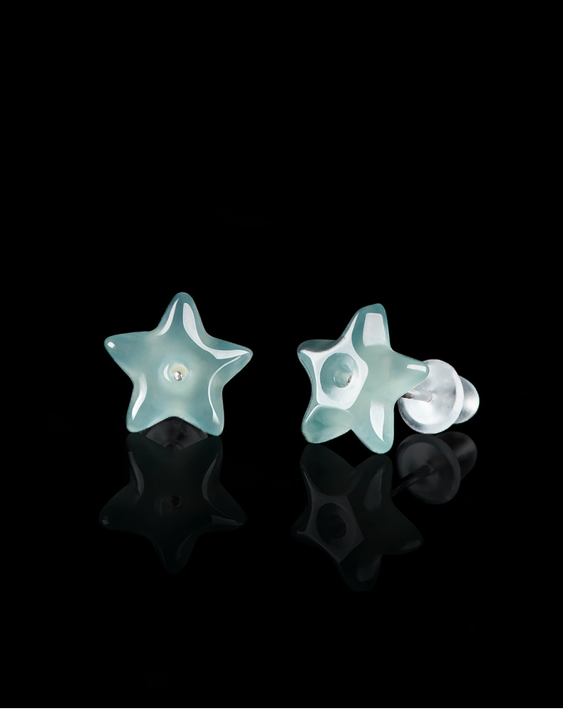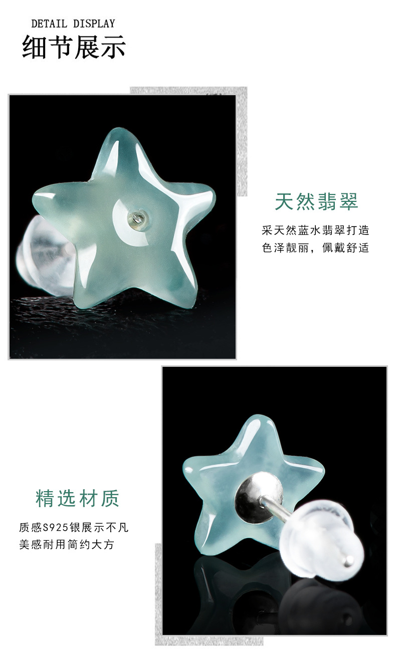 Оригинальный натуральный товар Изумрудная голубая вода Звёздные серьги Морская звезда Ледяное семя Нефритовый камень S925 Серебряная инкрустированная древняя женская серьга