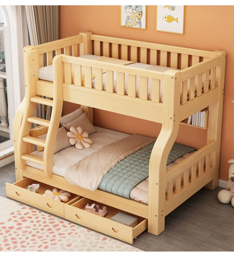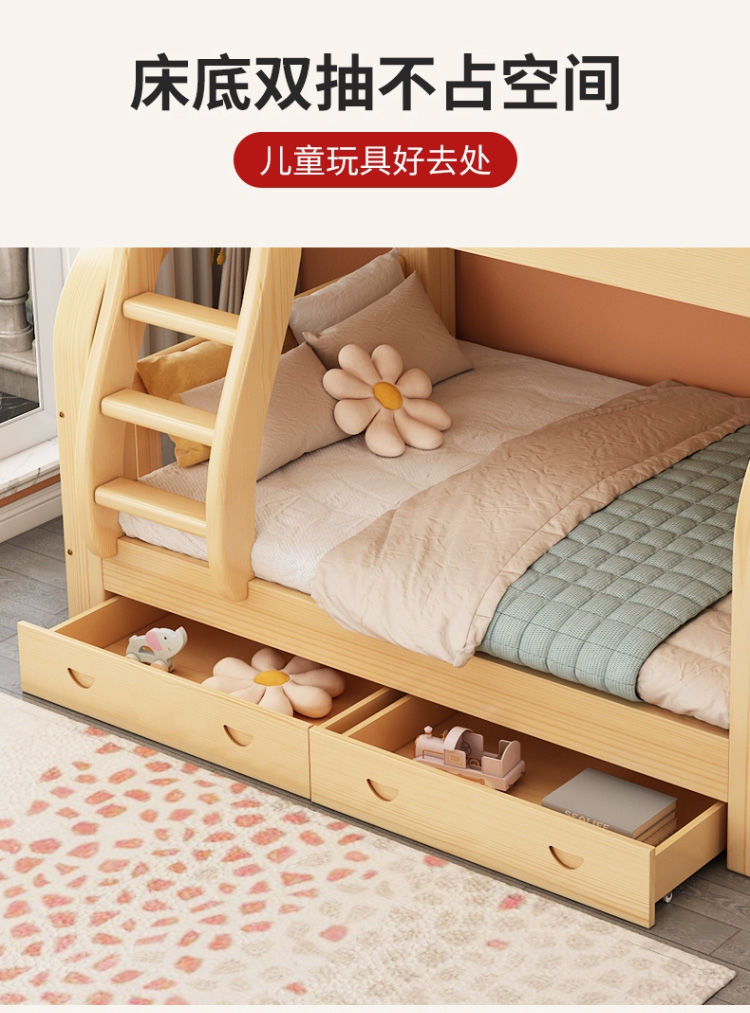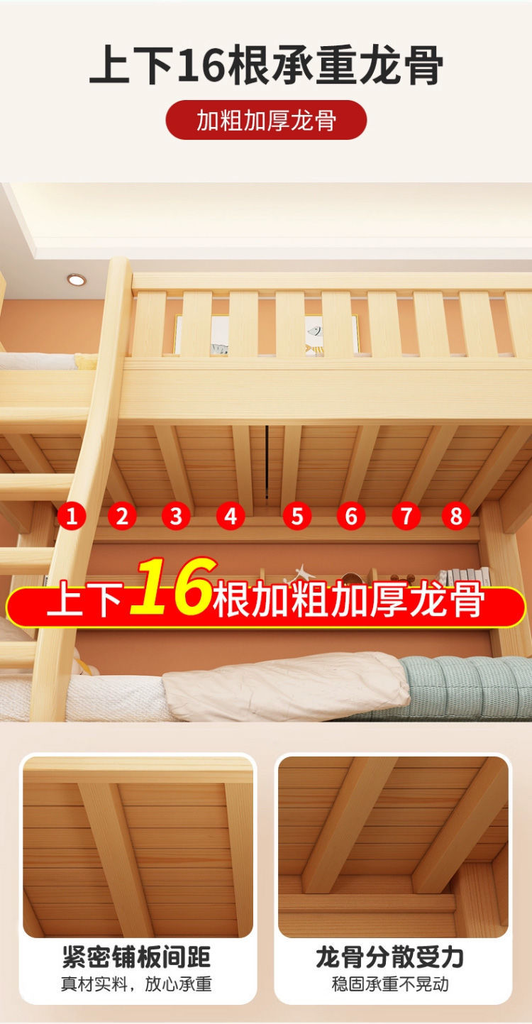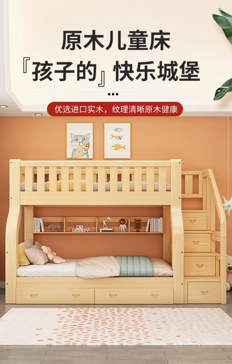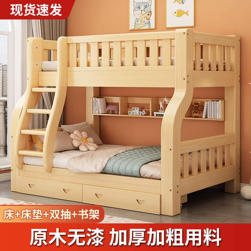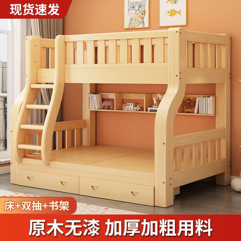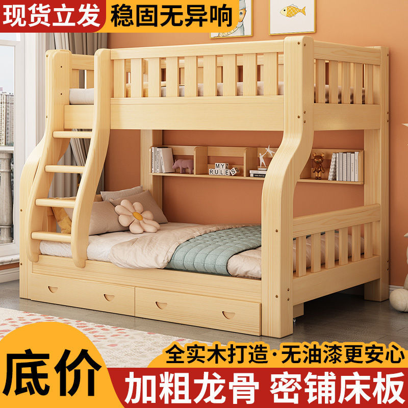 Двухъярусная кровать Двухъярусная кровать Маленькая цельная деревянная высокая и низкая кровать для взрослых и детей