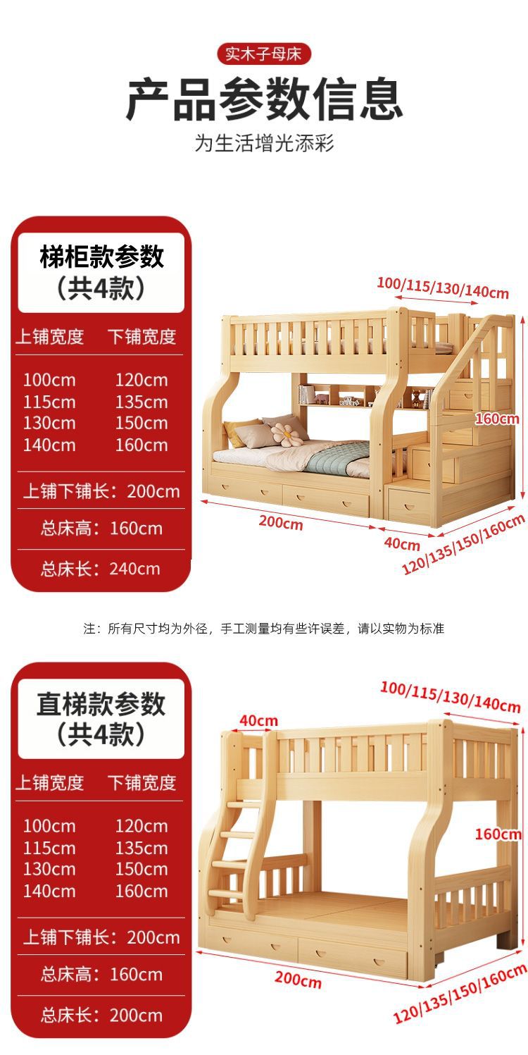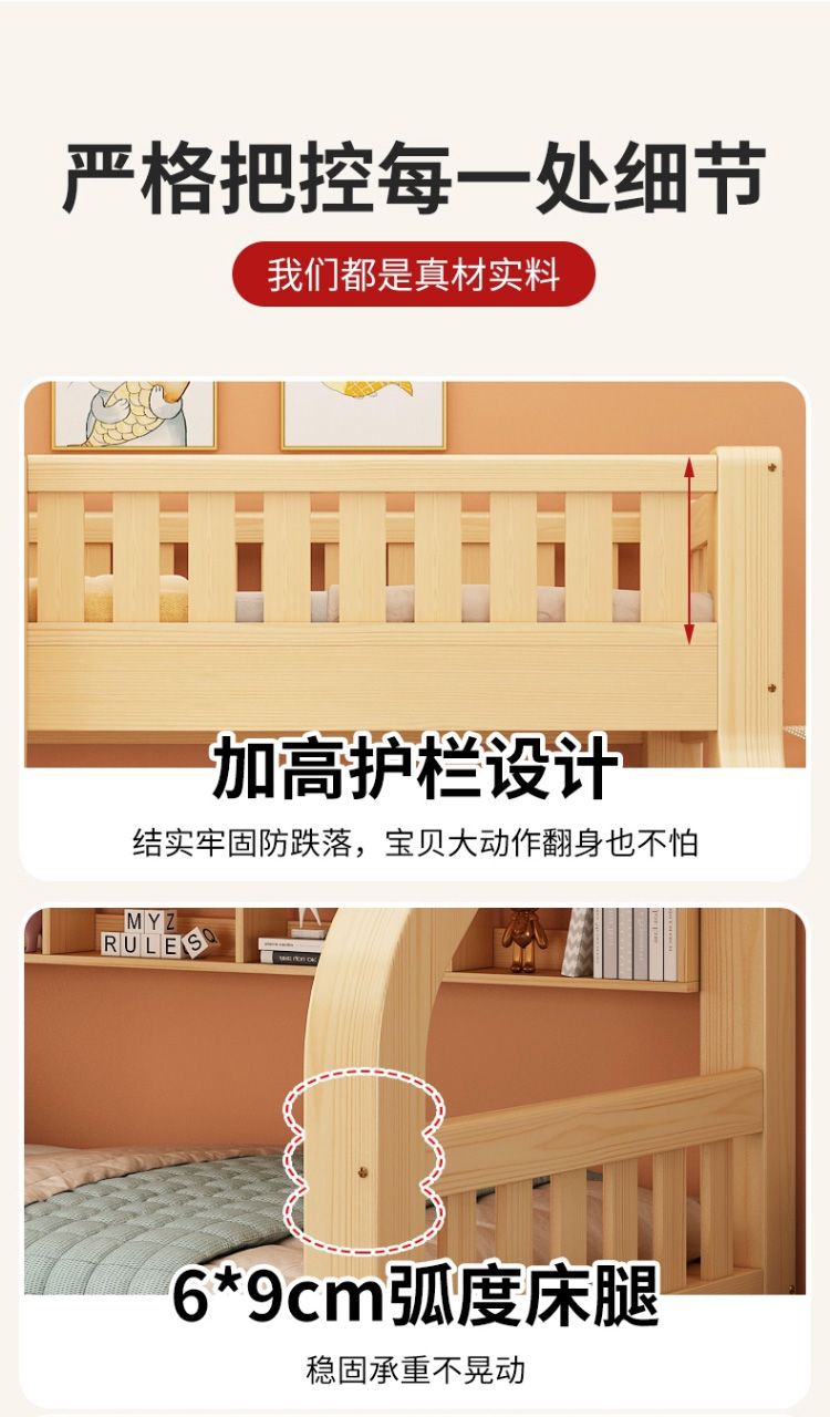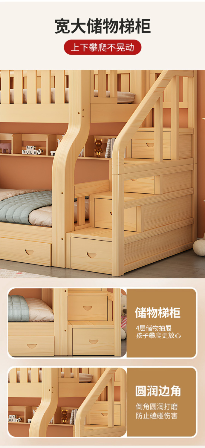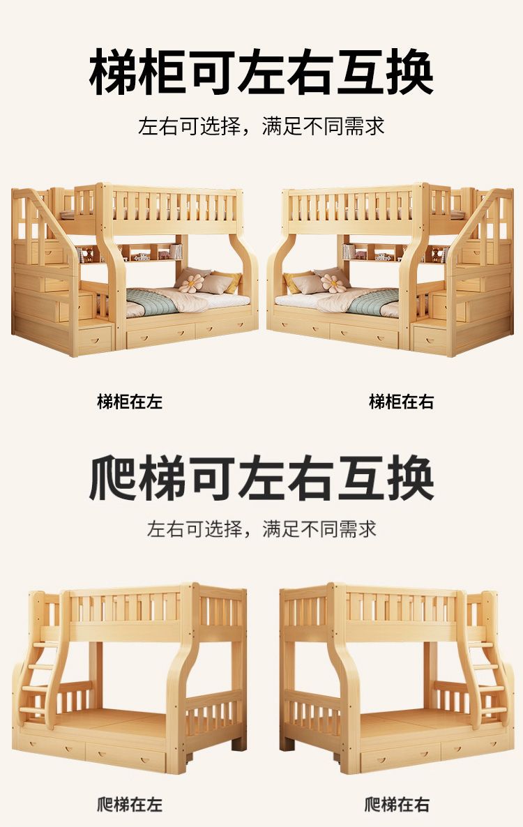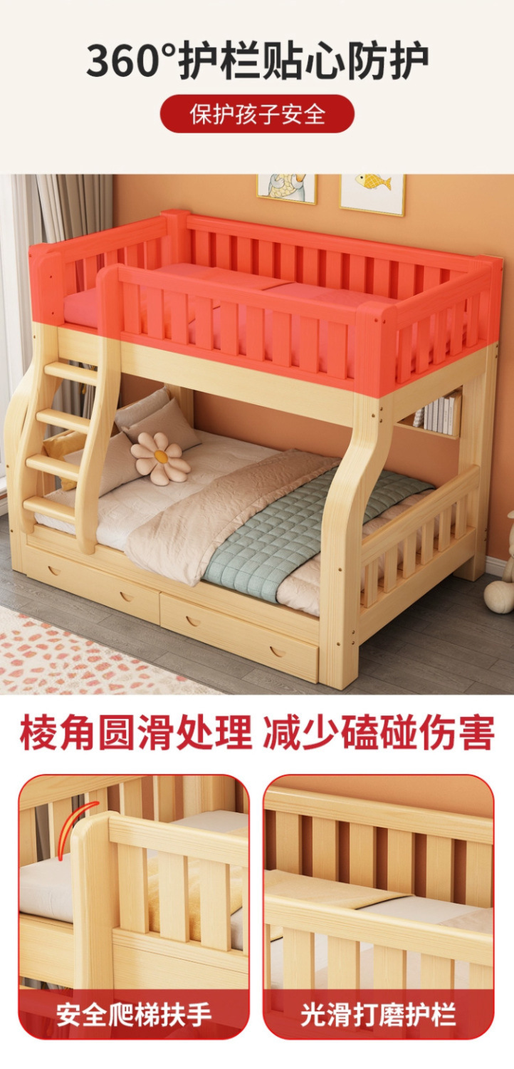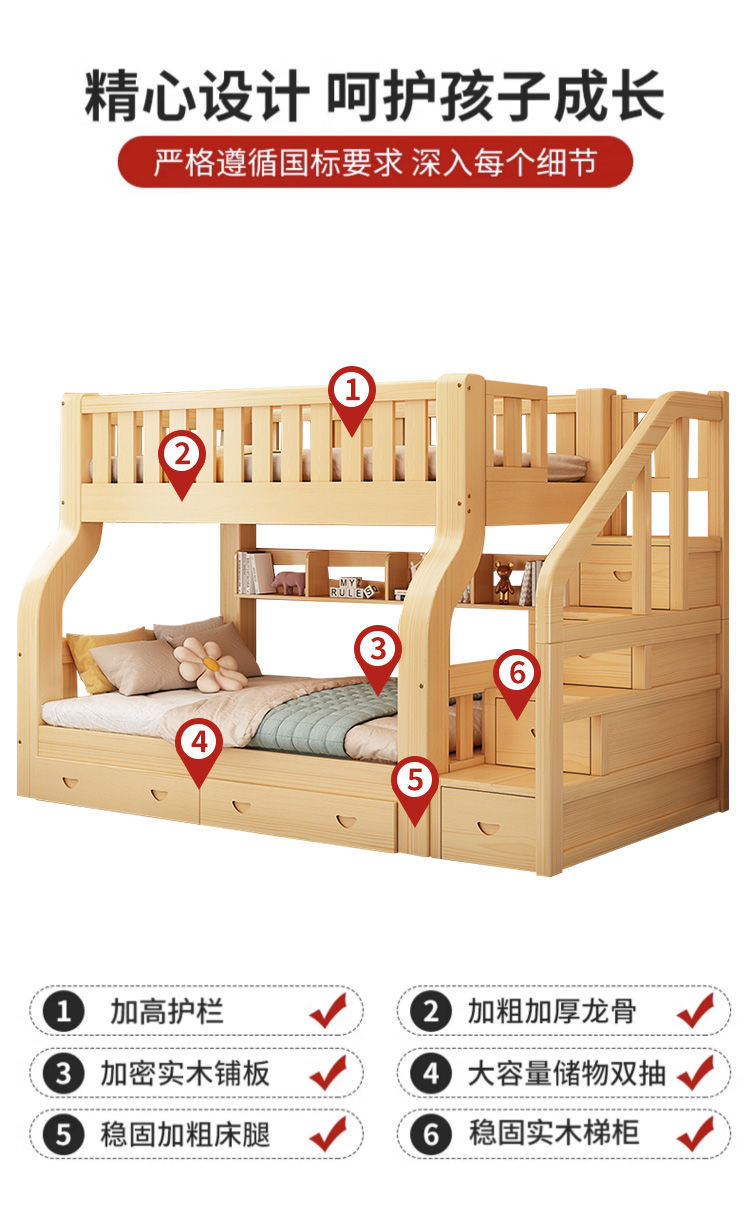 Двухъярусная кровать Двухъярусная кровать Маленькая цельная деревянная высокая и низкая кровать для взрослых и детей