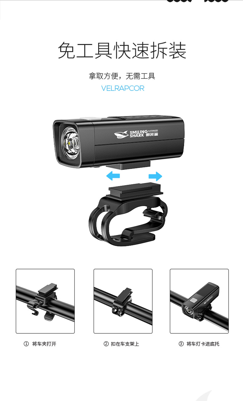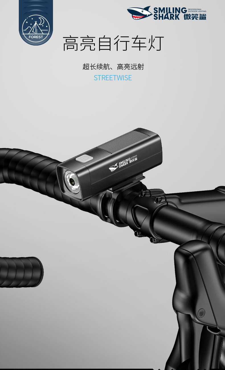 Smile Shark мини-открытый свет для верховой езды трехступеная регулировка USB зарядка ночная езда свет портативный легко разборка велосипедный свет