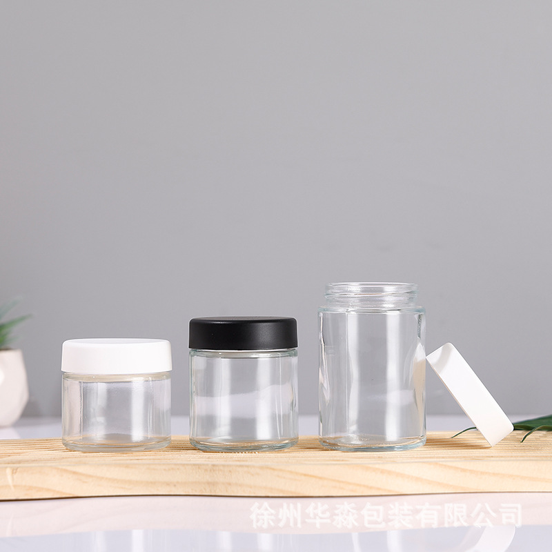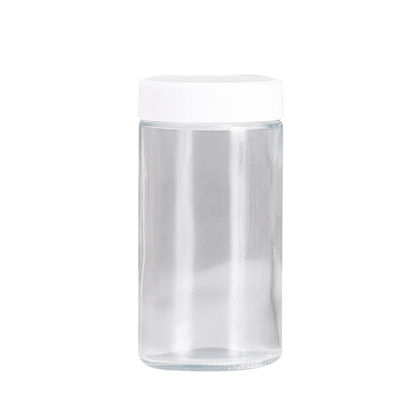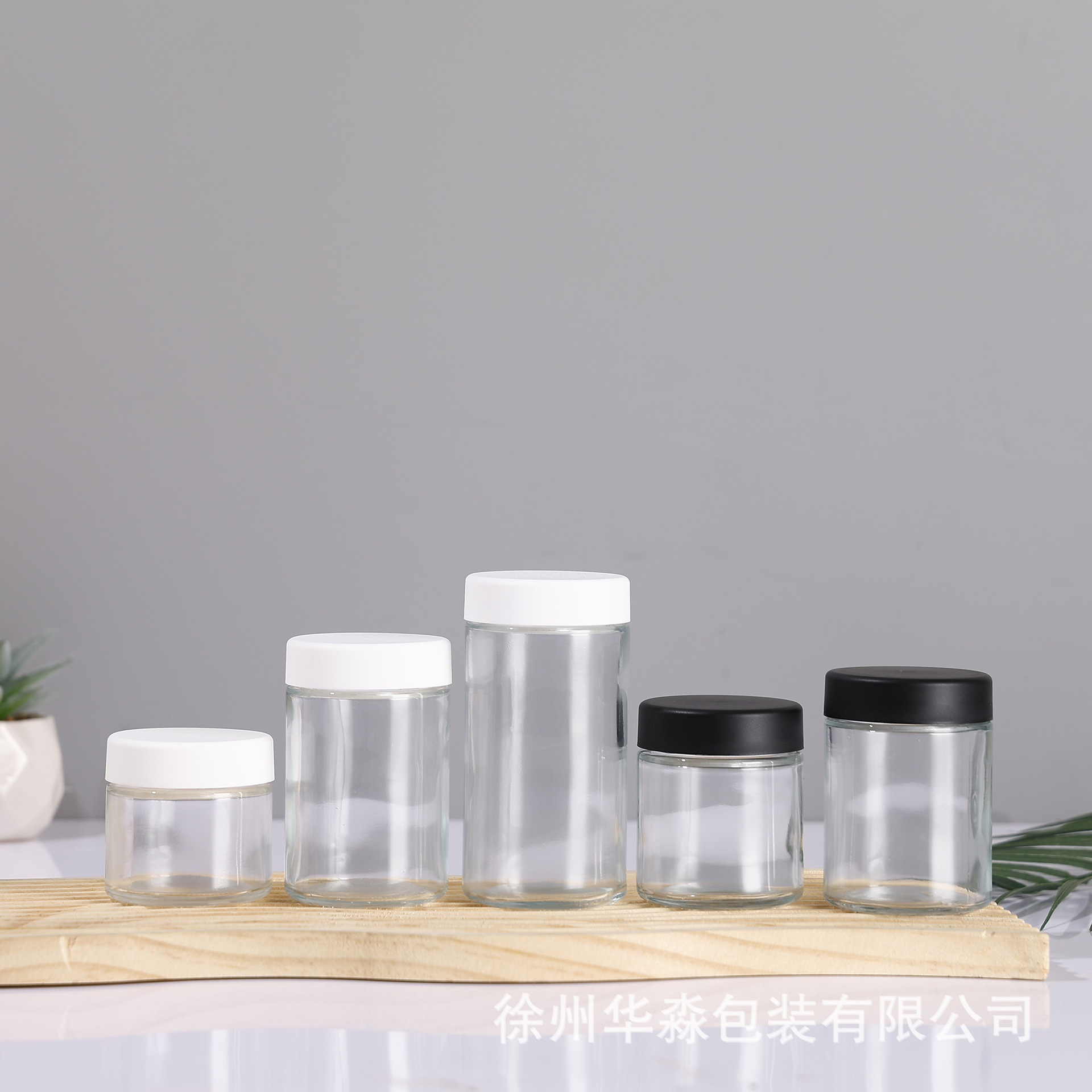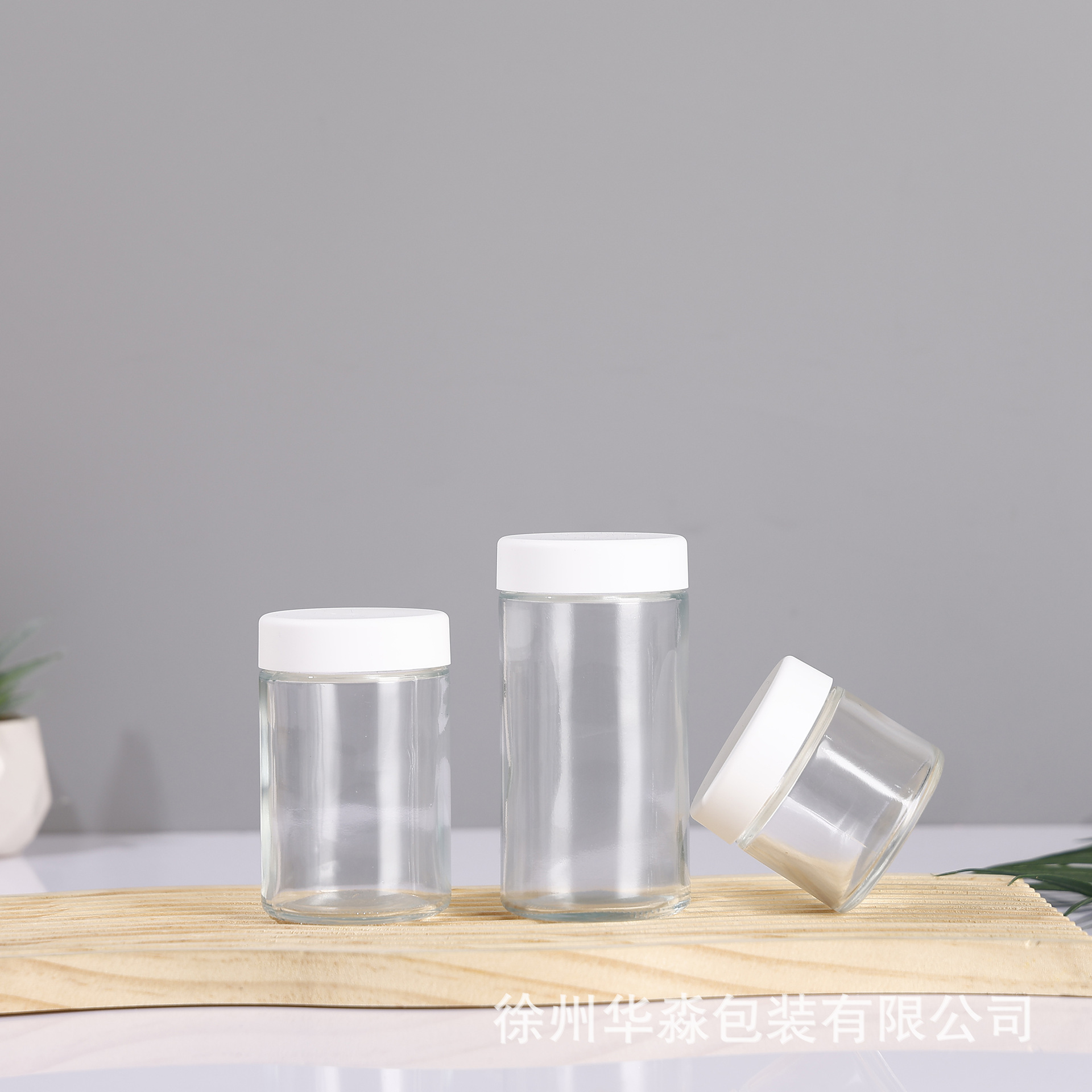 Прозрачная круглая стеклянная бутылка с завинчивающейся крышкой, бутылка для конопли, с защитой от детей, для упаковки капсул с продуктами для здоровья, крема, стеклянная банка